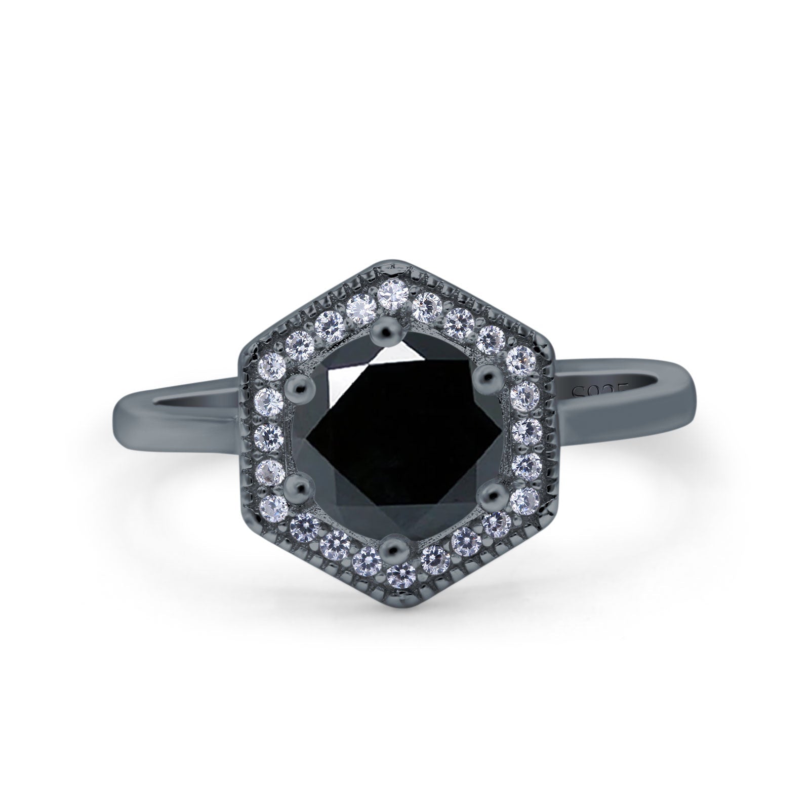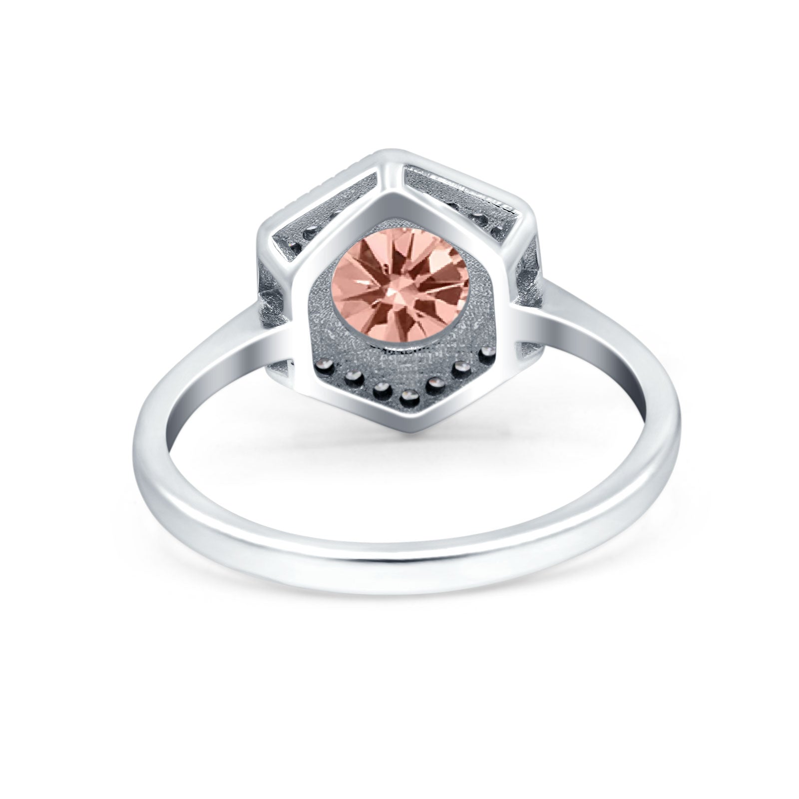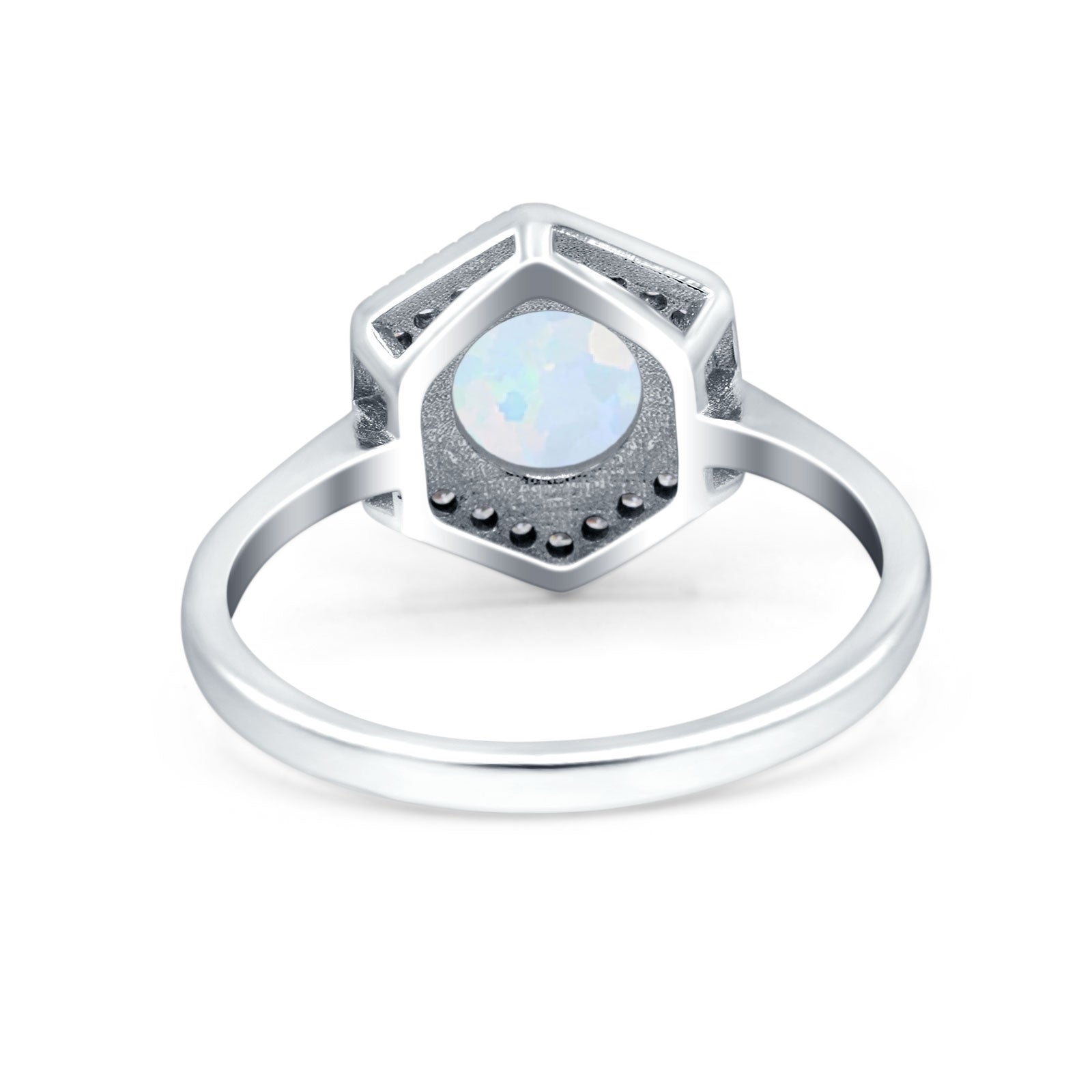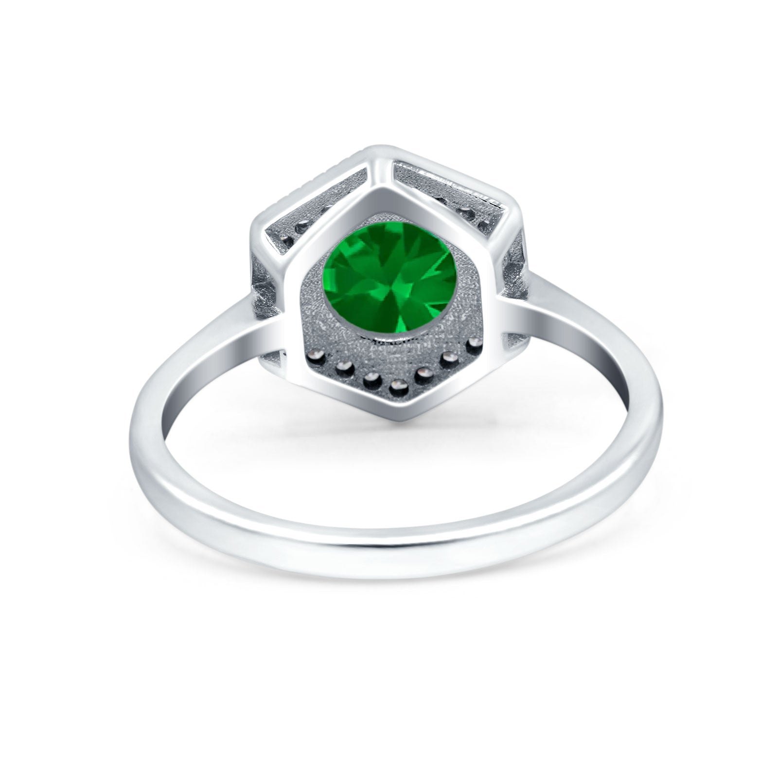 Art Deco Hexagon Shape Wedding Bridal Ring Round Simulated Cubic Zirconia 925 Sterling Silver