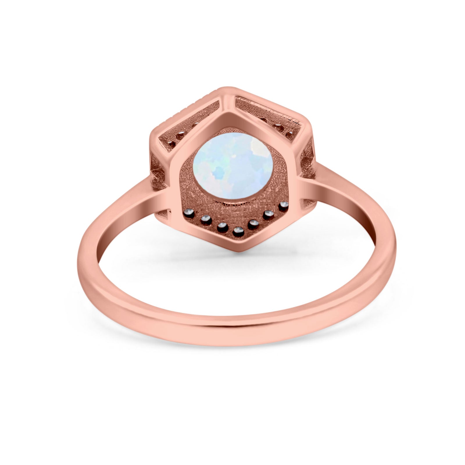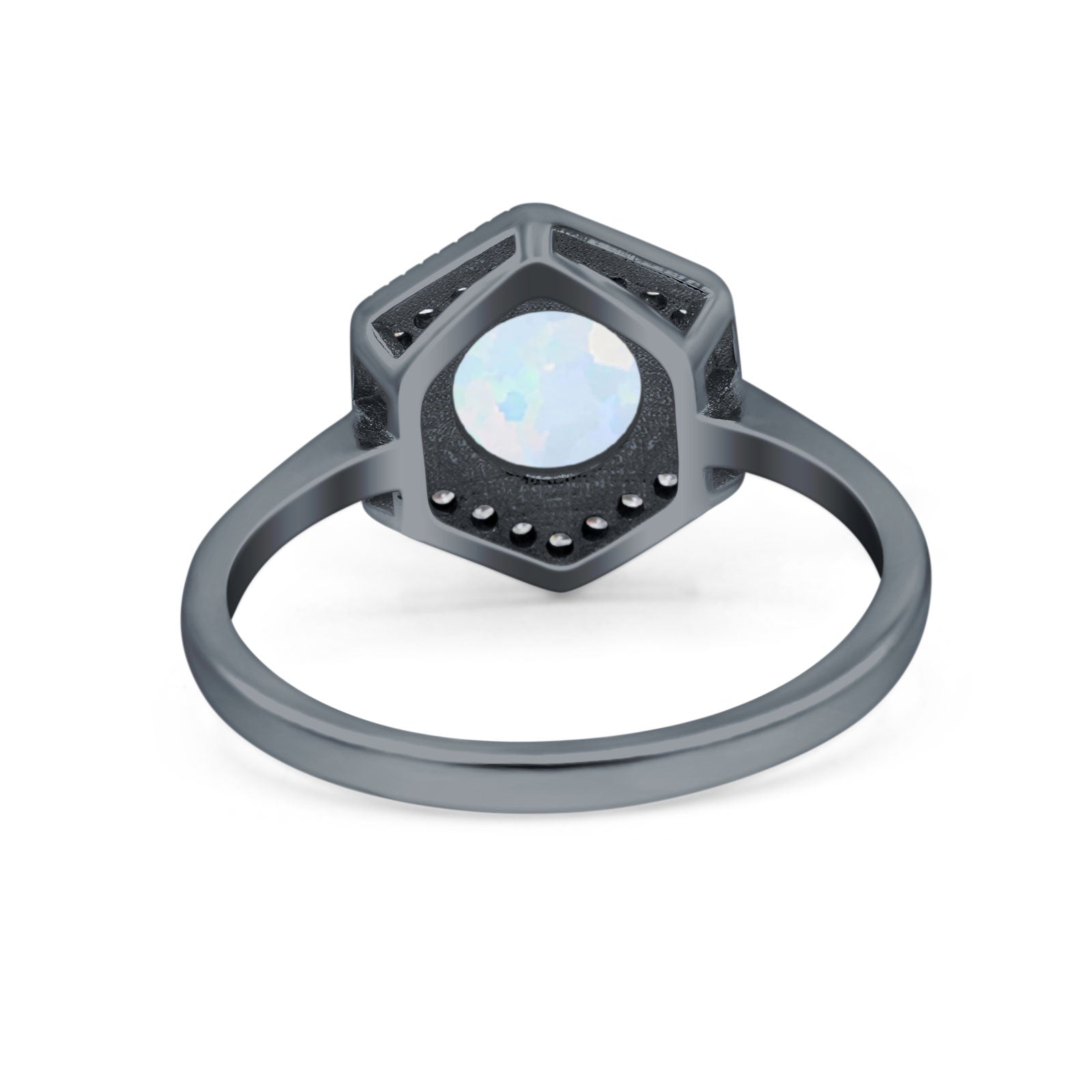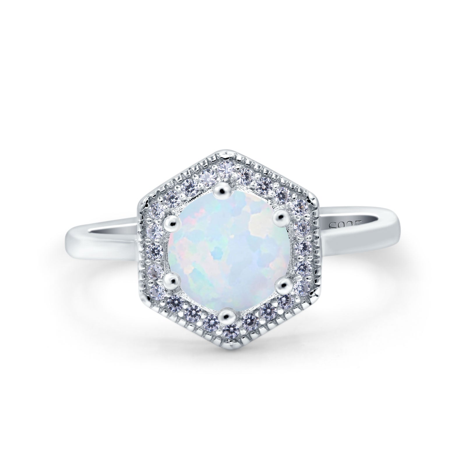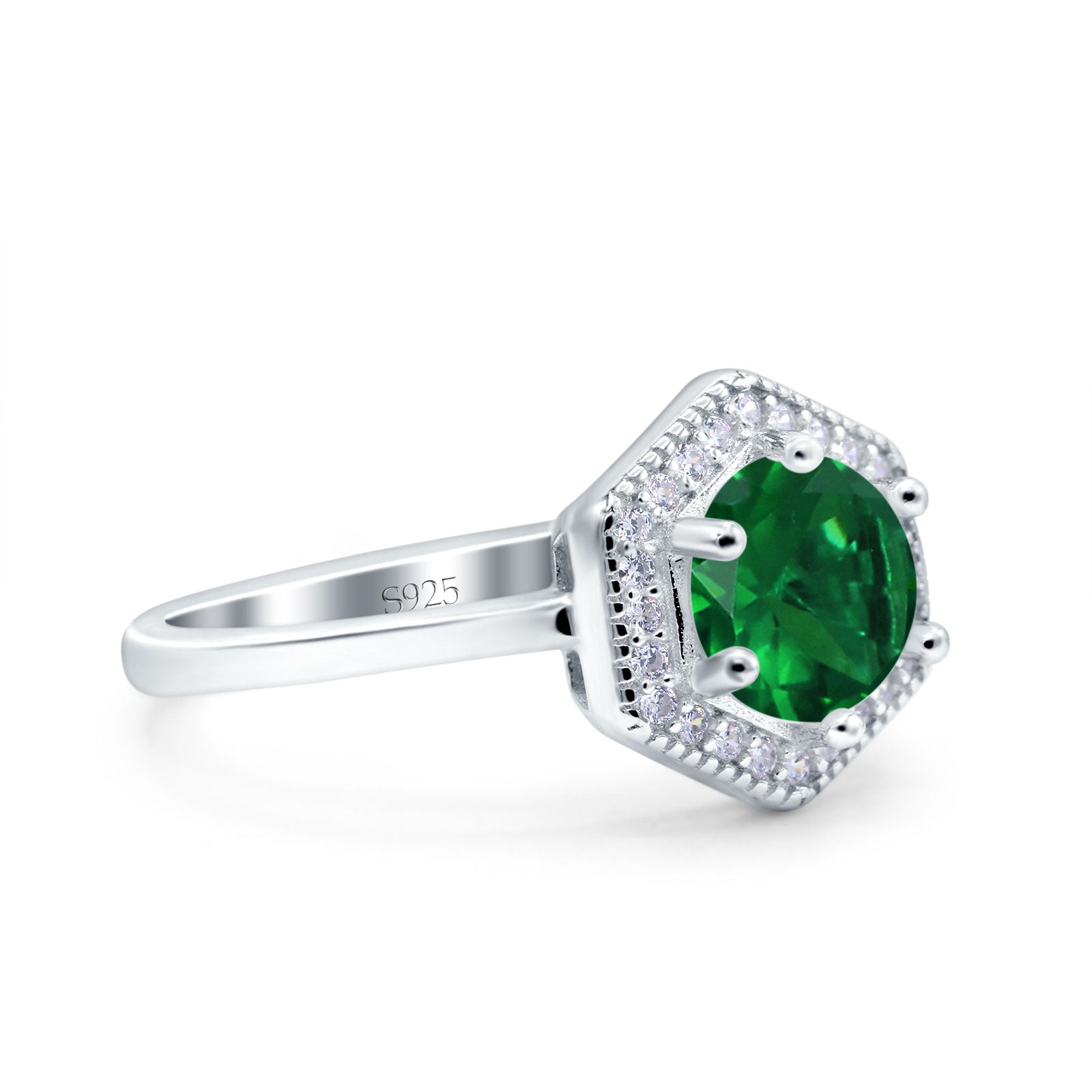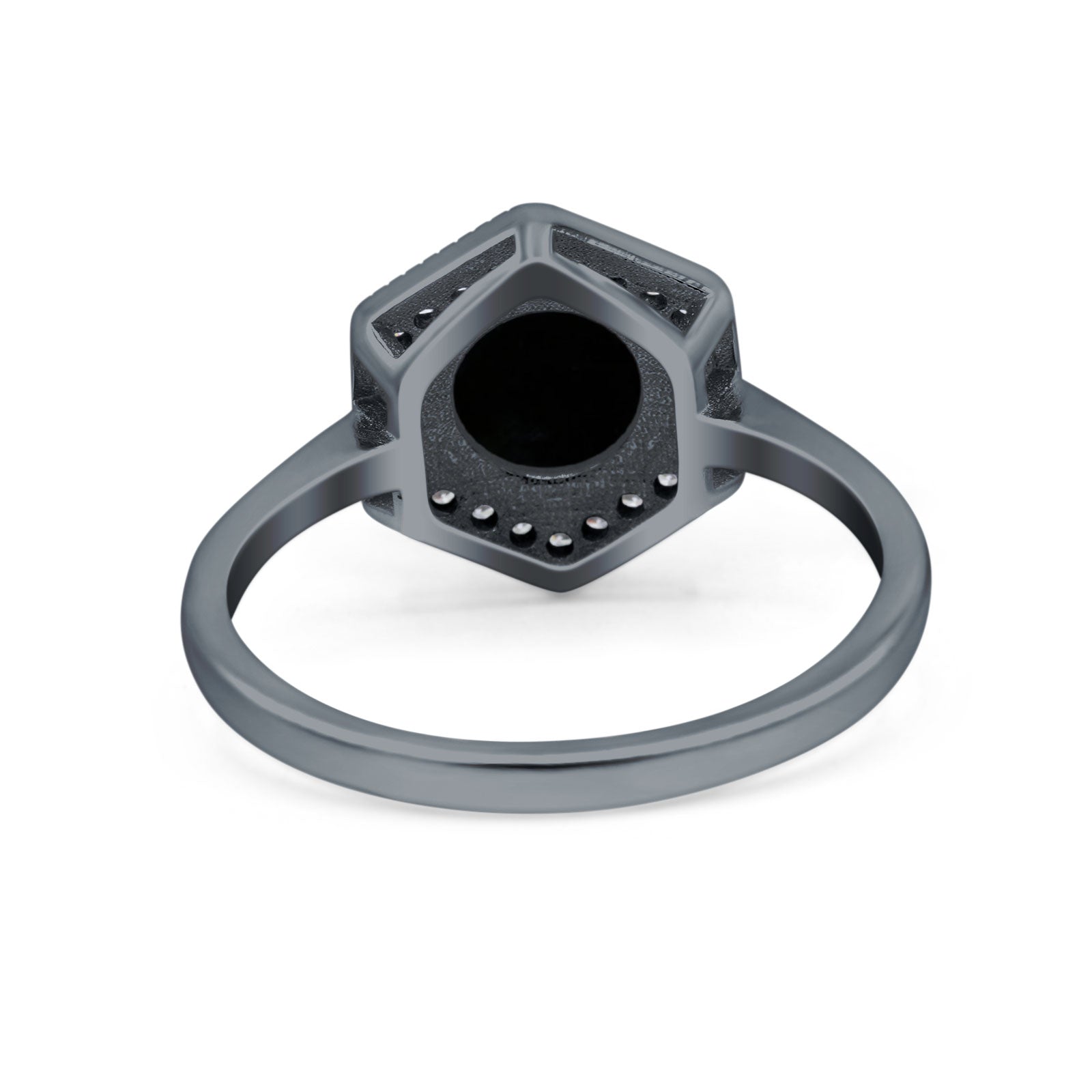 Art Deco Hexagon Shape Wedding Bridal Ring Round Simulated Cubic Zirconia 925 Sterling Silver