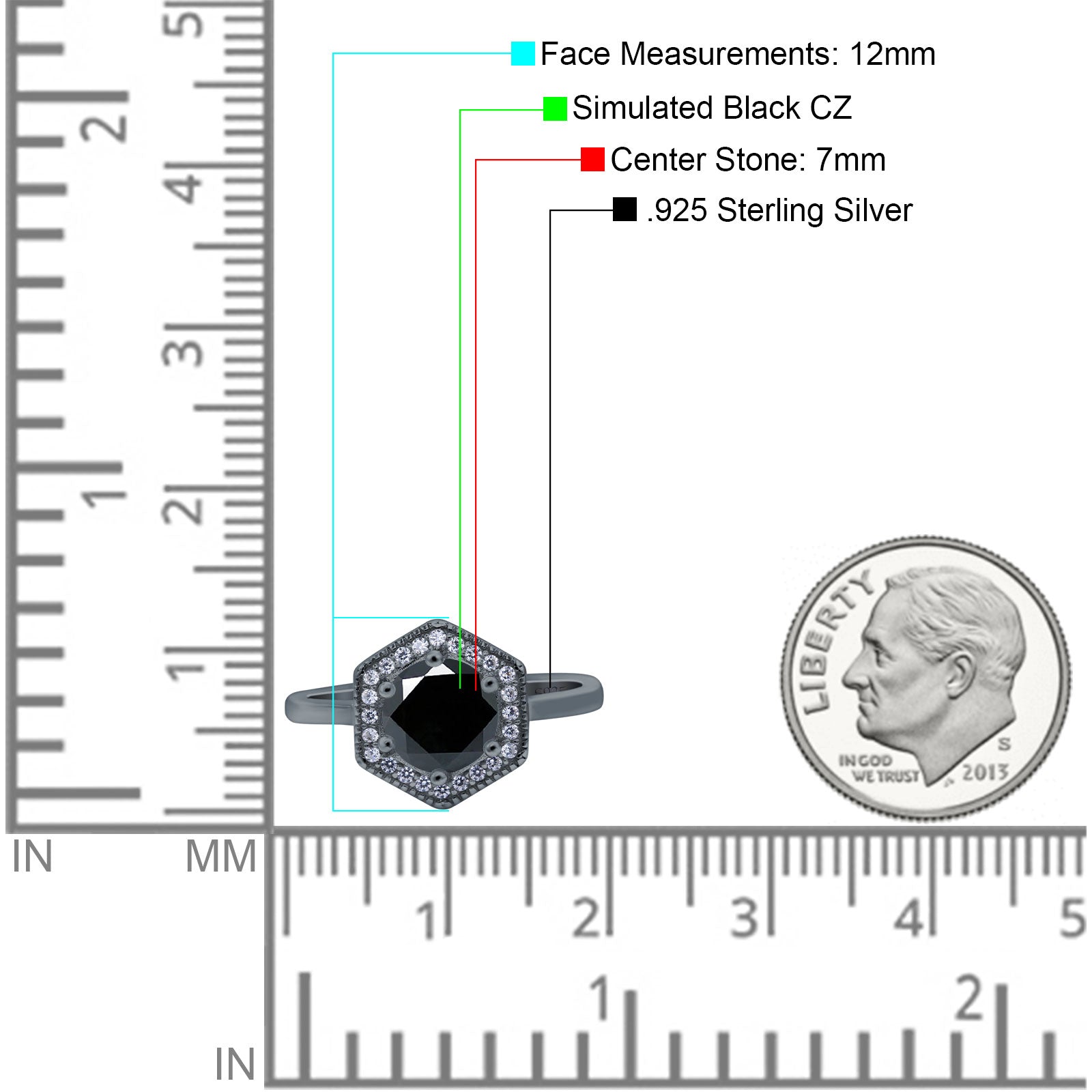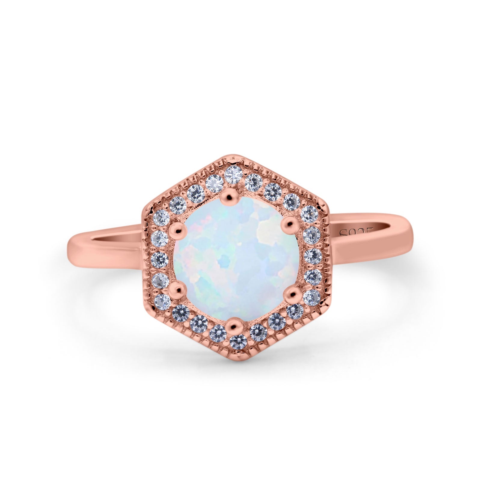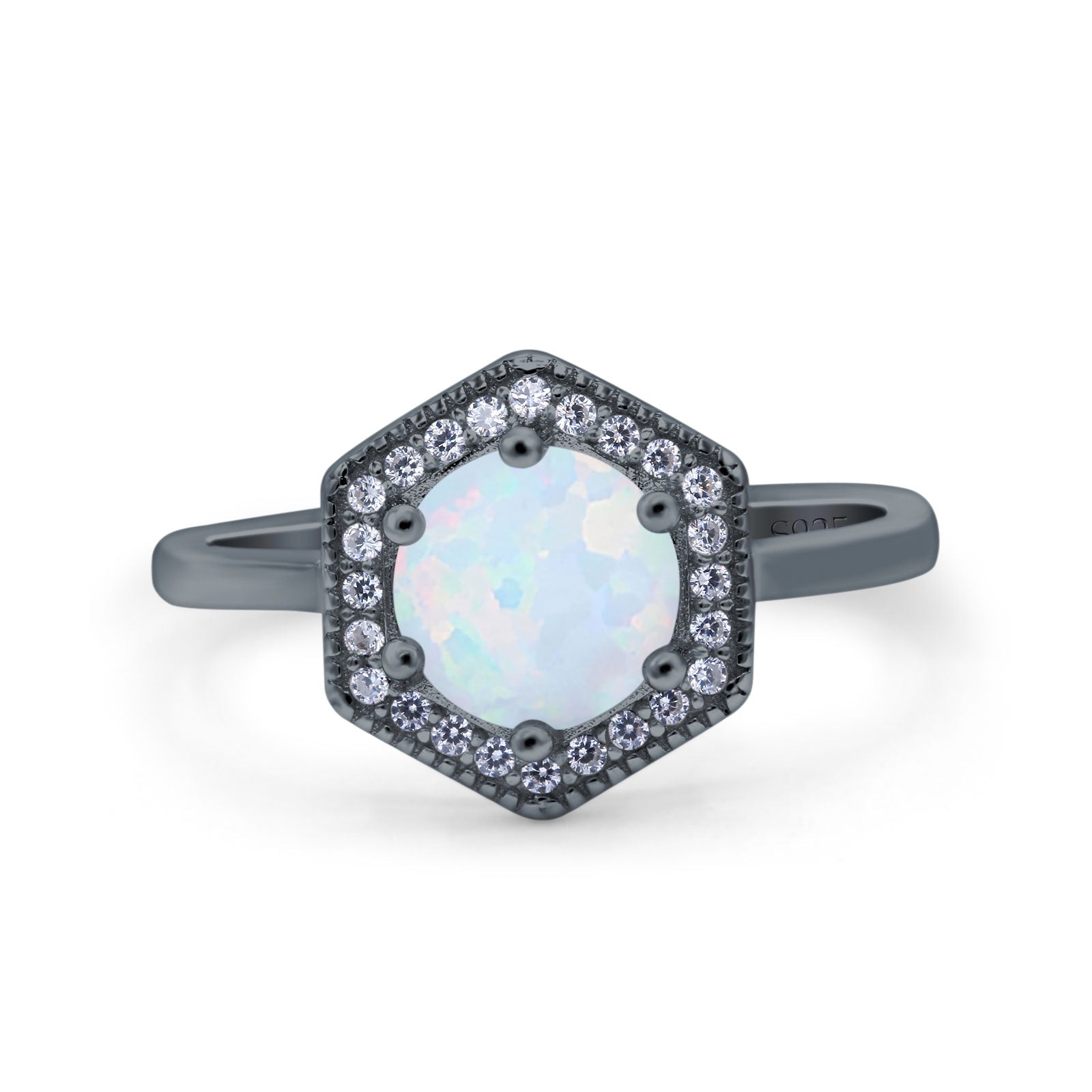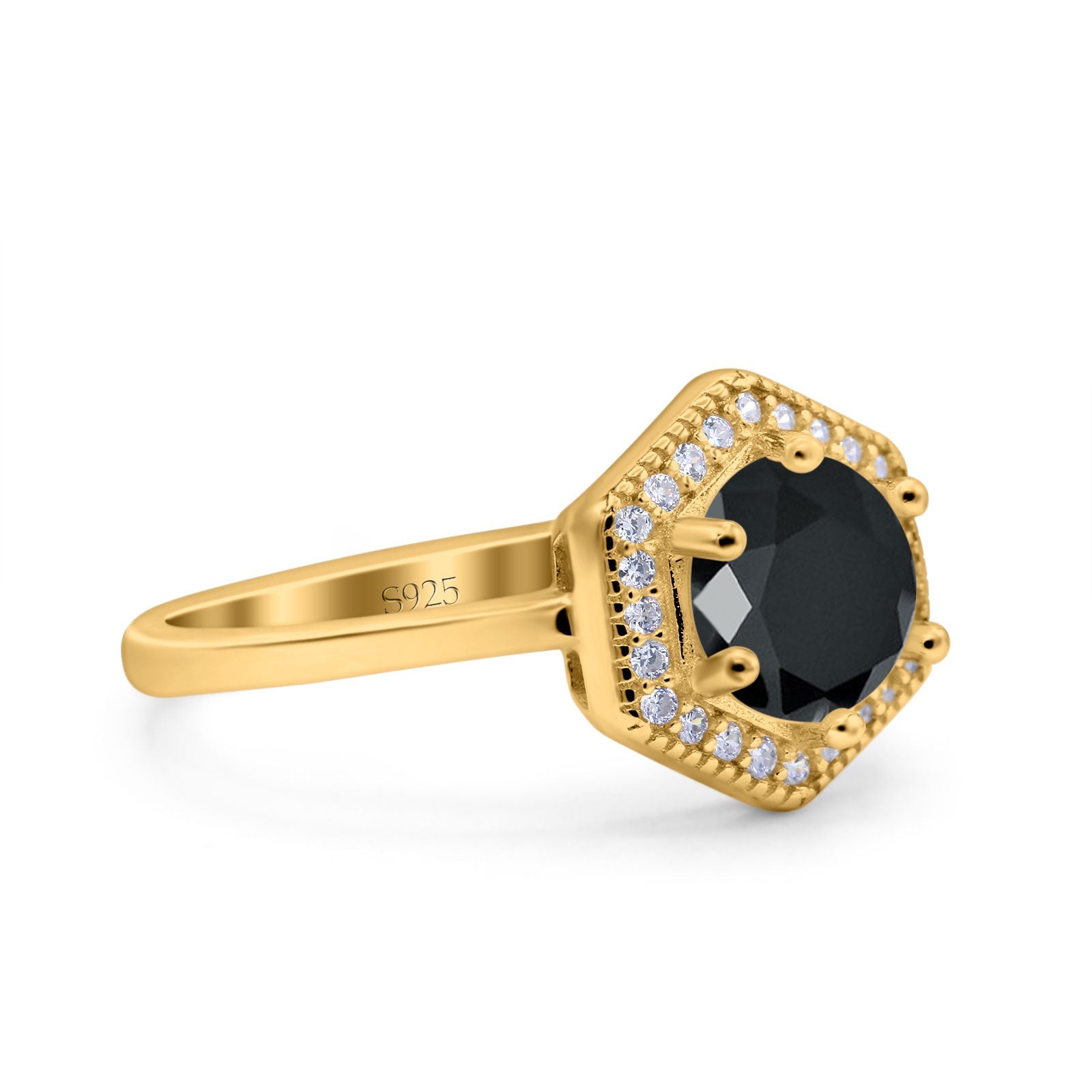 Art Deco Hexagon Shape Wedding Bridal Ring Round Simulated Cubic Zirconia 925 Sterling Silver