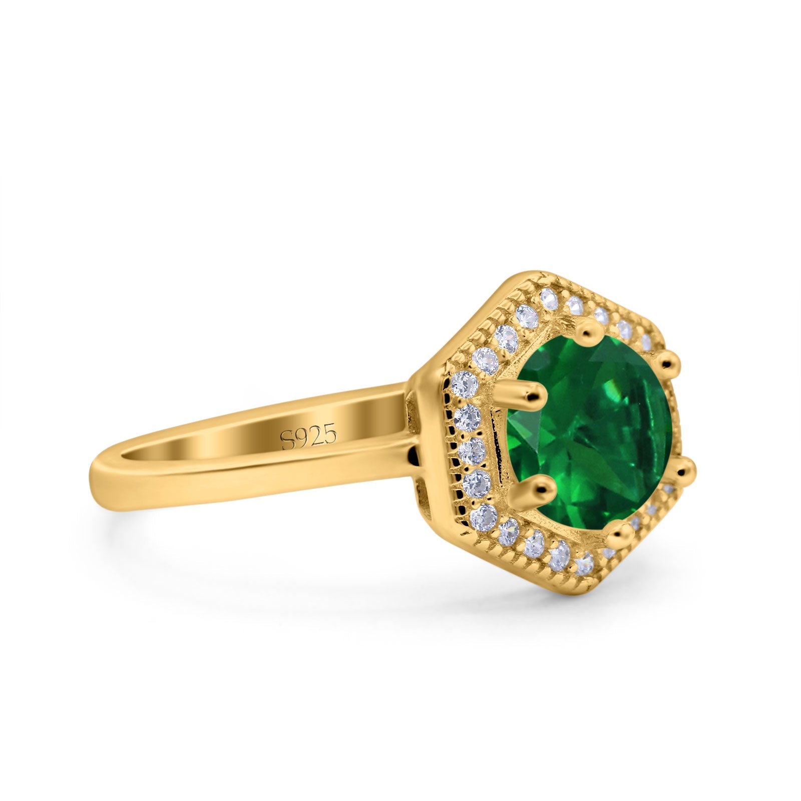 Yellow Tone, Simulated Green Emerald CZ