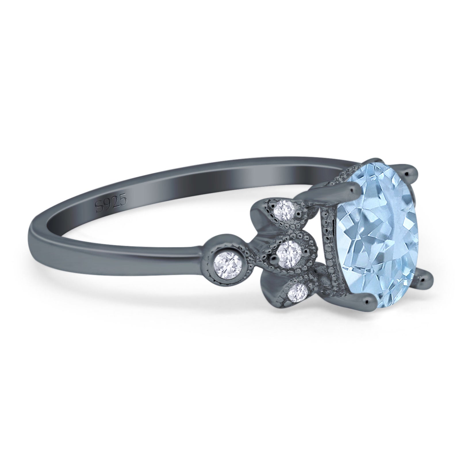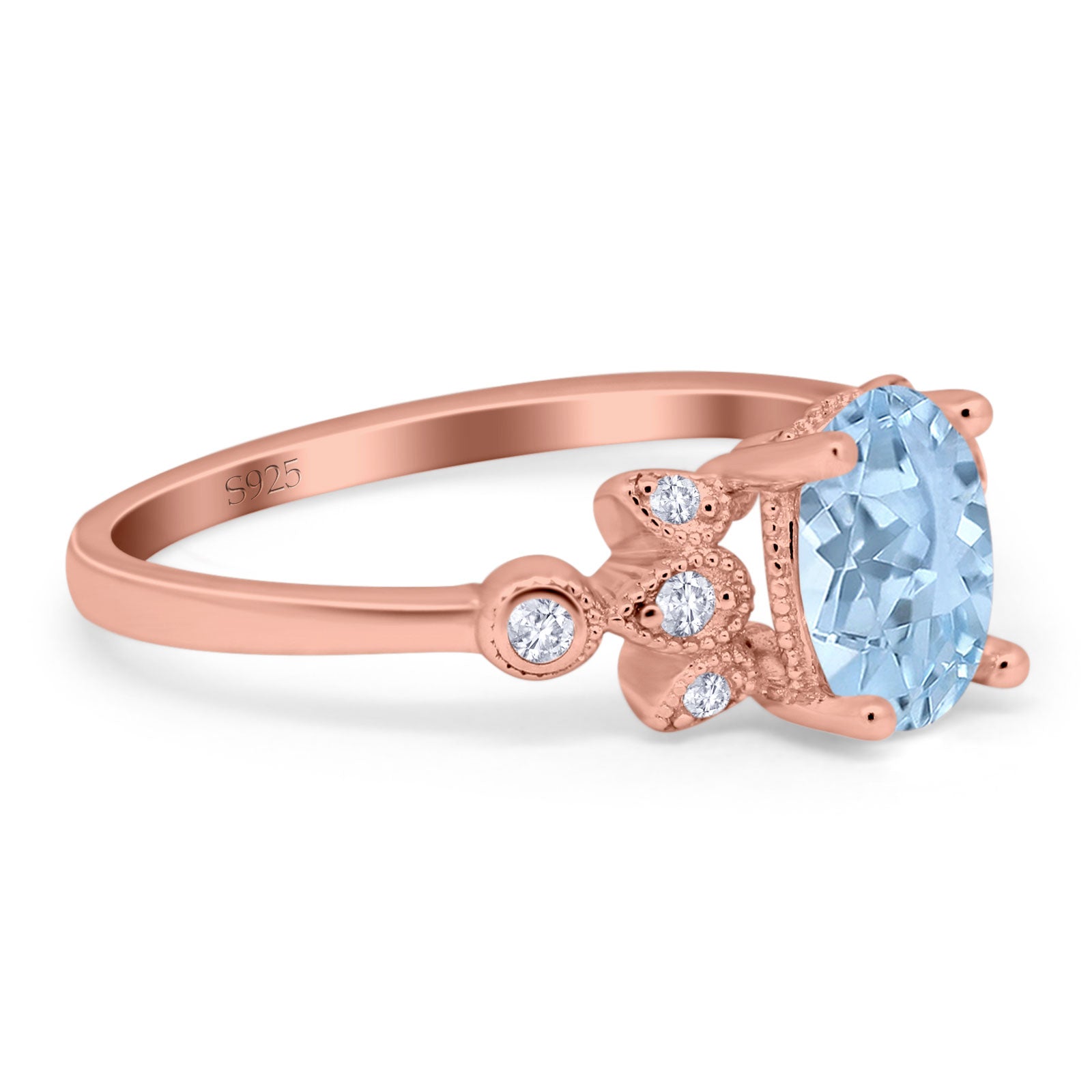 Minimalist 8mm Lab Created Blue Opal Heart Ring 925 Sterling Silver