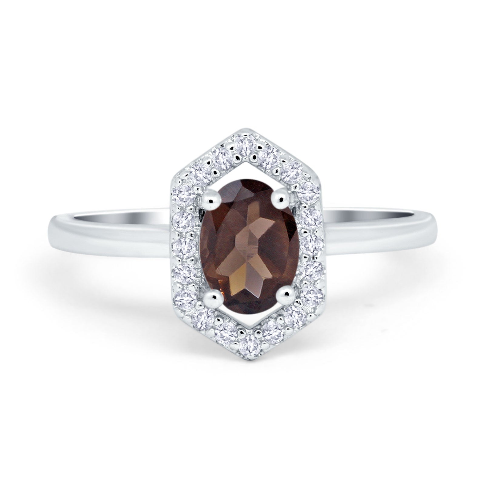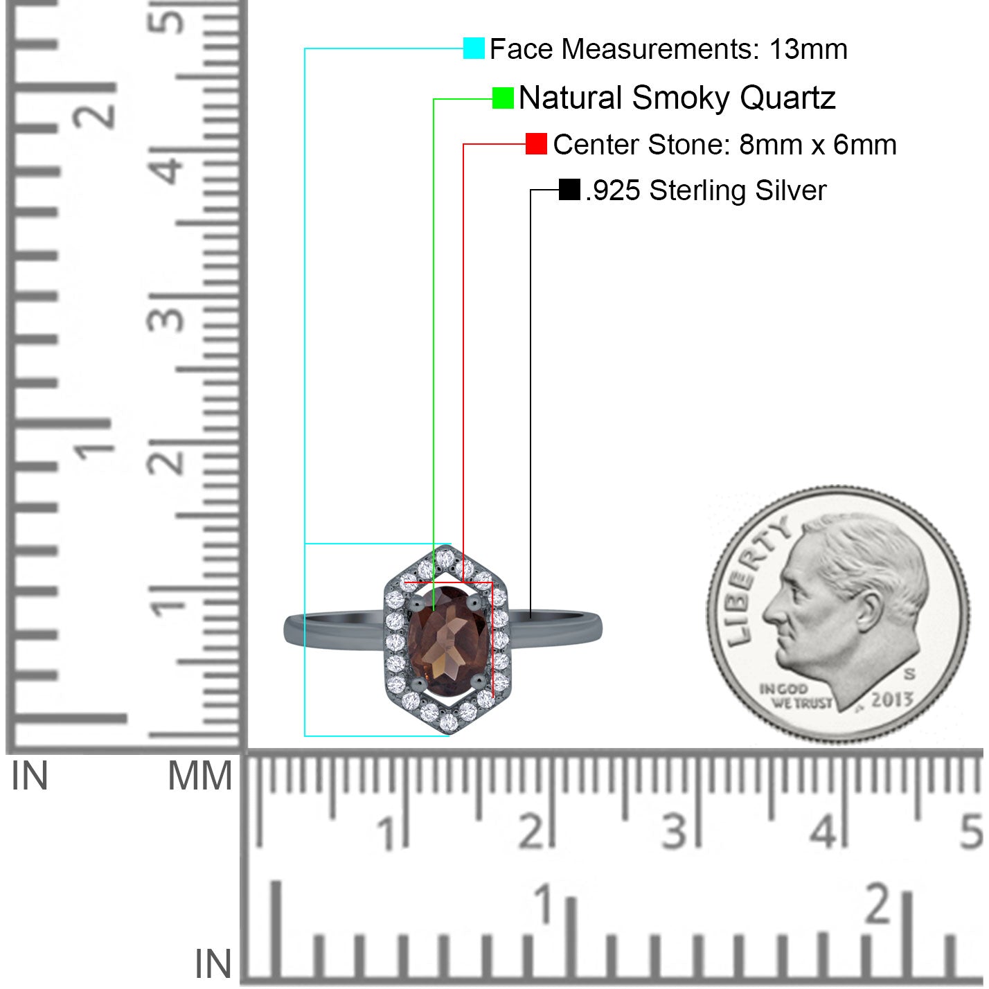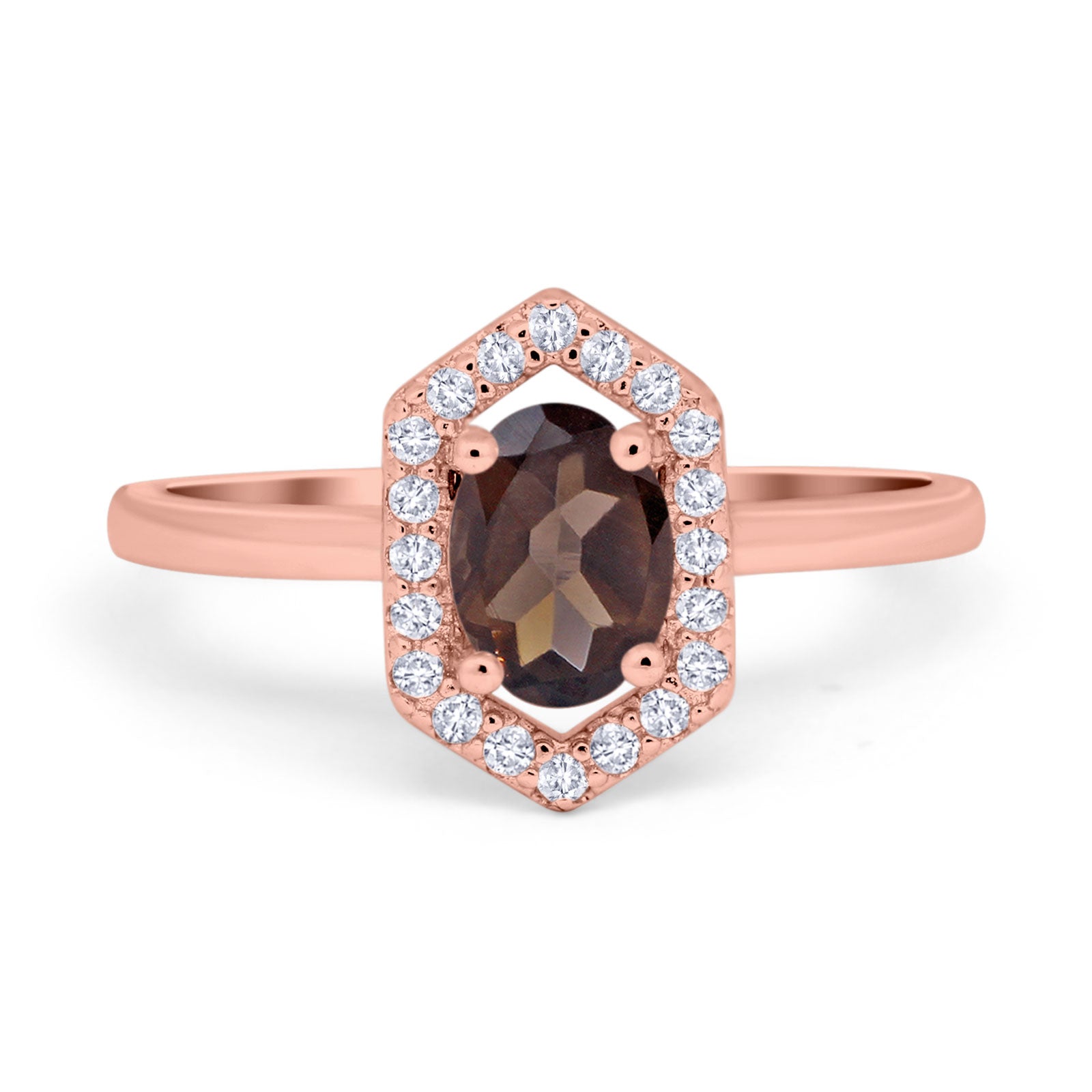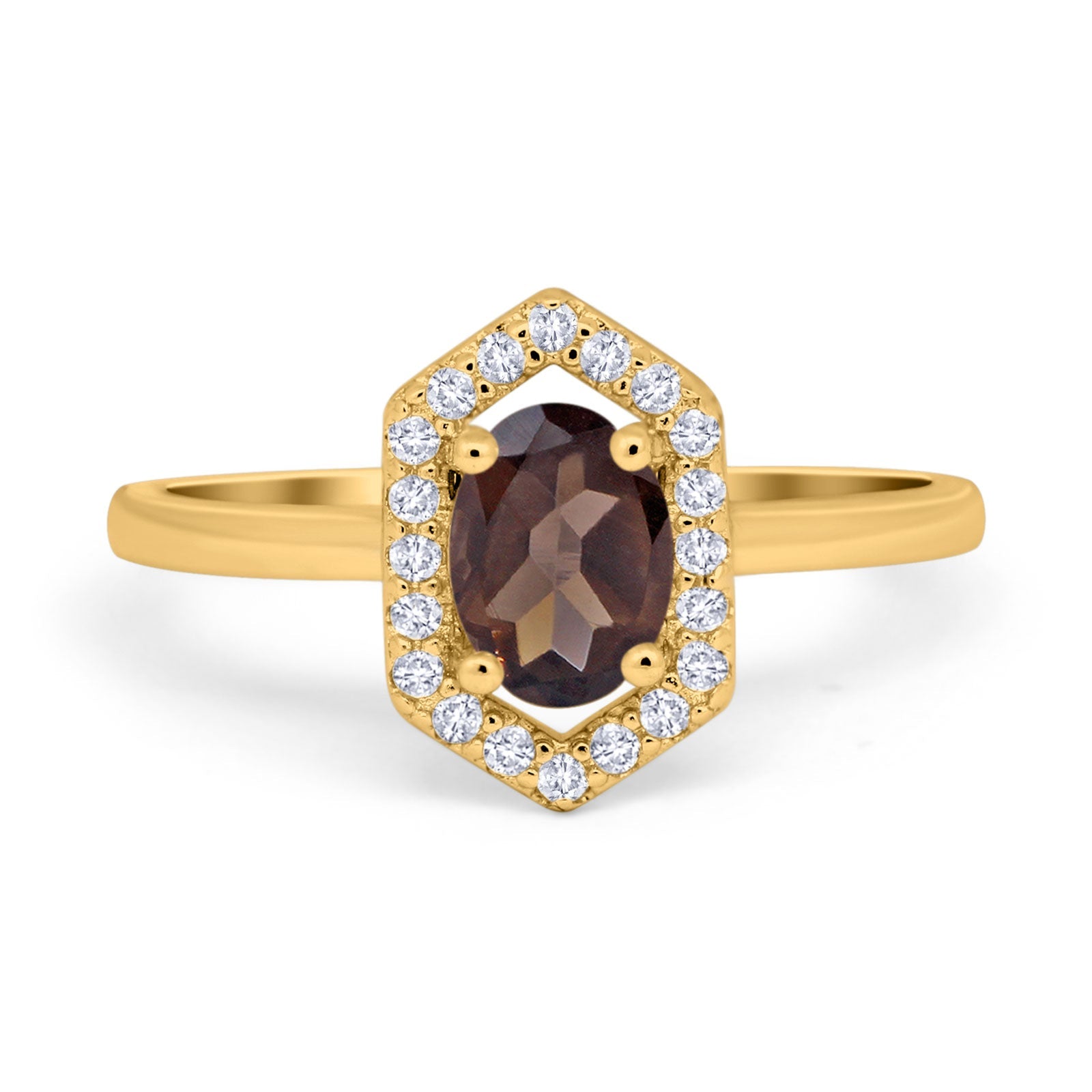Art Deco Oval Natural Chocolate Smoky Quartz Hexagonal Shaped Ring 925 Sterling Silver