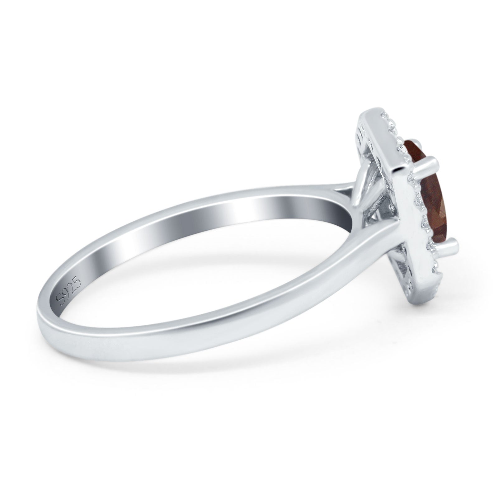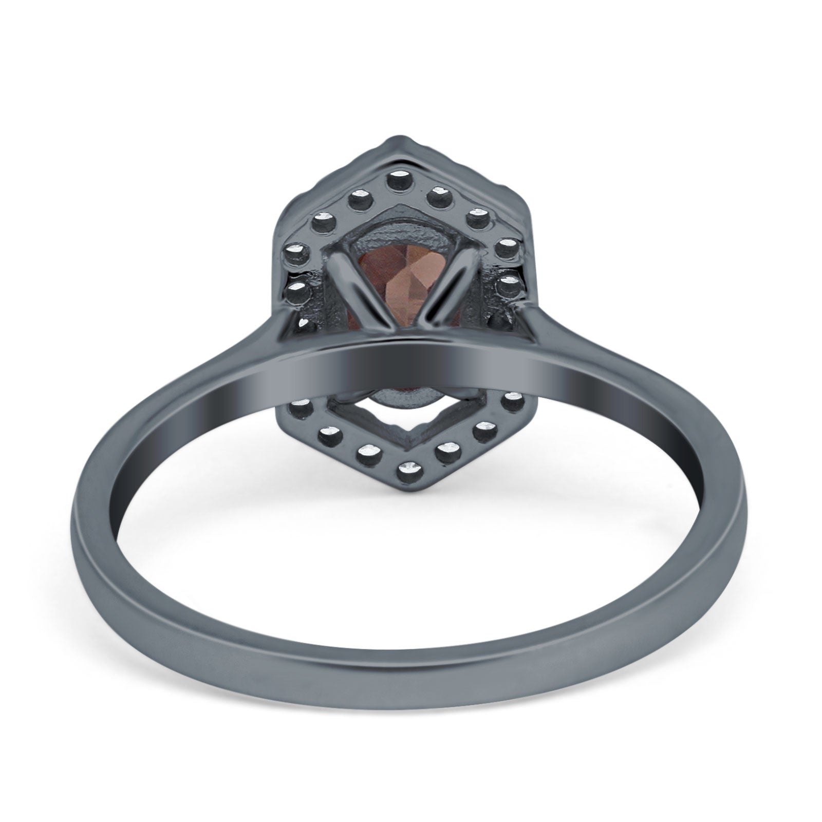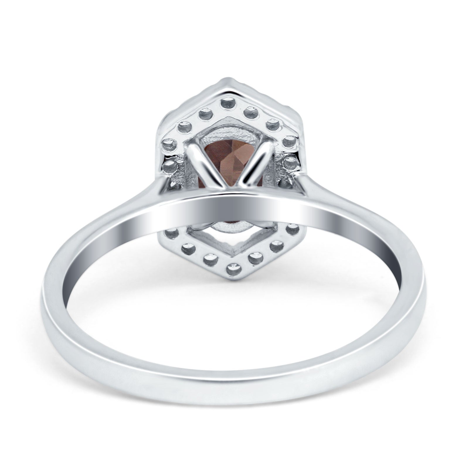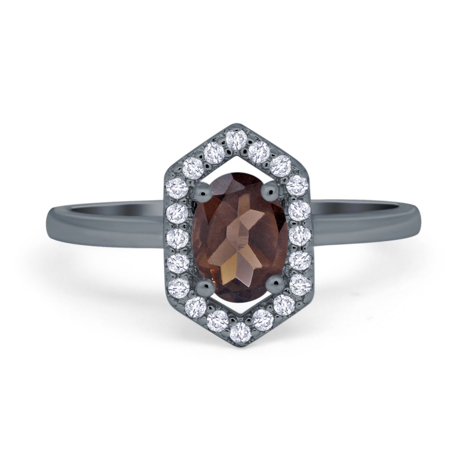 Art Deco Oval Natural Chocolate Smoky Quartz Hexagonal Shaped Ring 925 Sterling Silver