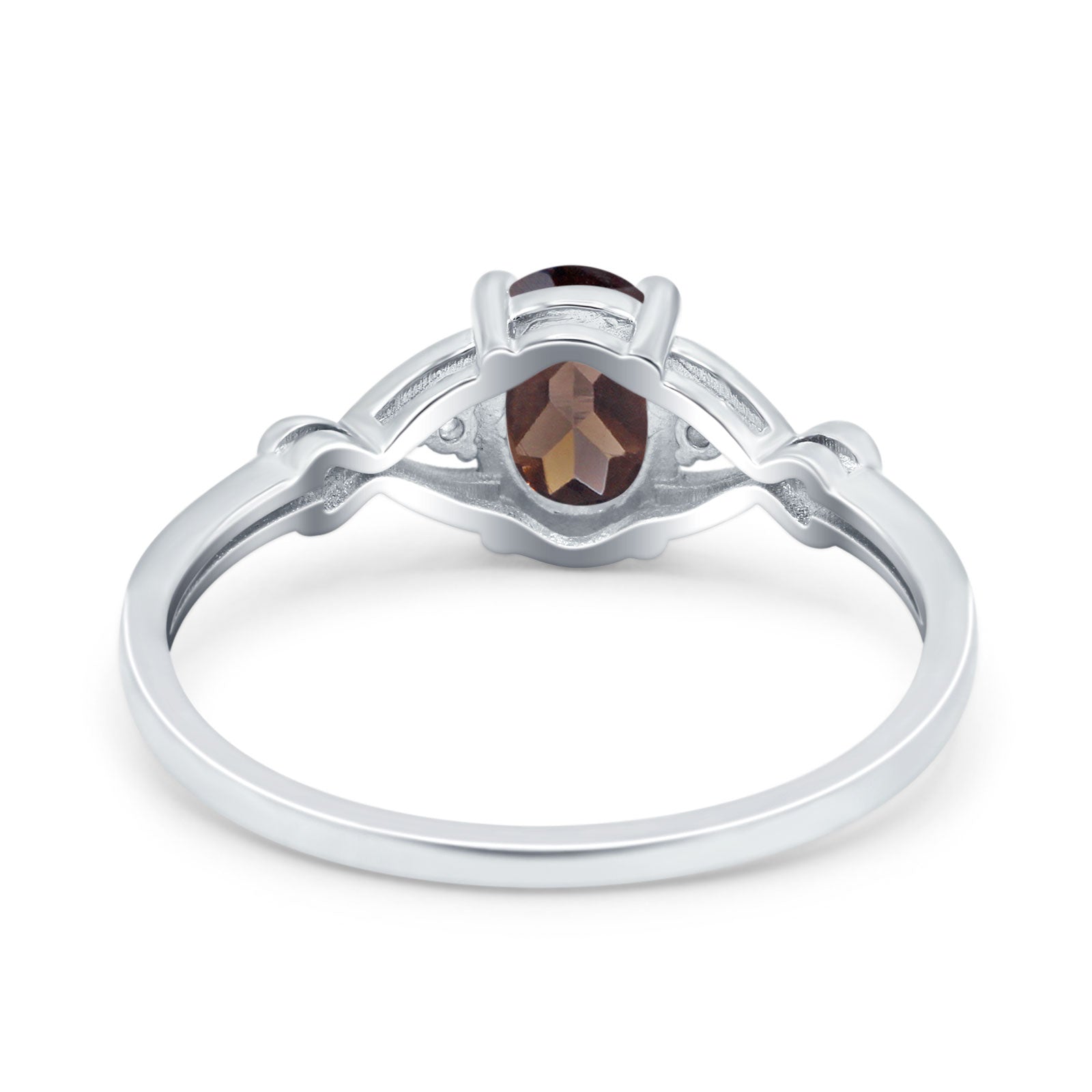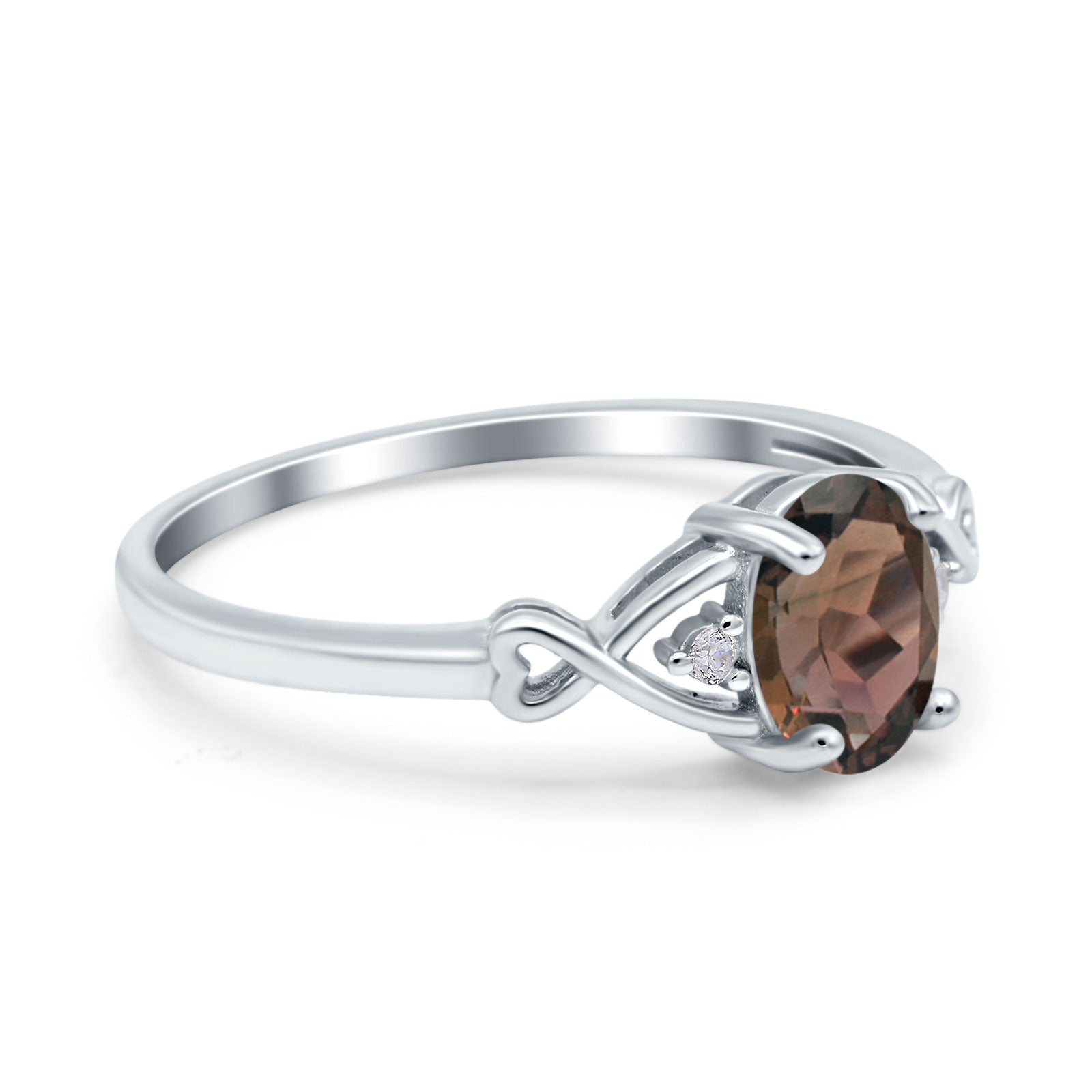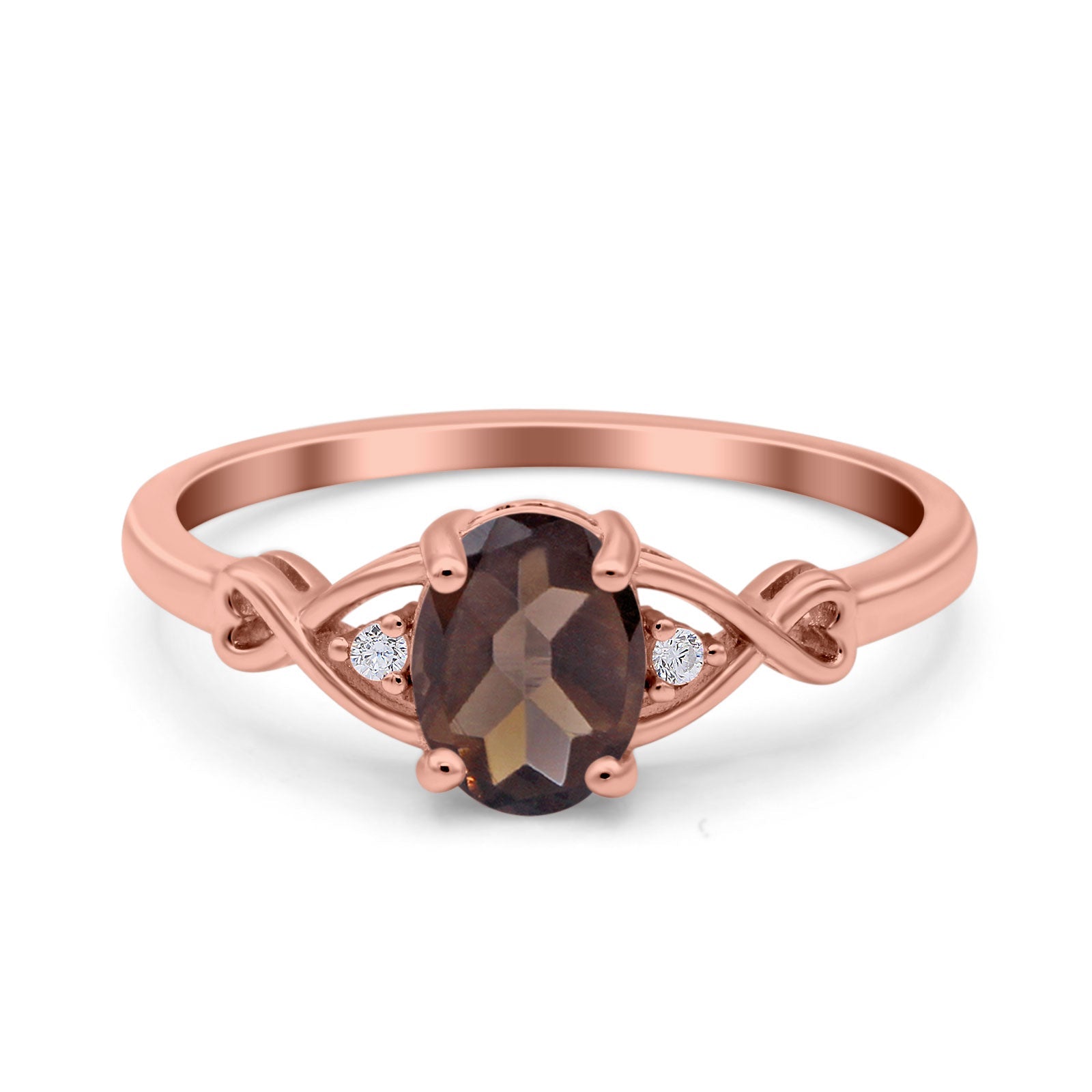 Art Deco Oval Natural Chocolate Smoky Quartz Split Shank Twisted Ring 925 Sterling Silver