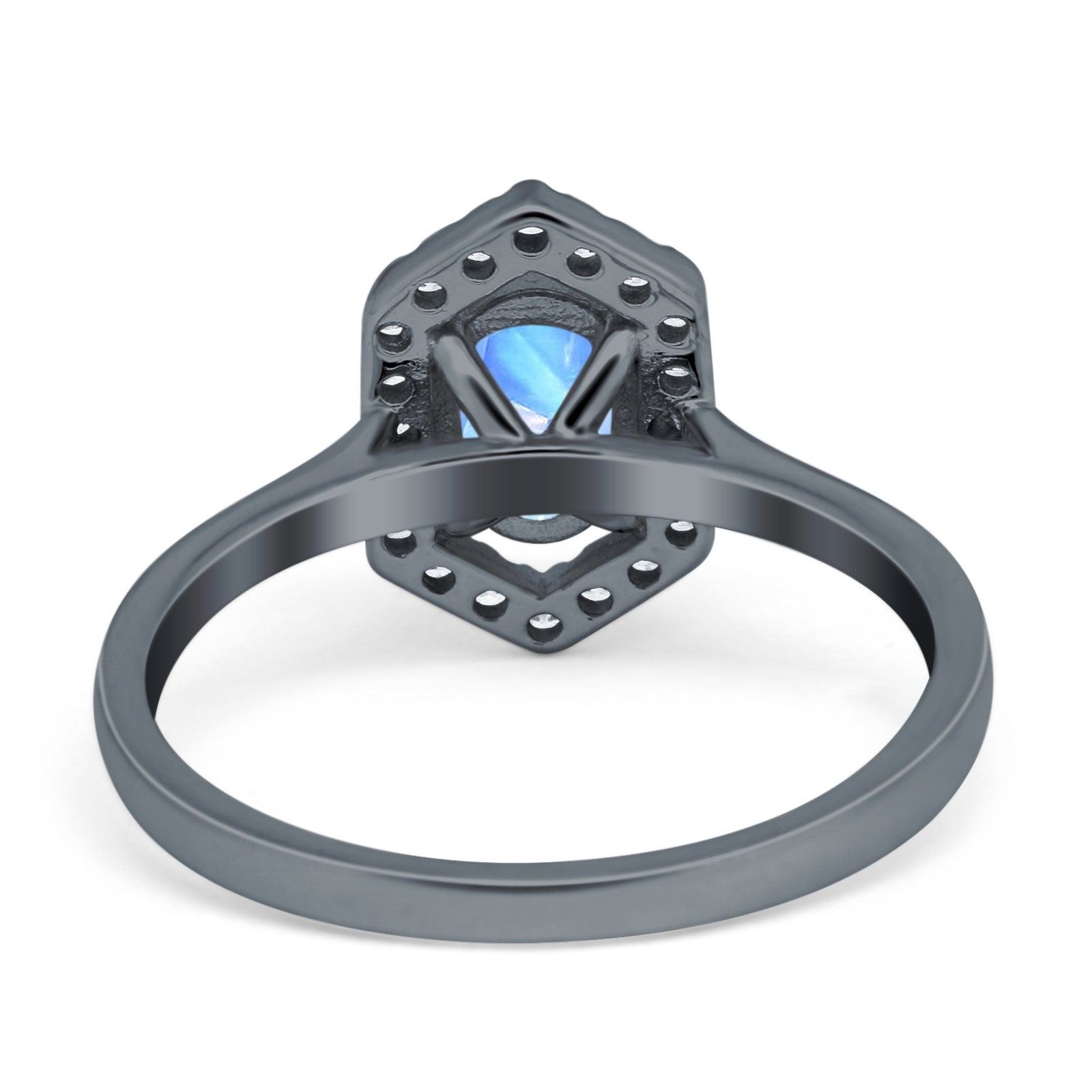 Minimalist 8mm Lab Created Blue Opal Heart Ring 925 Sterling Silver