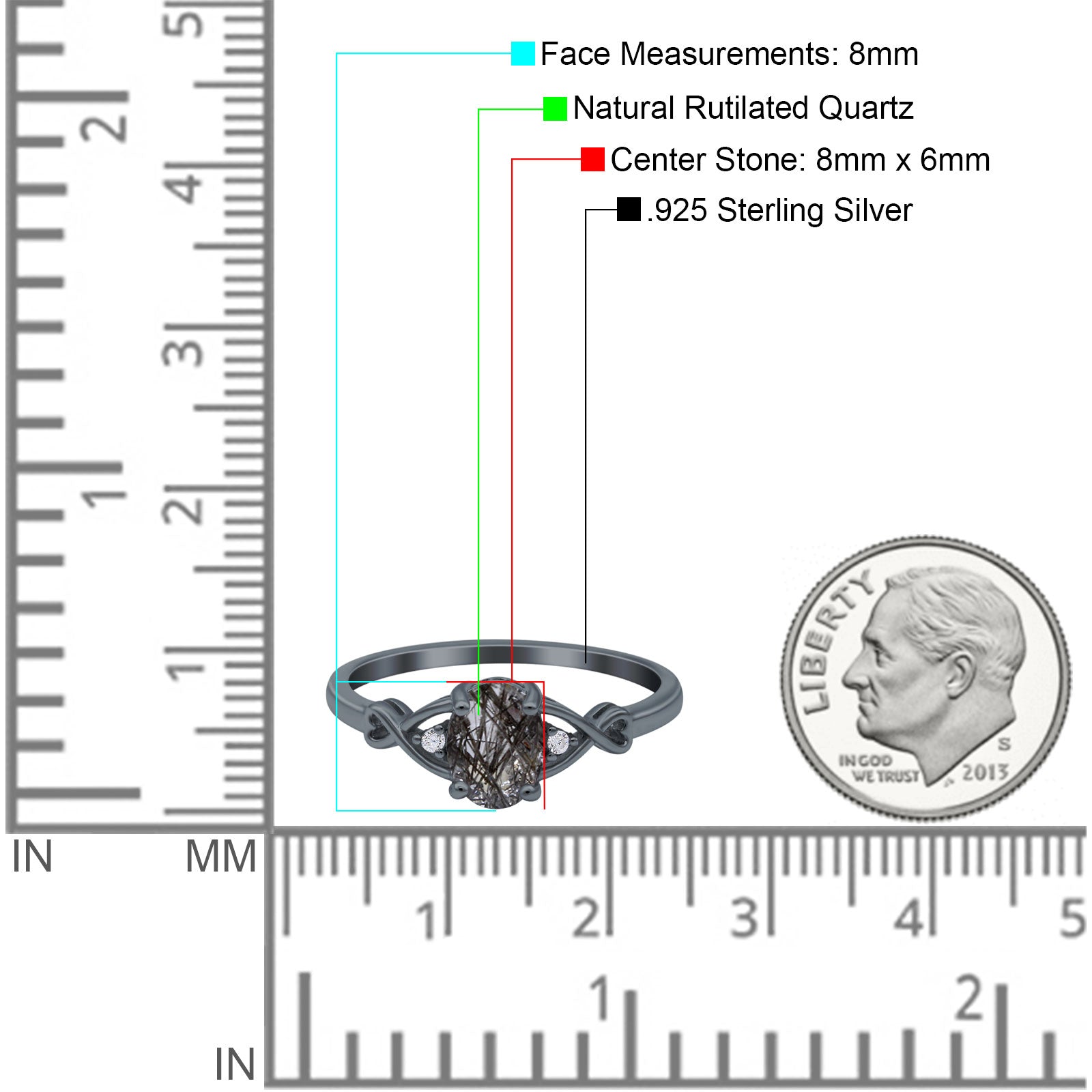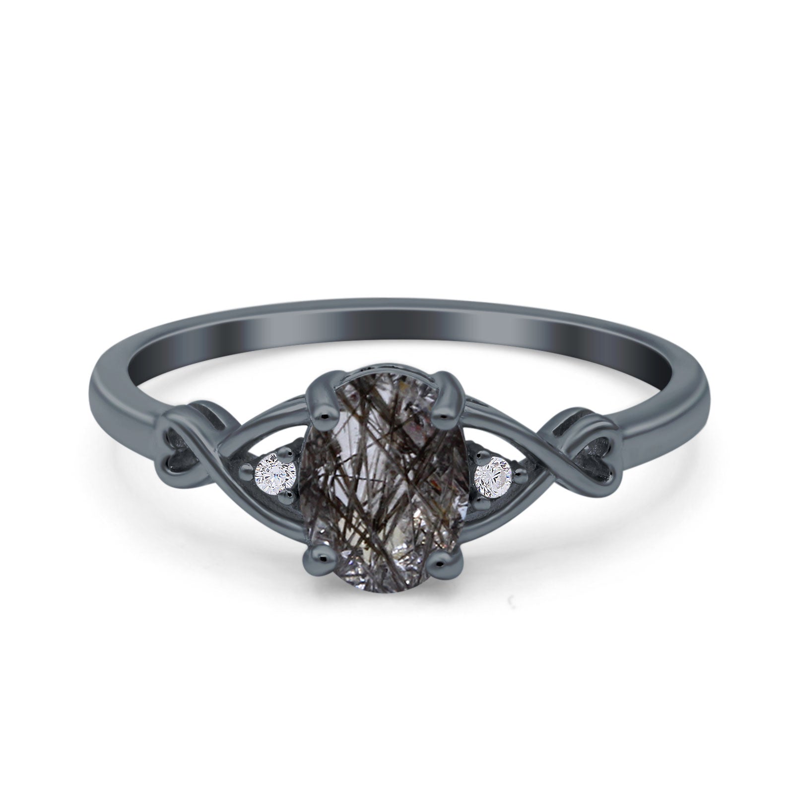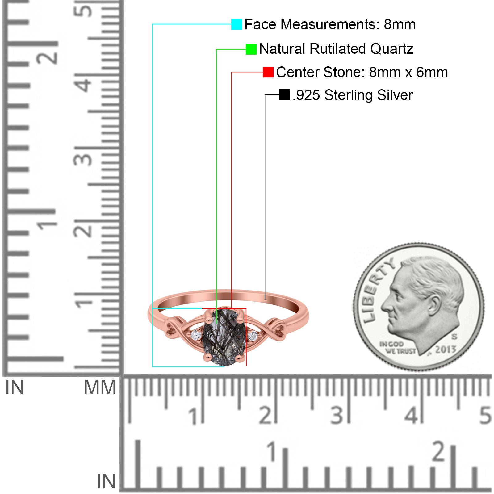 Art Deco Oval Natural Rutilated Quartz Split Shank Twisted Ring 925 Sterling Silver