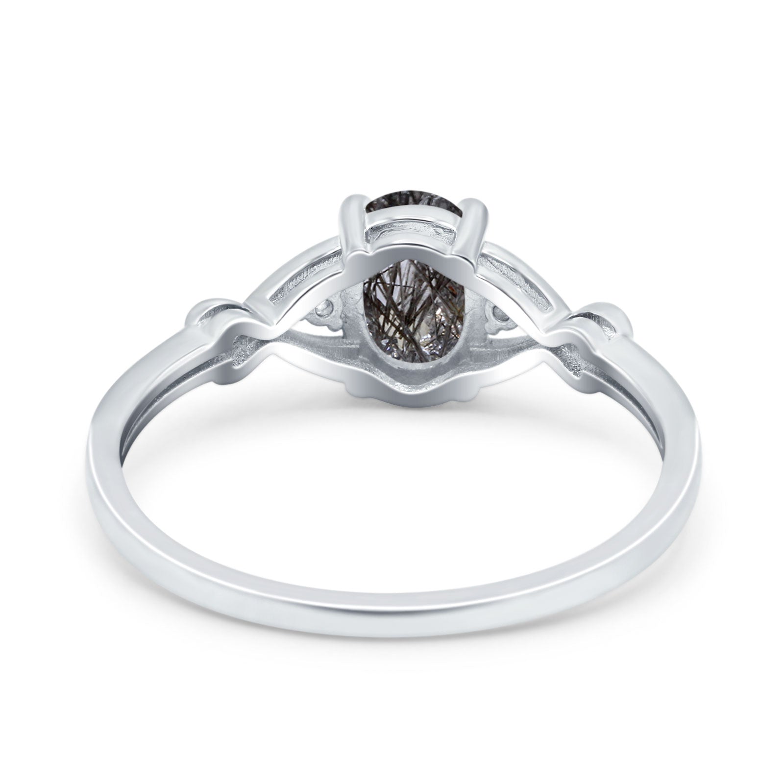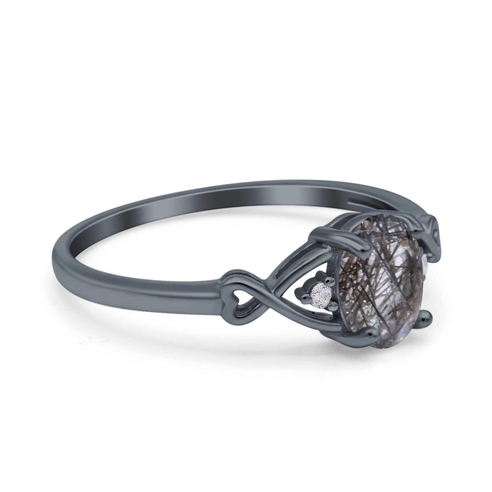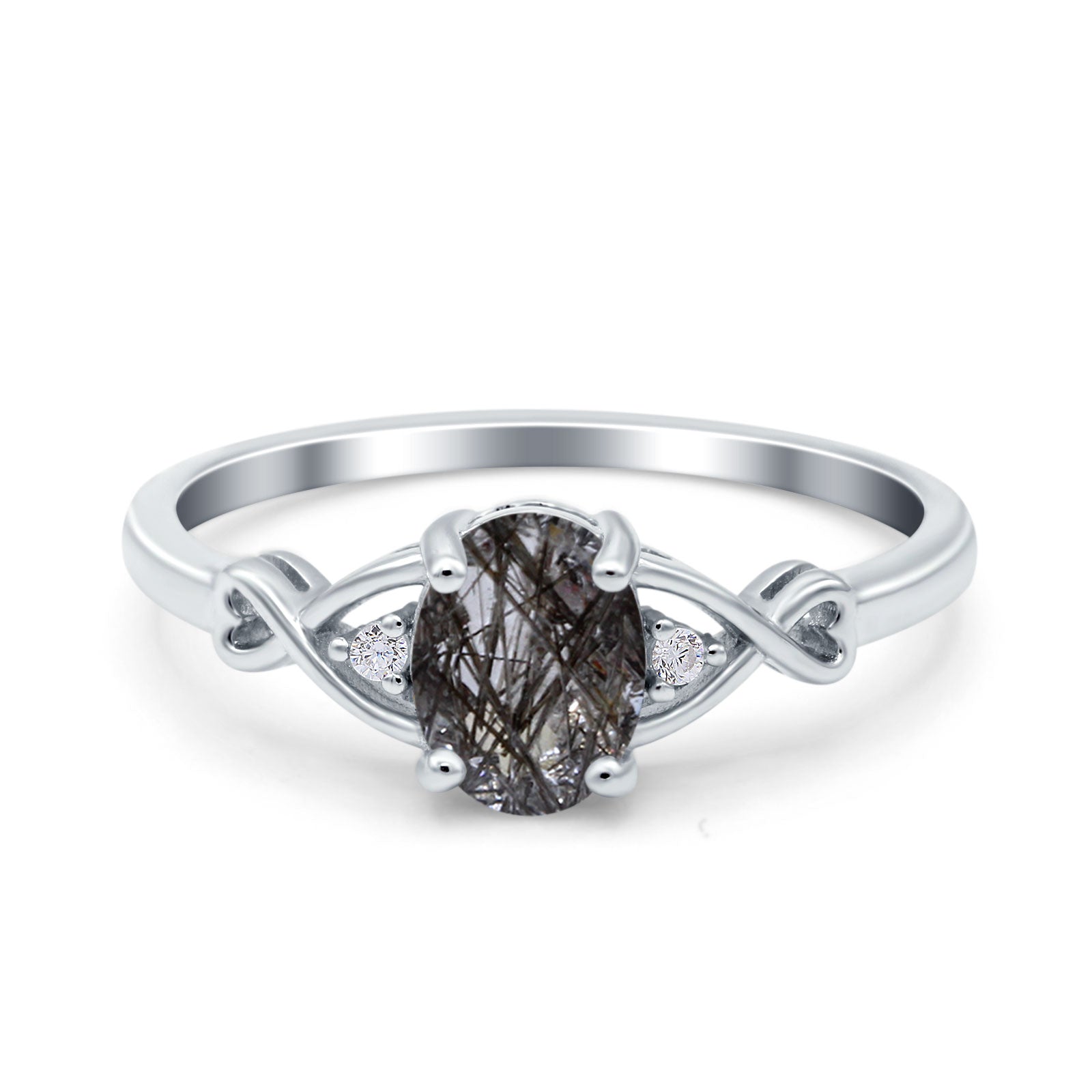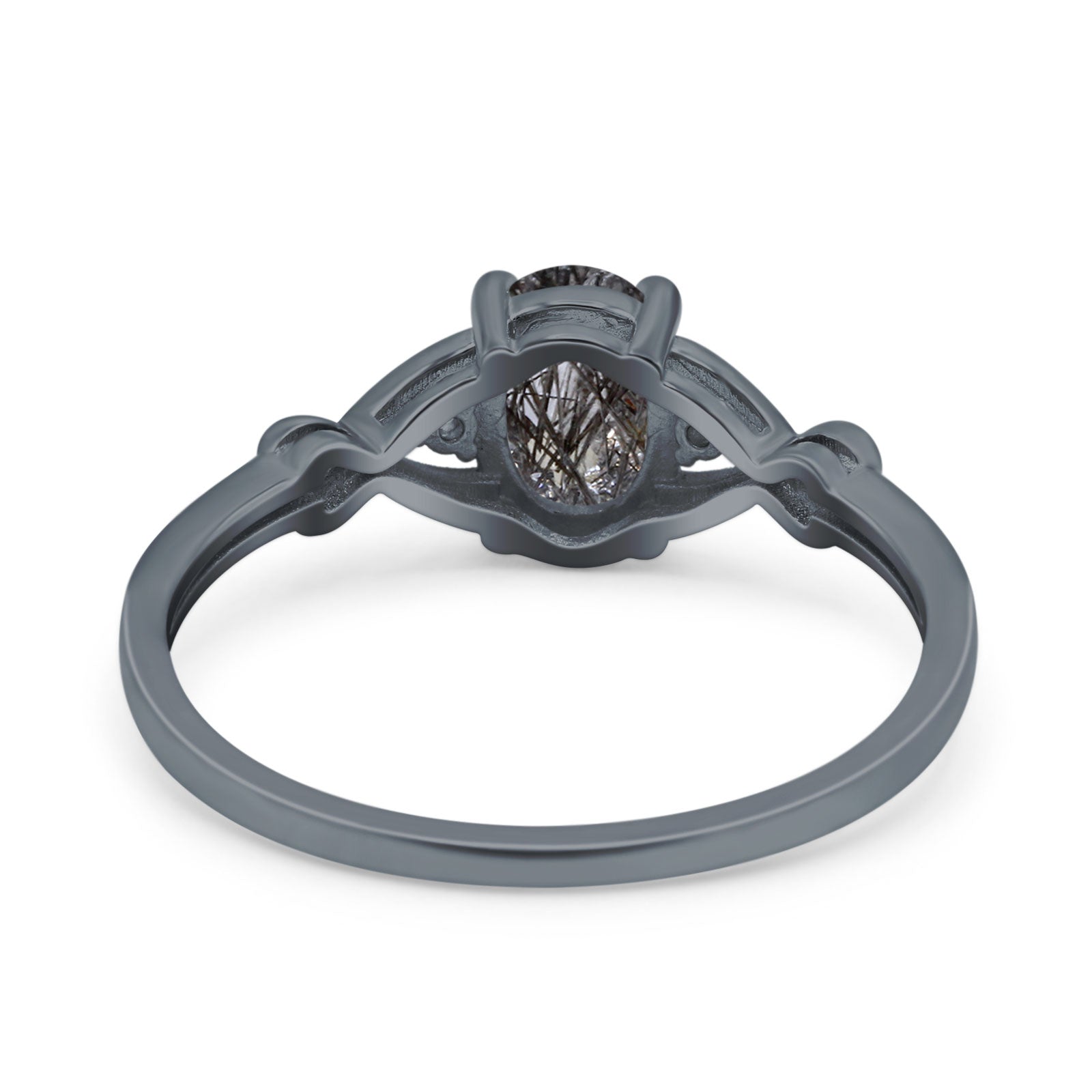 Art Deco Oval Natural Rutilated Quartz Split Shank Twisted Ring 925 Sterling Silver
