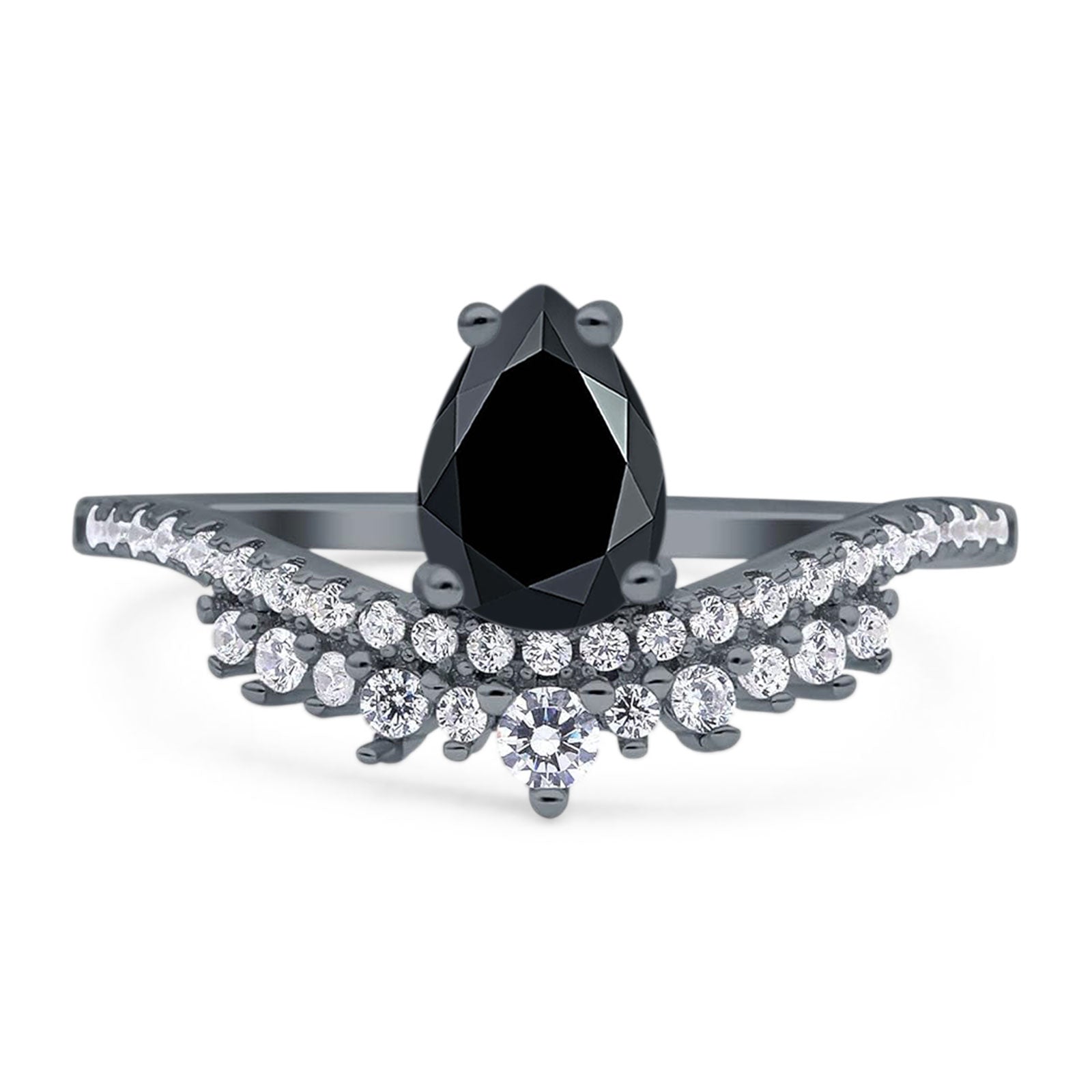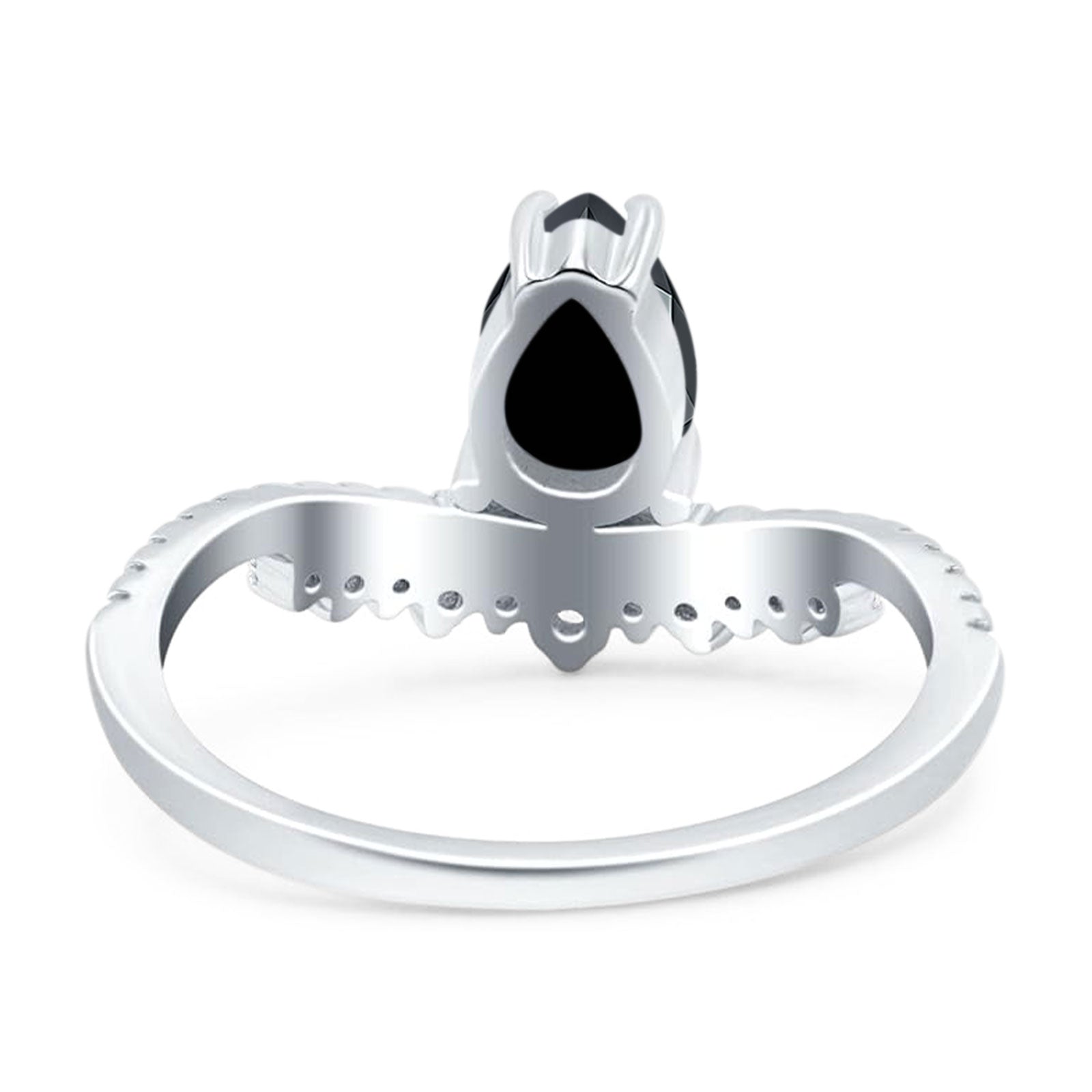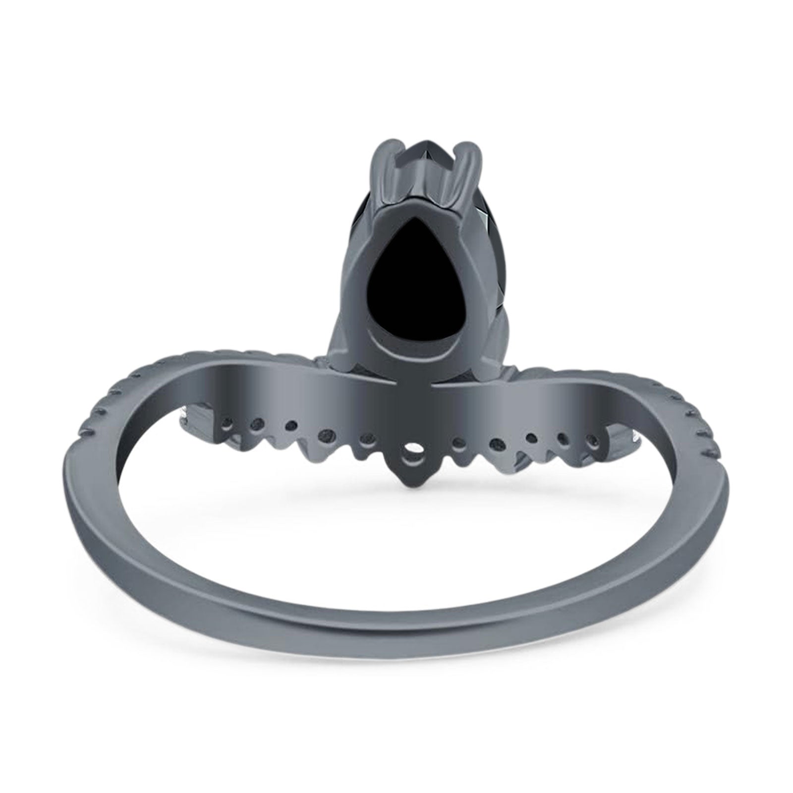 Art Deco Pear Teardrop Natural Black Onyx Cocktail Ring 925 Sterling Silver