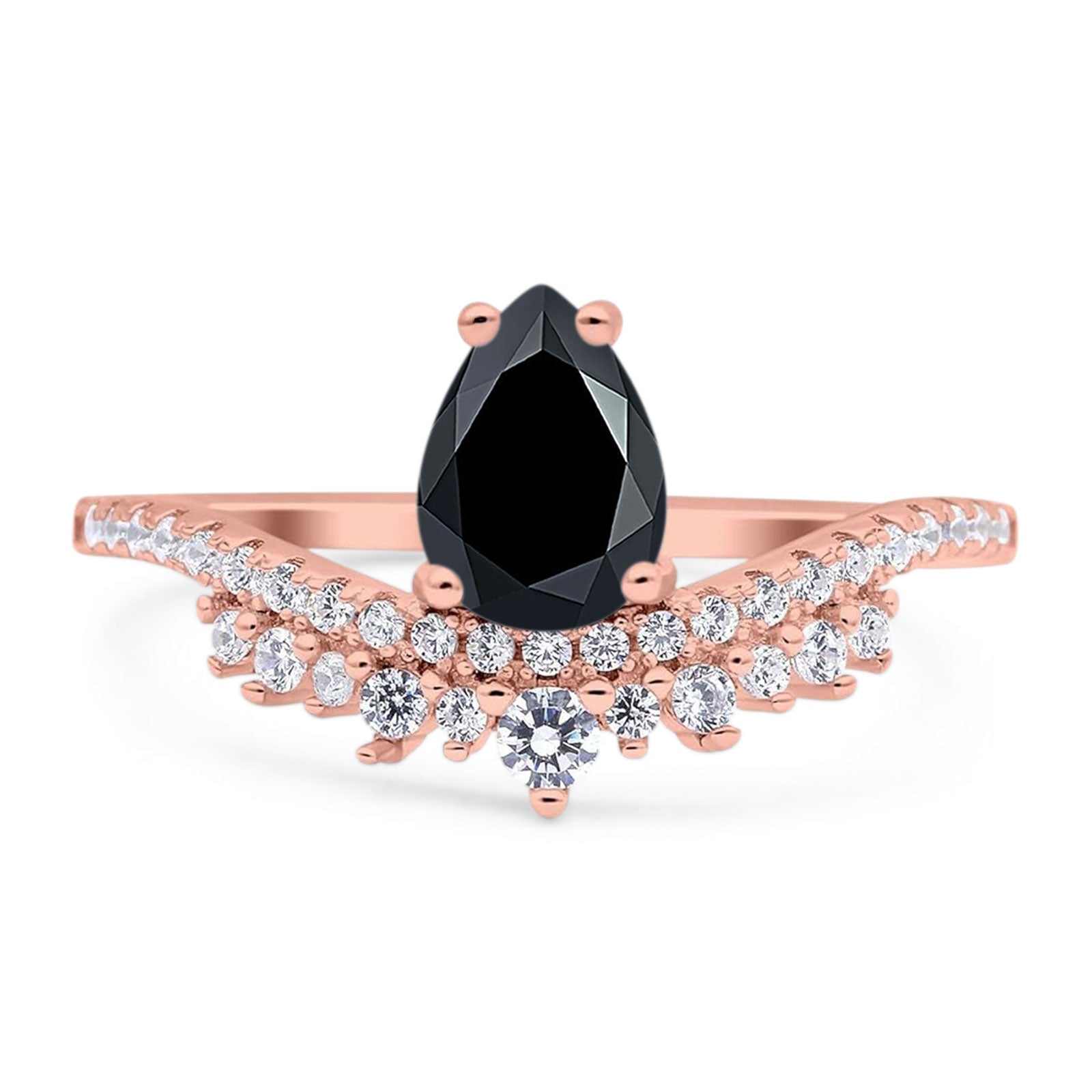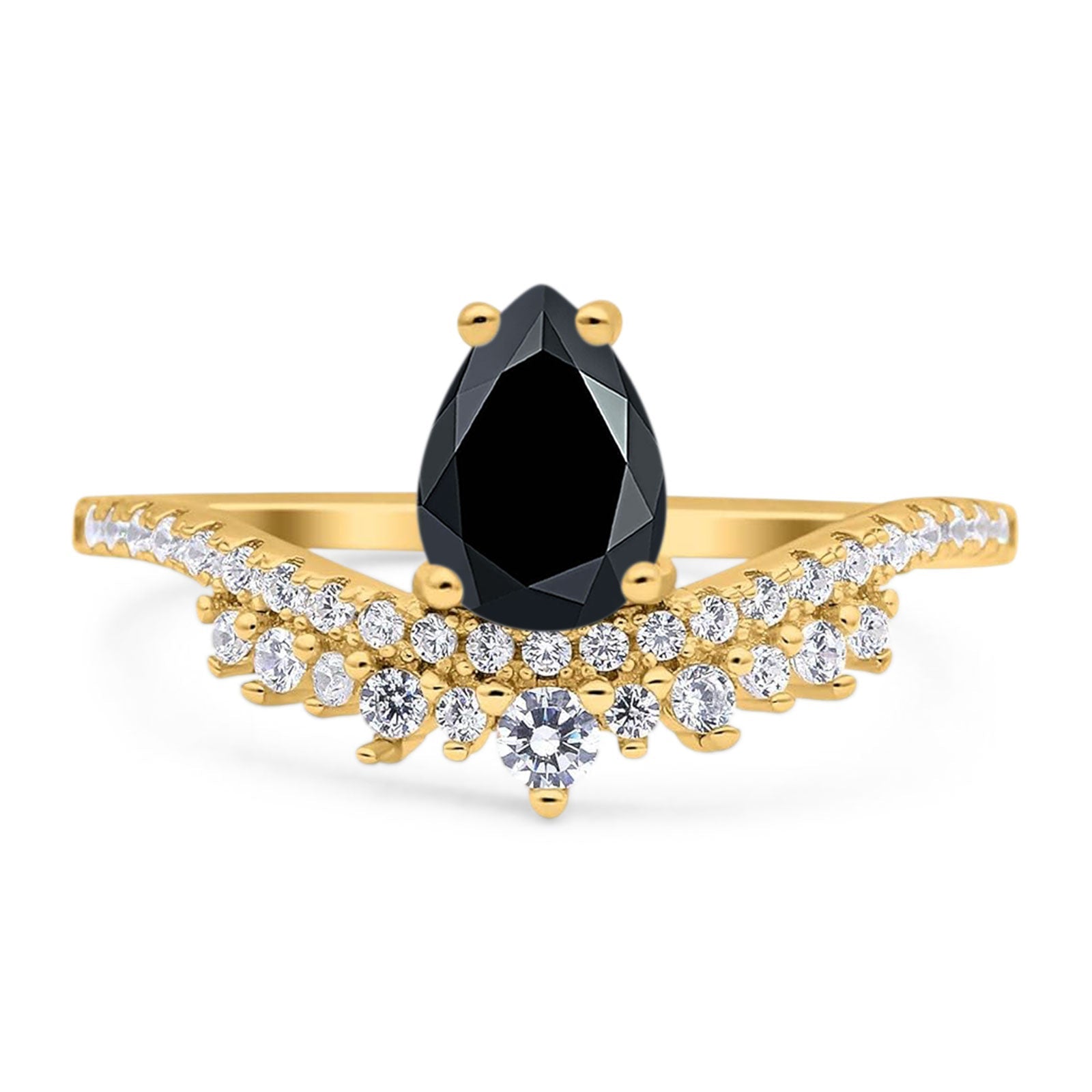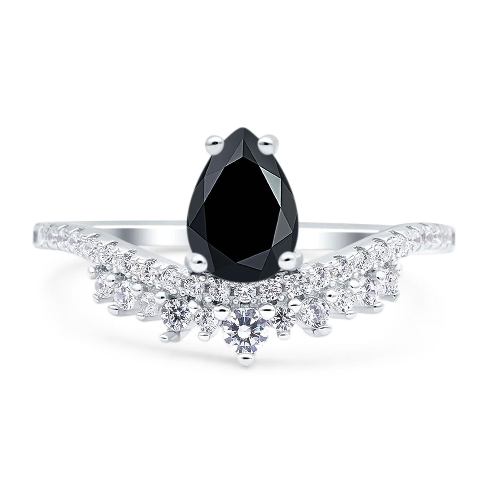 Art Deco Pear Teardrop Natural Black Onyx Cocktail Ring 925 Sterling Silver
