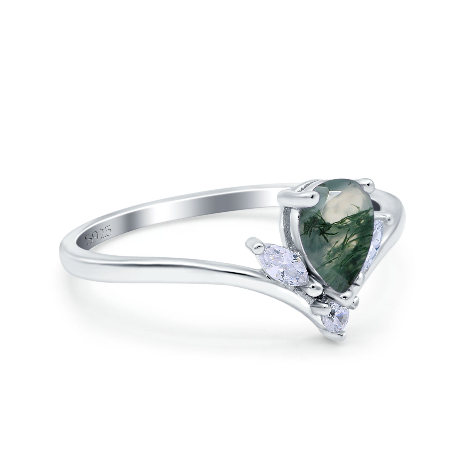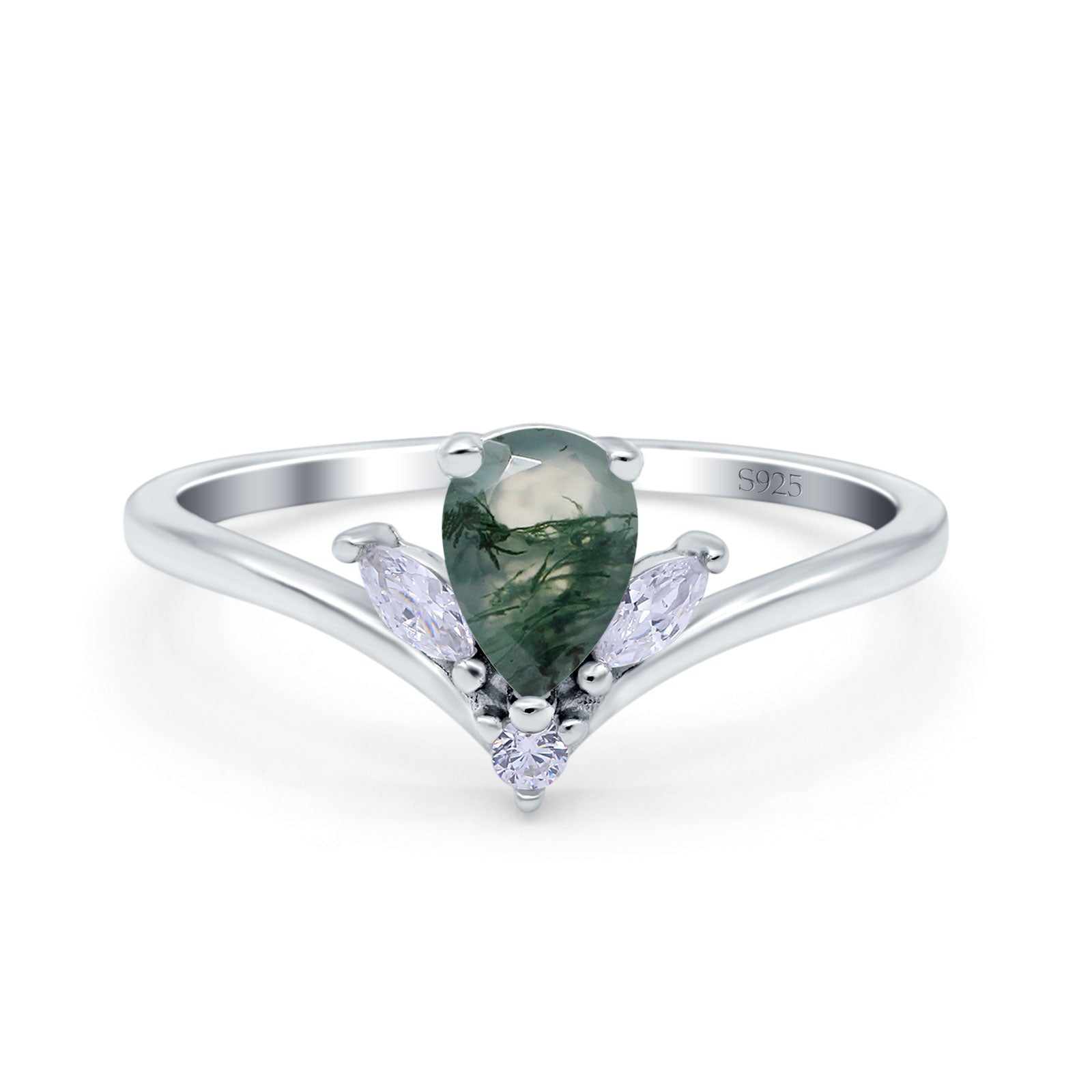 -Pear Teardrop Natural Green Moss Agate Gemstone.