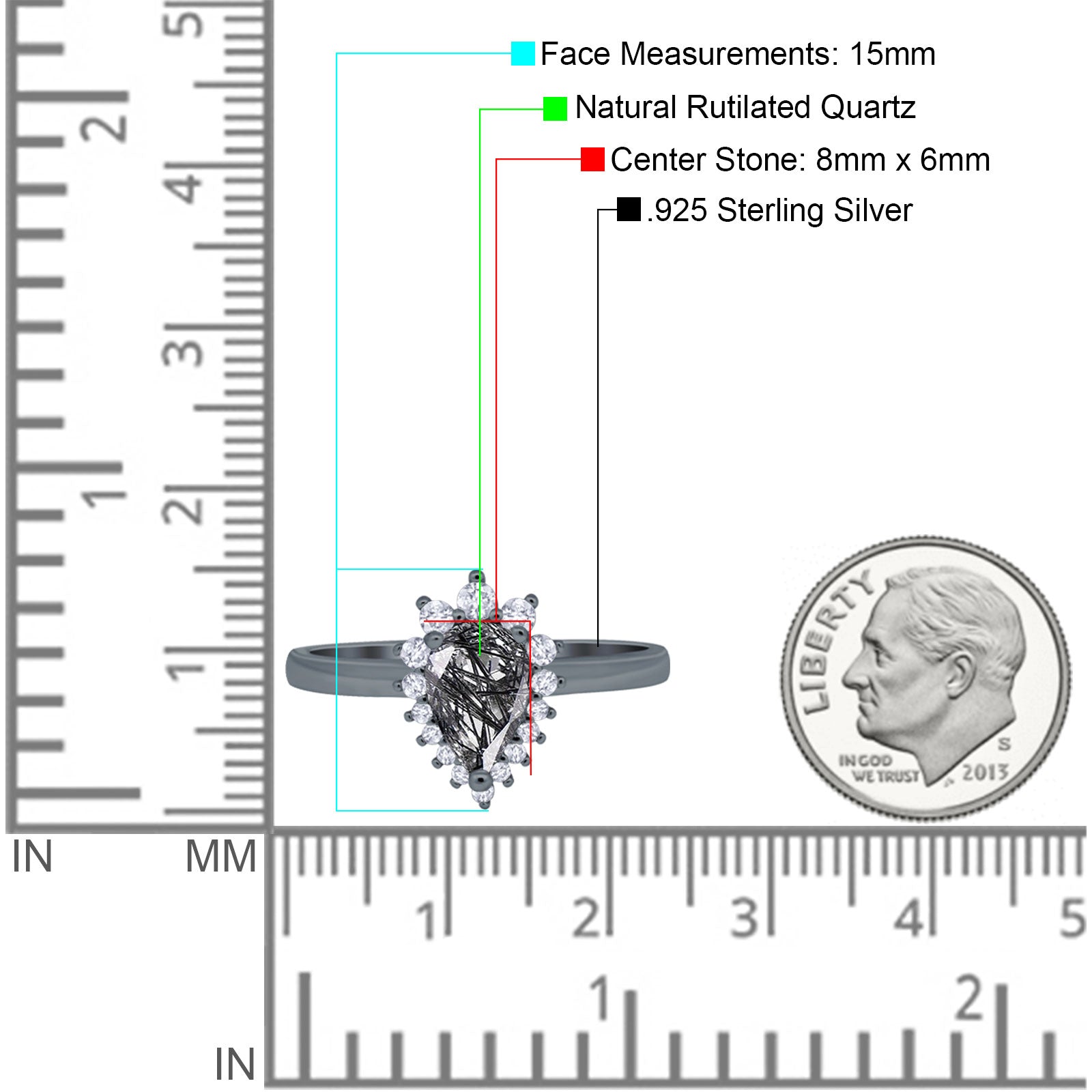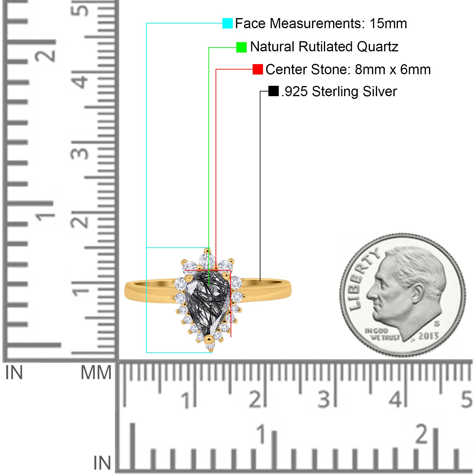 Art Deco Pear Teardrop Natural Rutilated Quartz Cocktail Ring 925 Sterling Silver
