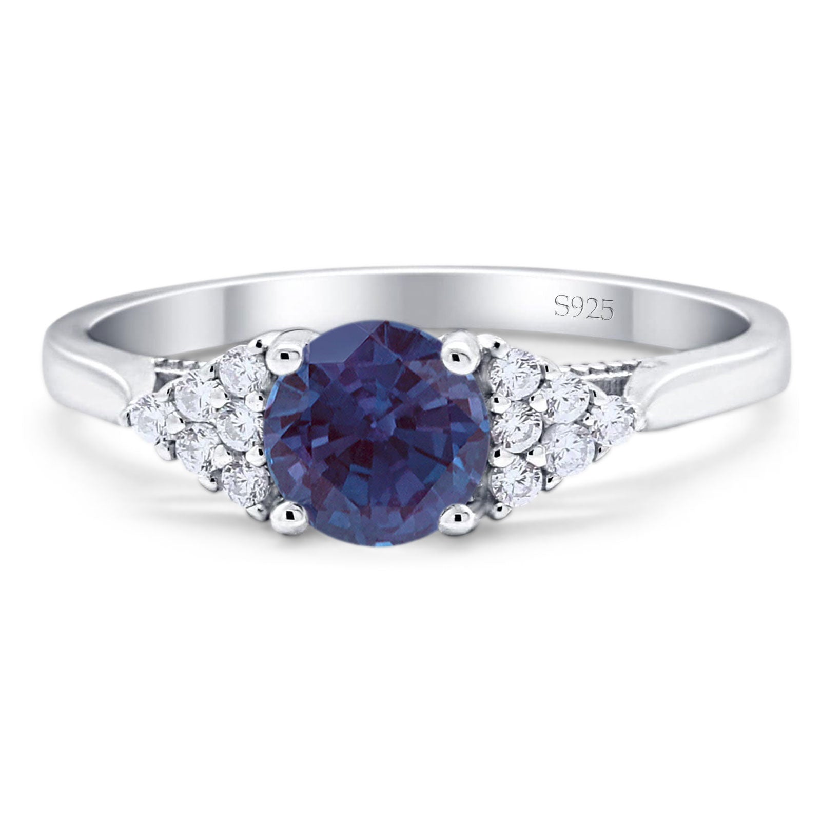 Art Deco Round Lab Alexandrite Cluster Wedding Ring 925 Sterling Silver