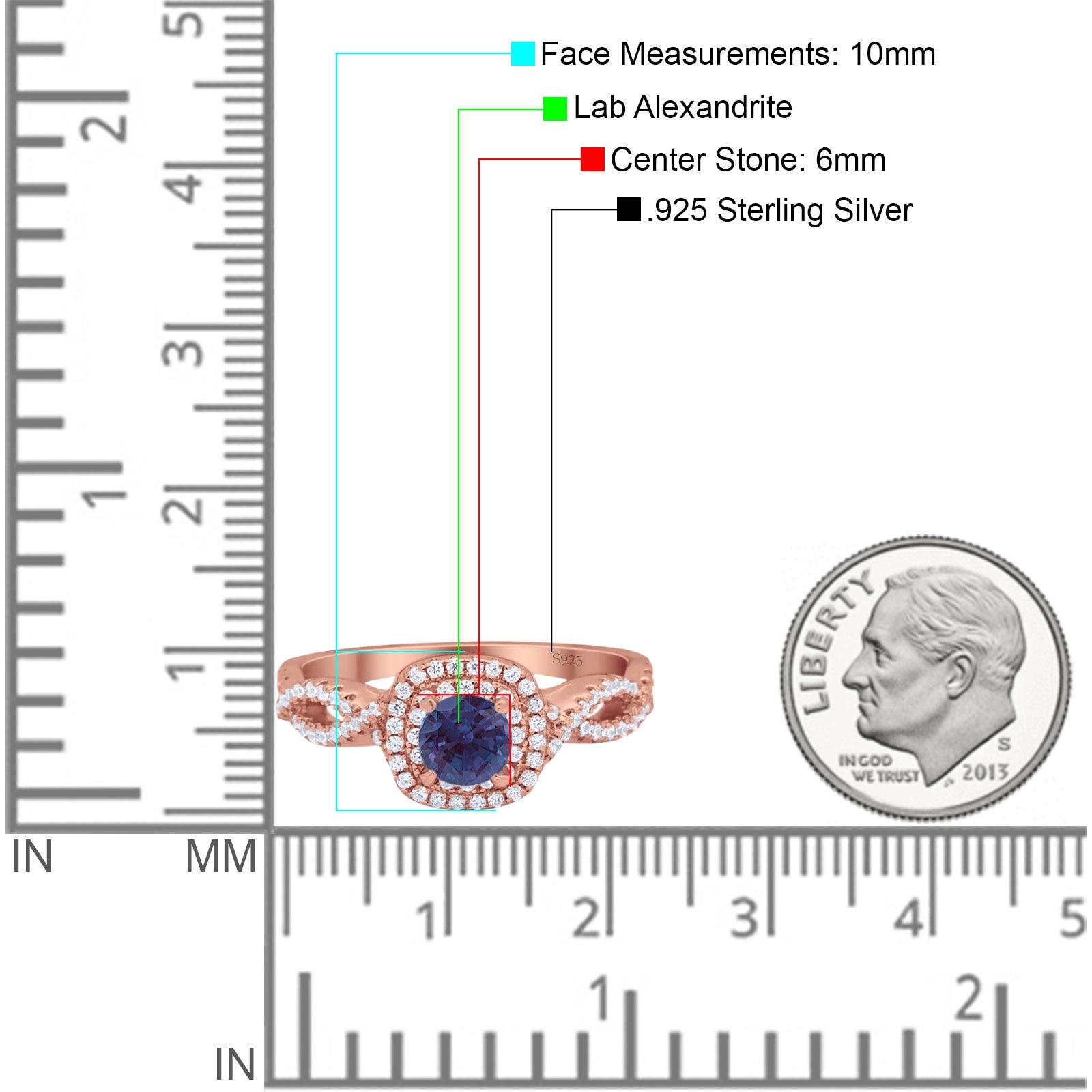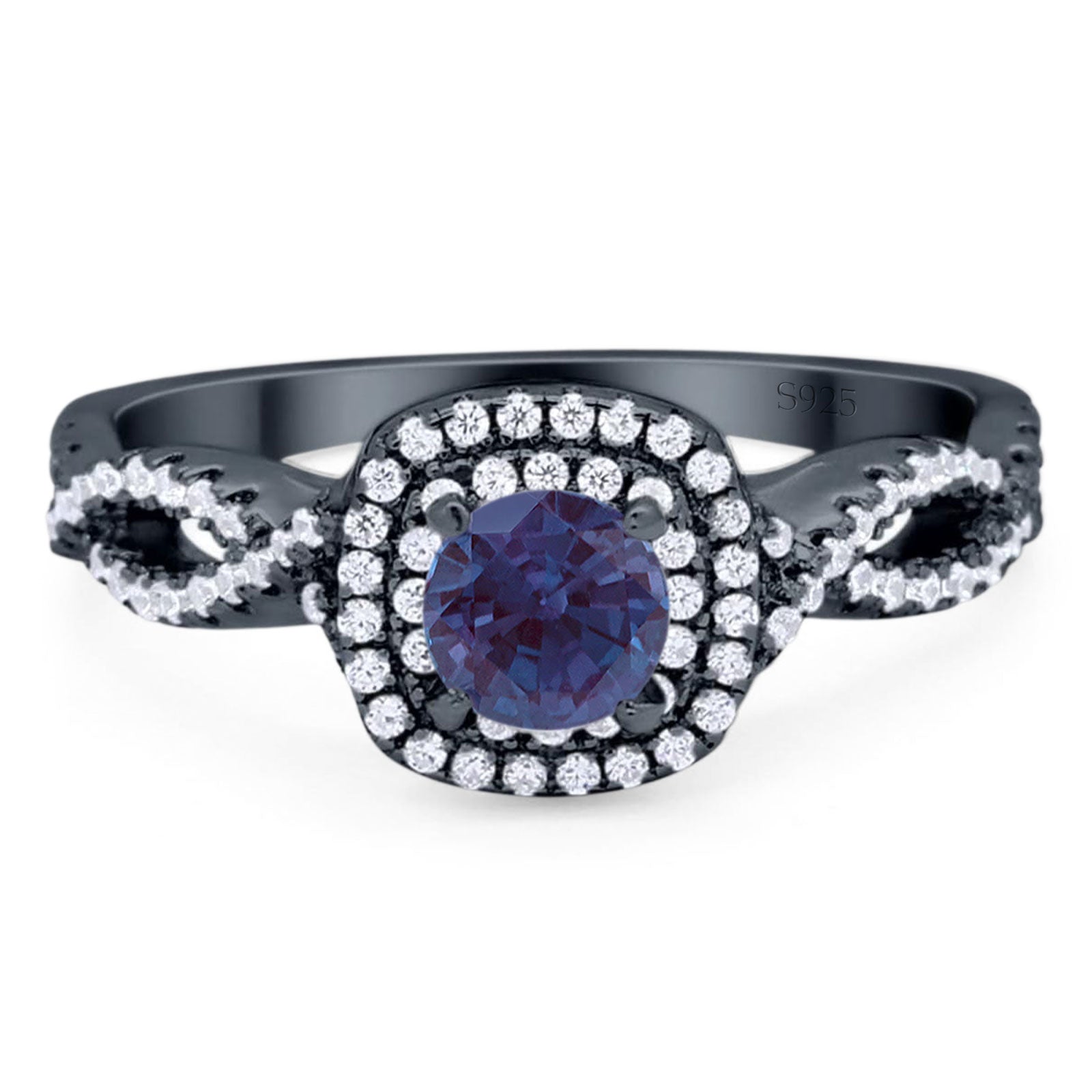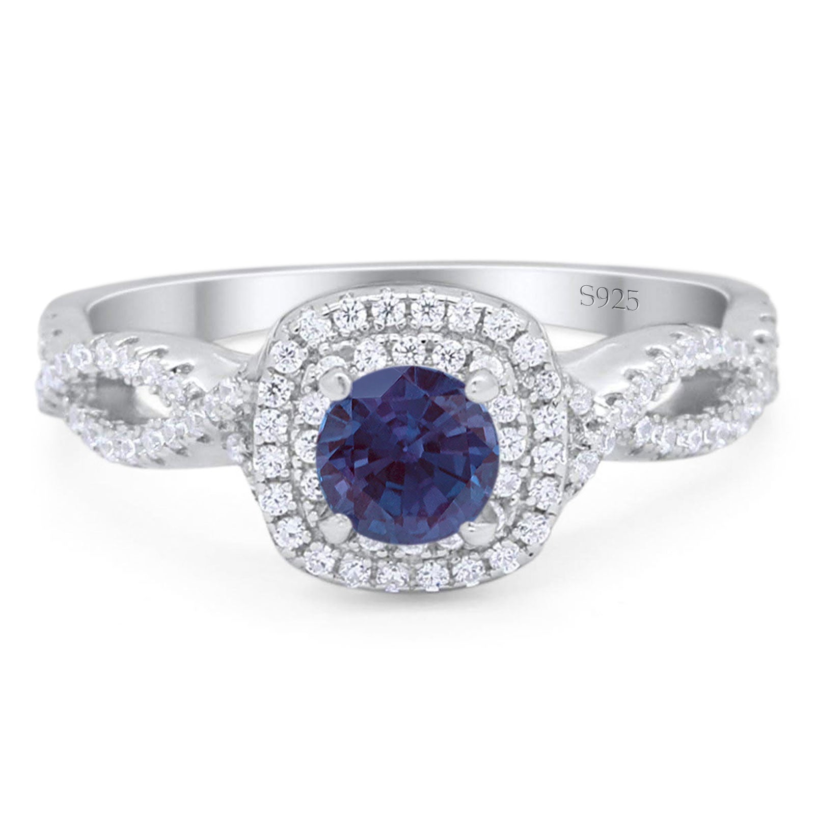 Art Deco Round Lab Alexandrite Infinity Shank Twisted Ring 925 Sterling Silver