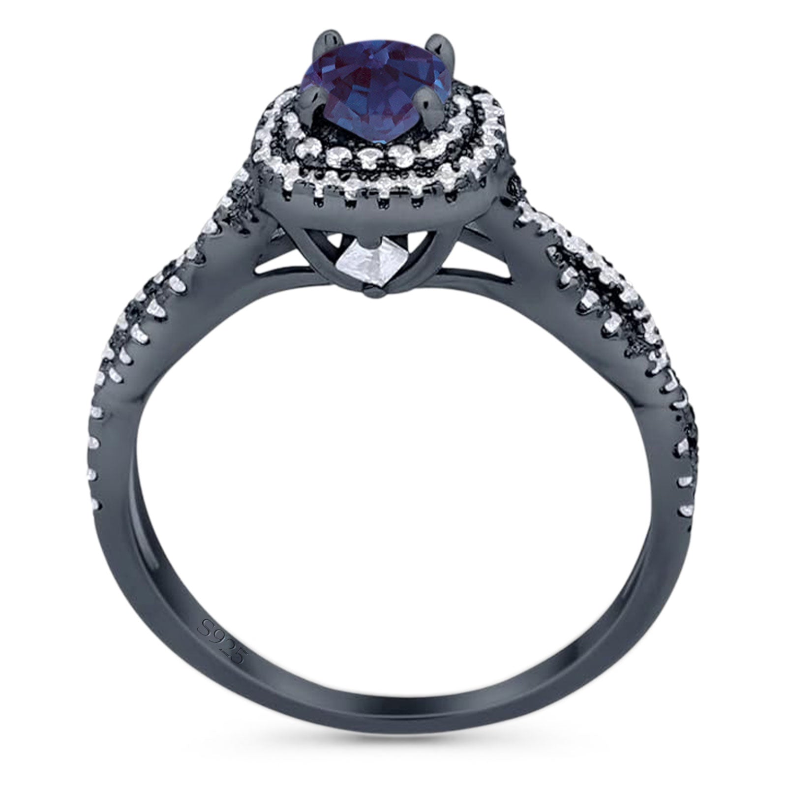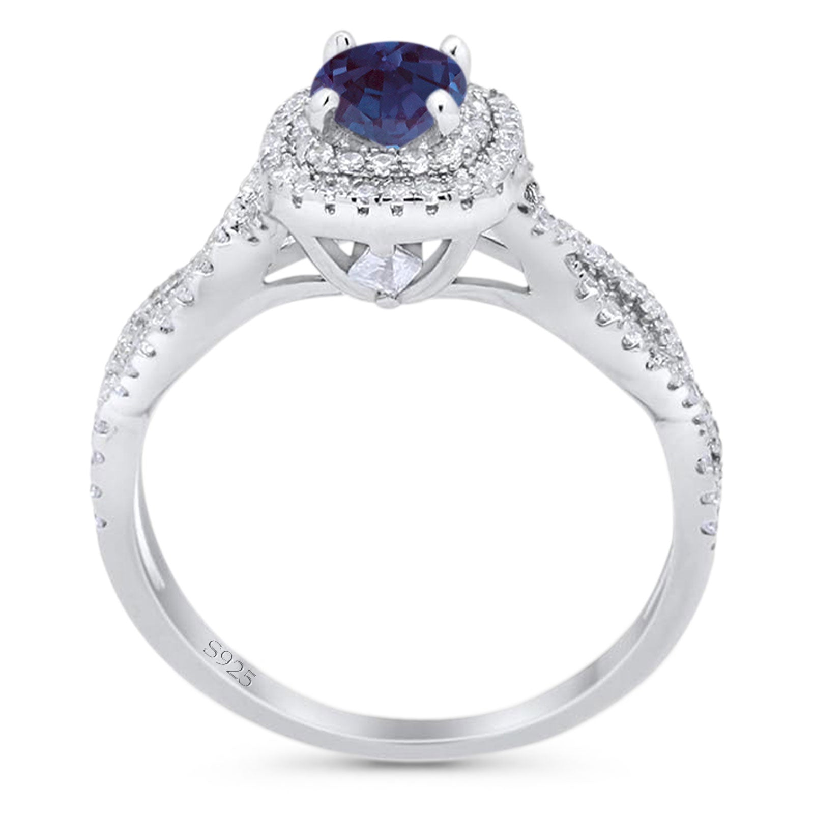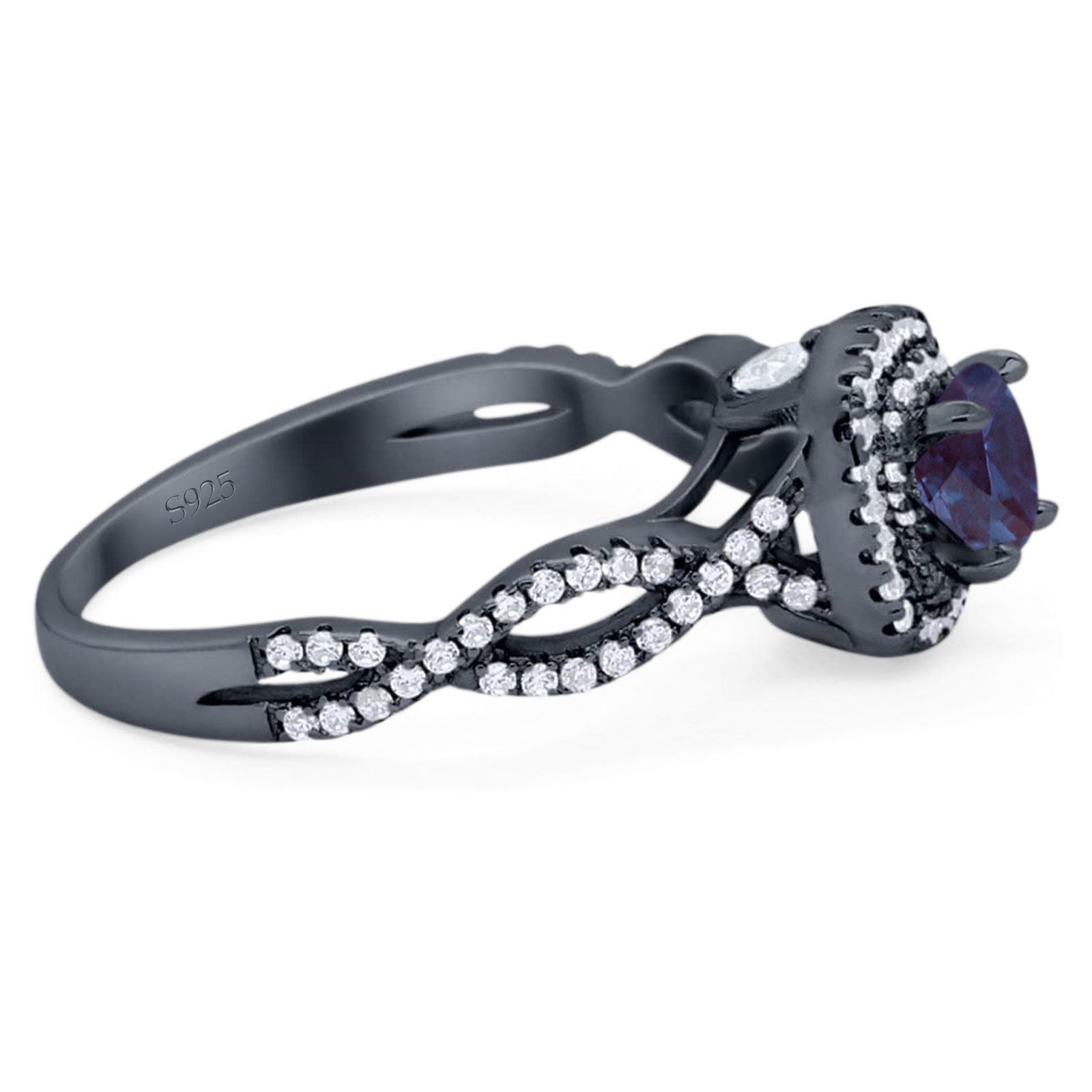 Art Deco Round Lab Alexandrite Infinity Shank Twisted Ring 925 Sterling Silver