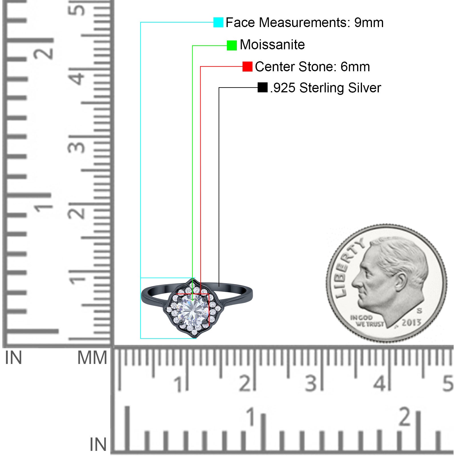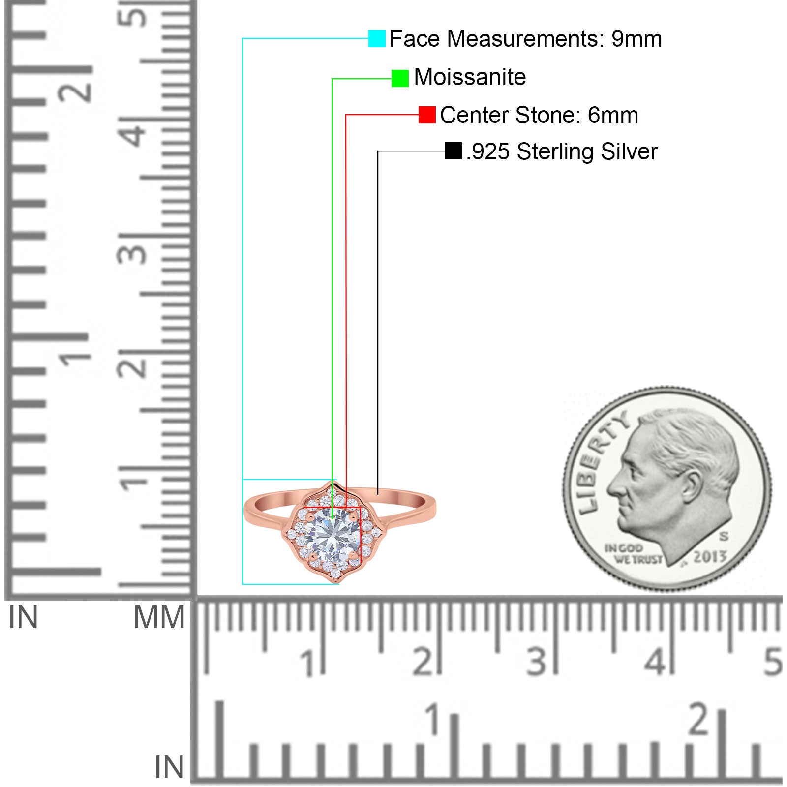 Art Deco Round Moissanite Flower Ring 925 Sterling Silver