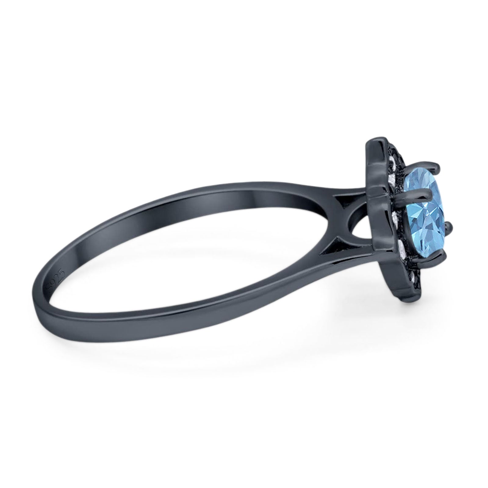 CZ & Blue Sapphire CZ Black Tone Silver
