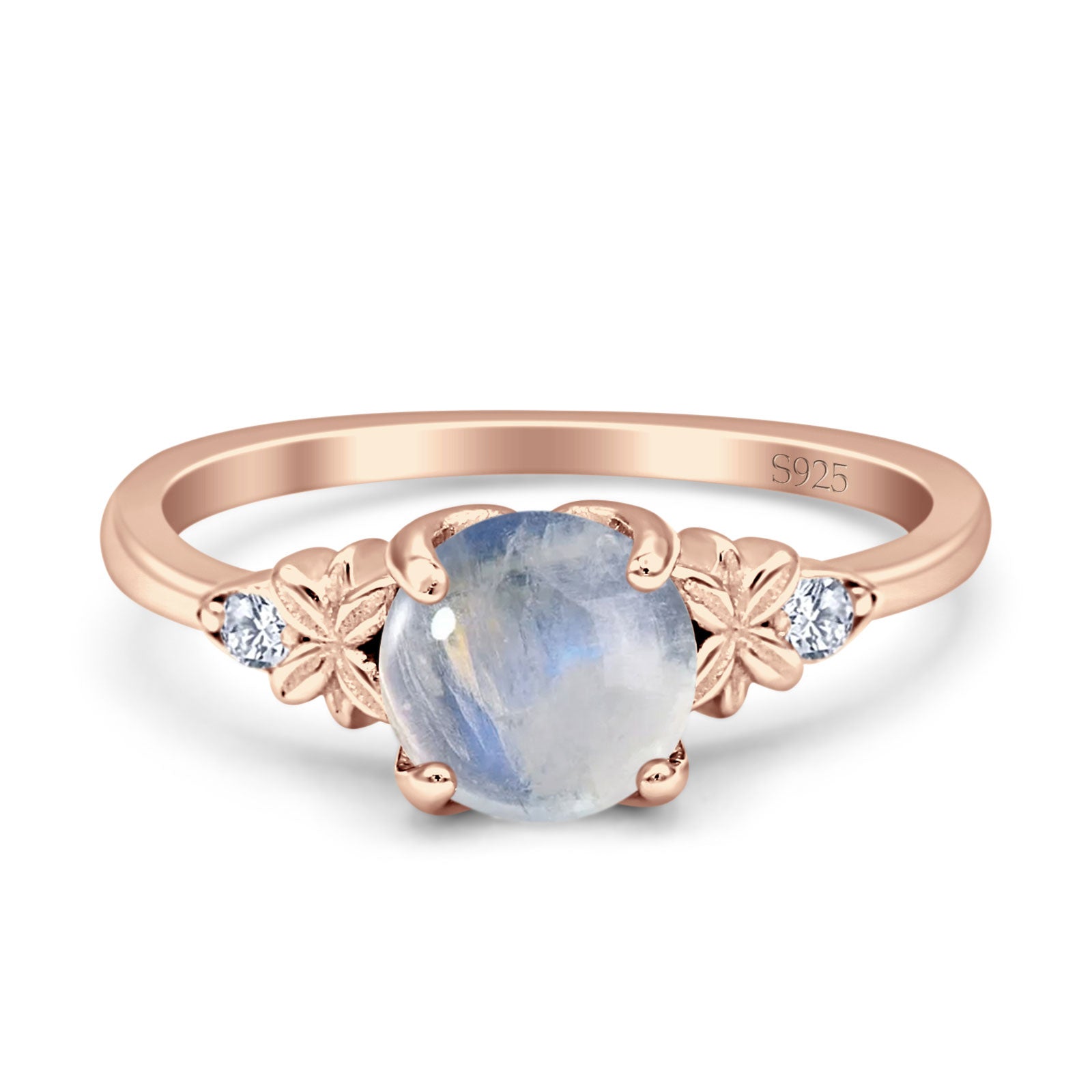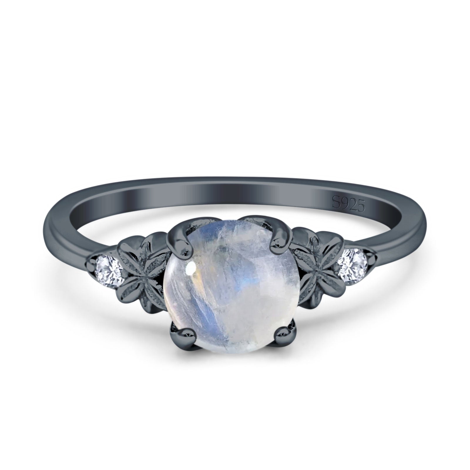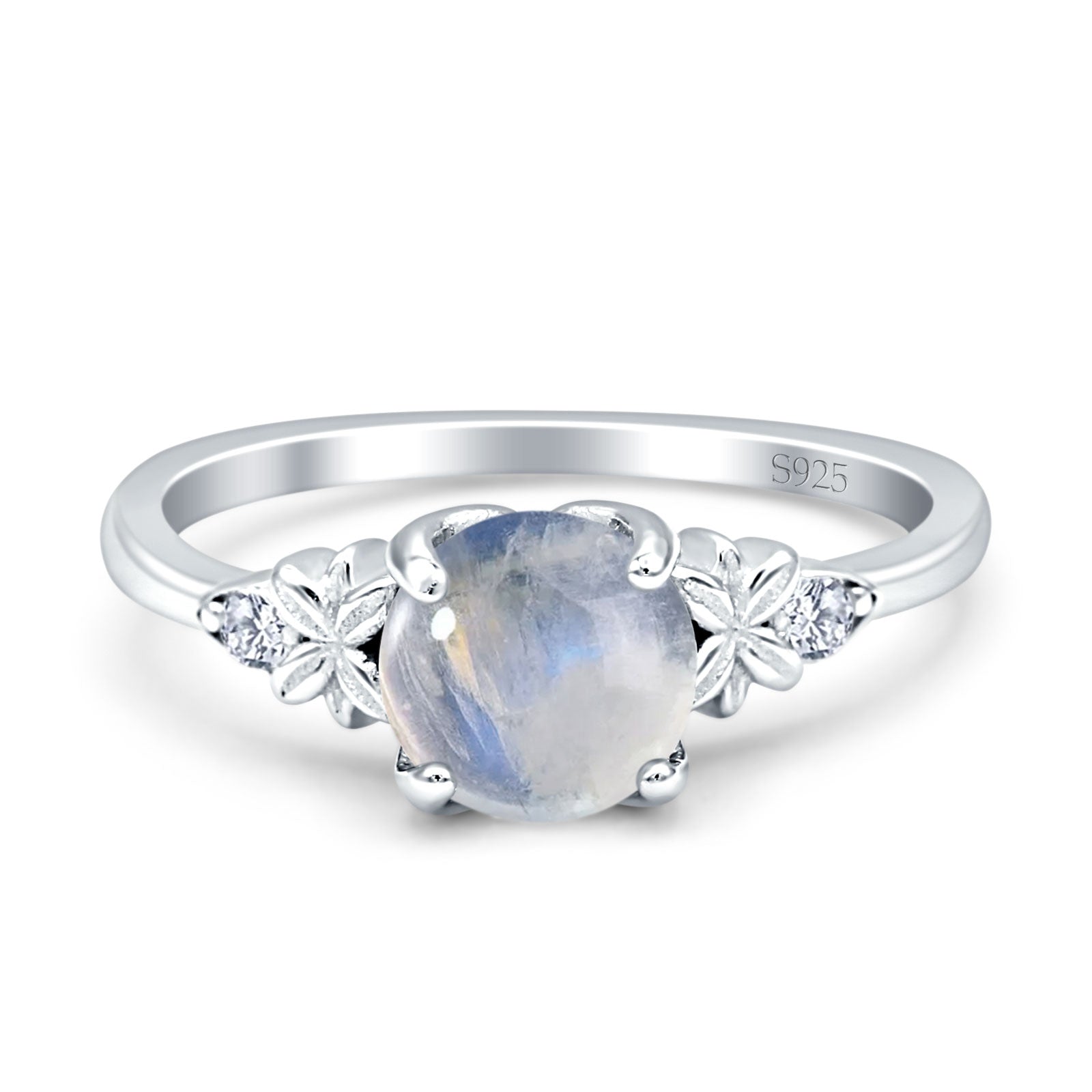 Art Deco Round Natural Moonstone Floral Ring 925 Sterling Silver