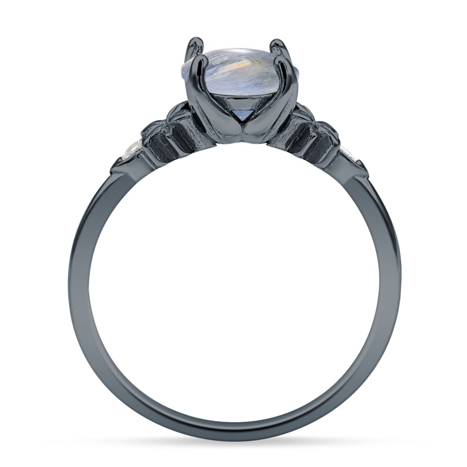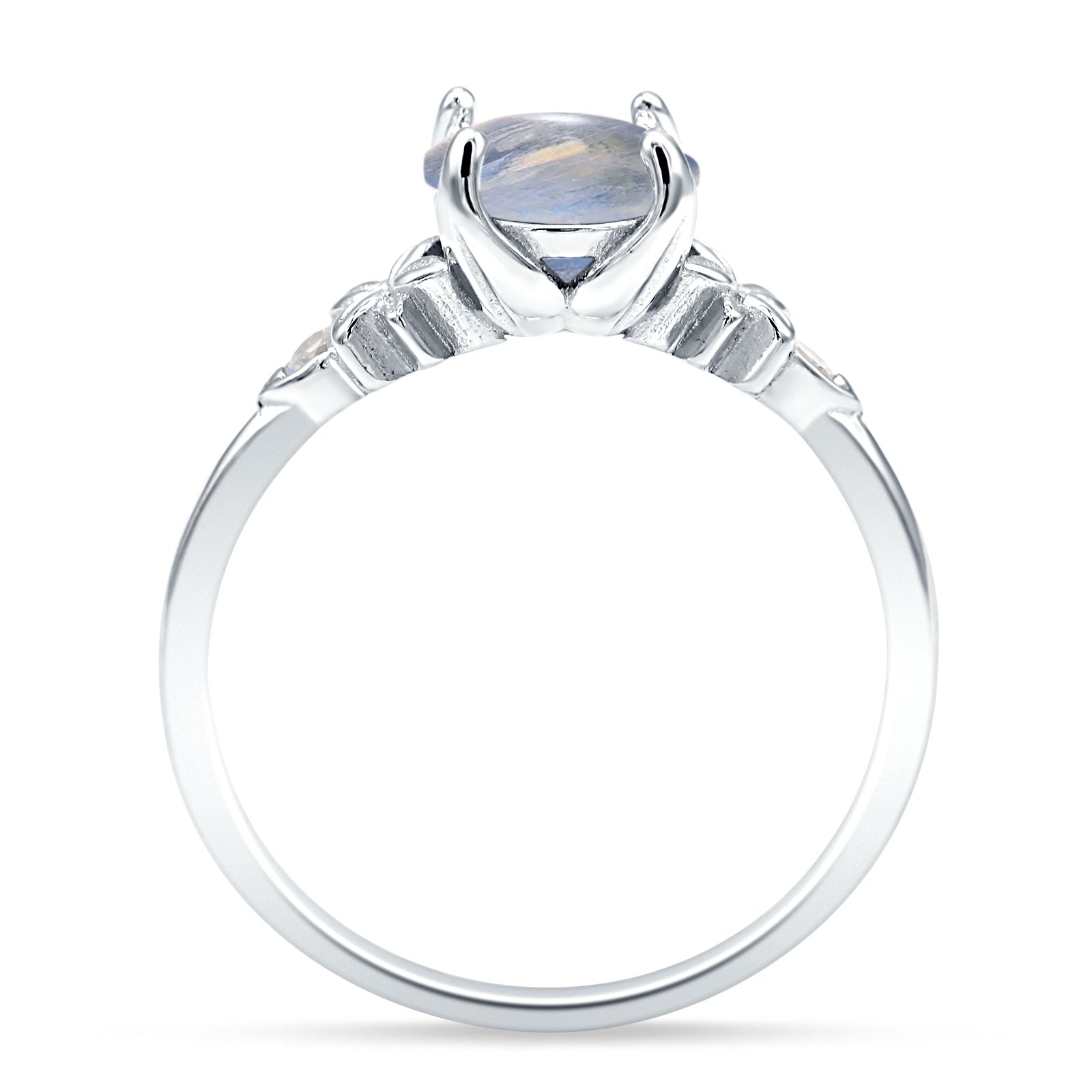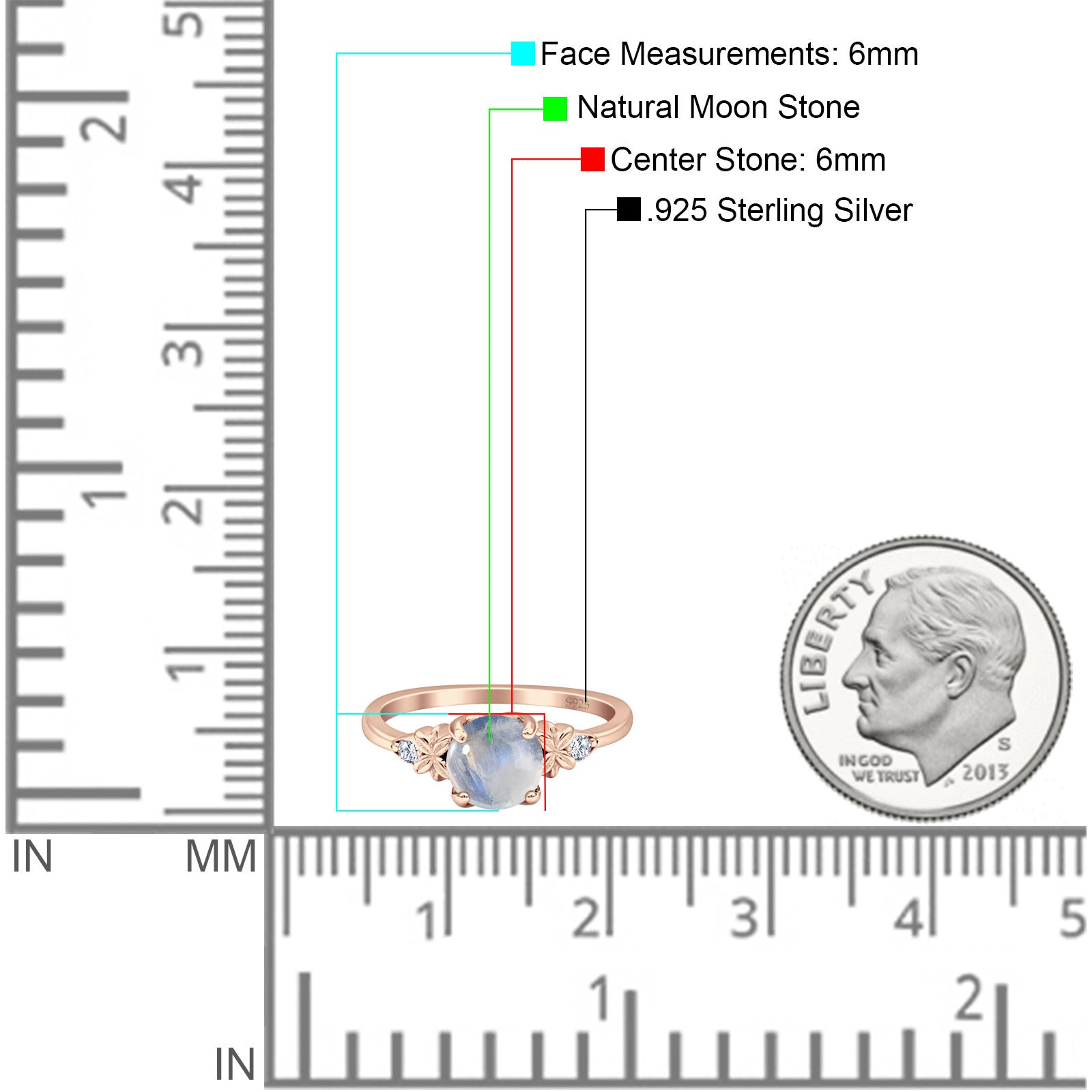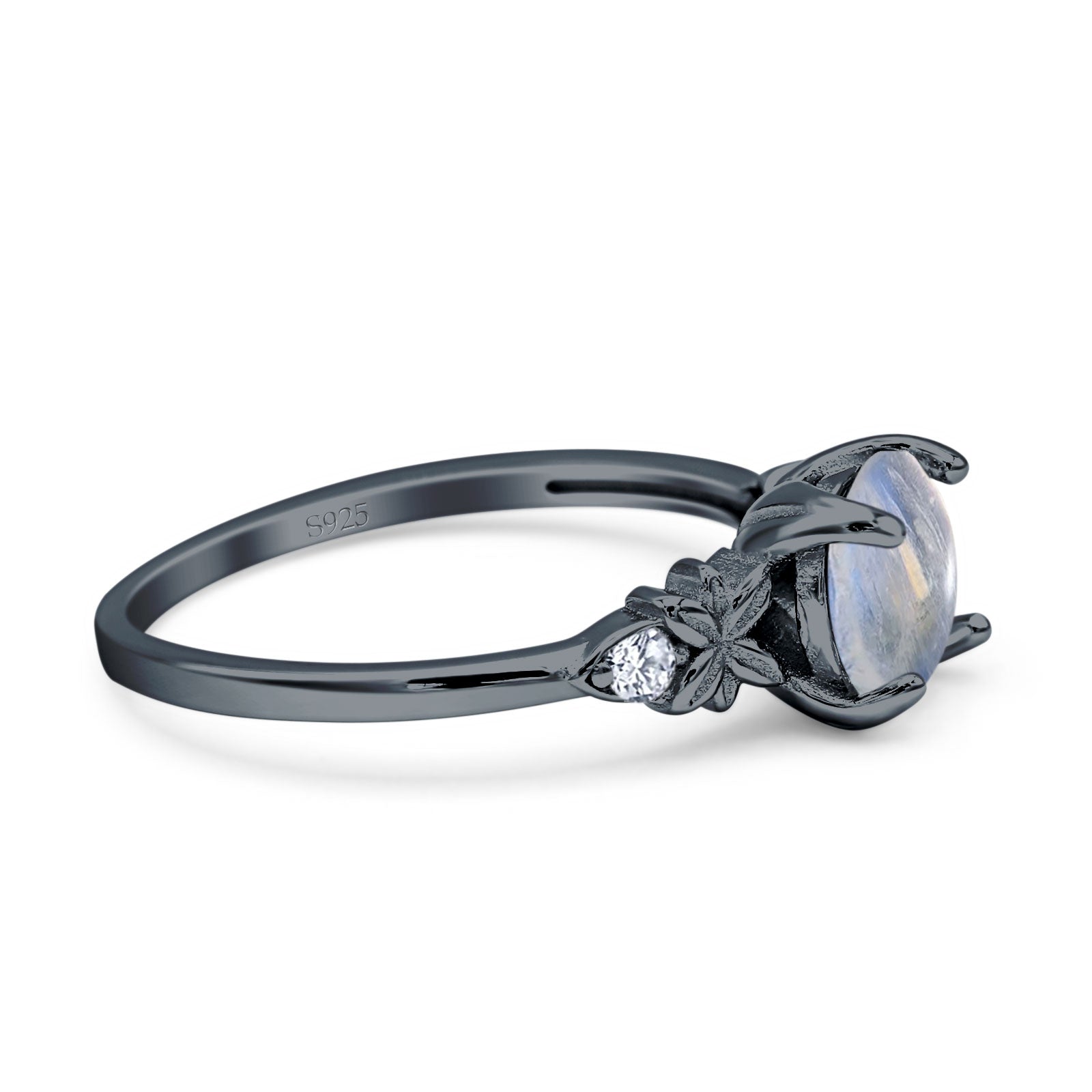 Art Deco Round Natural Moonstone Floral Ring 925 Sterling Silver