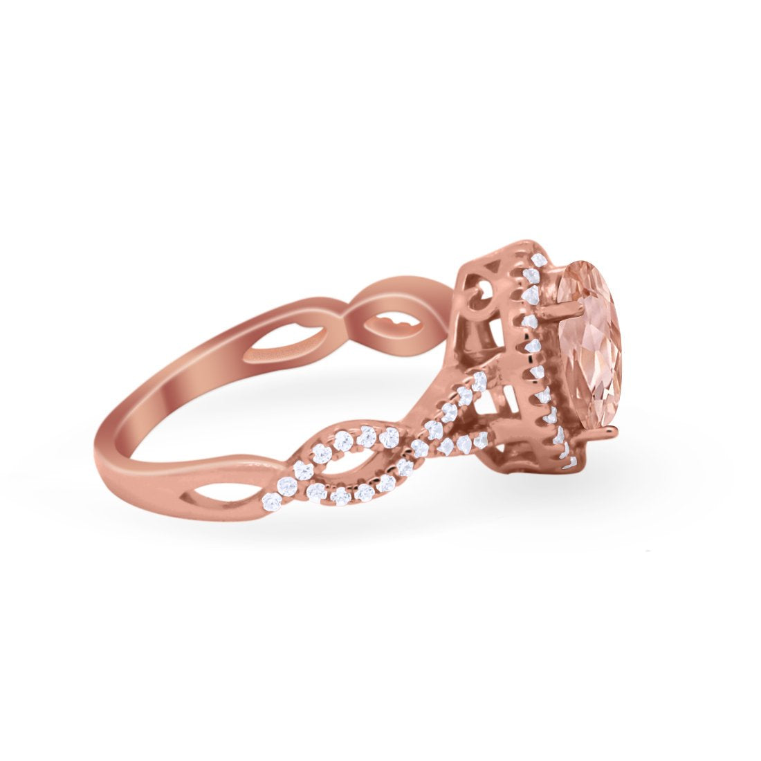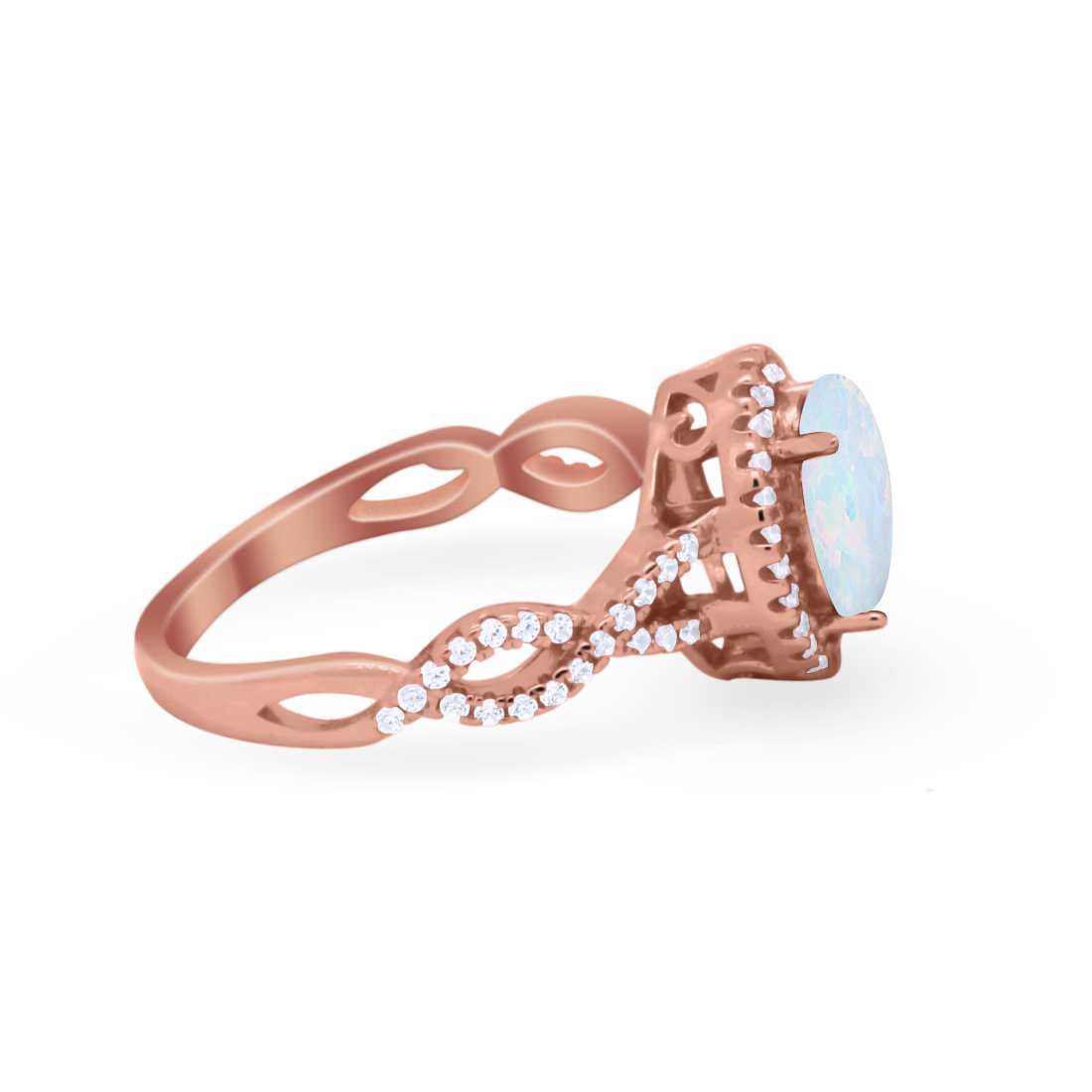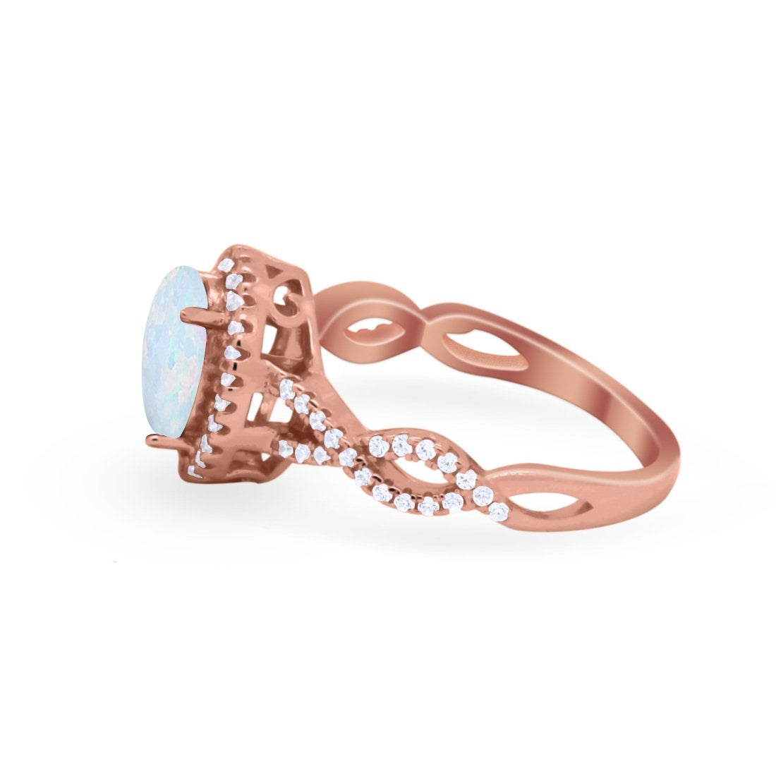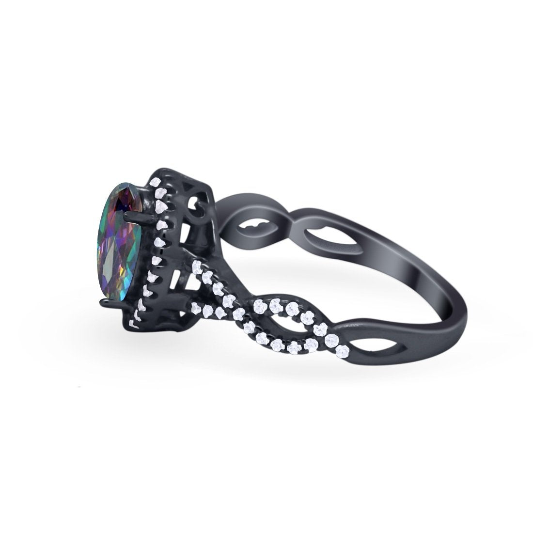 Art Deco Twisted Shank Wedding Ring Oval Round Cubic Zirconia 925 Sterling Silver