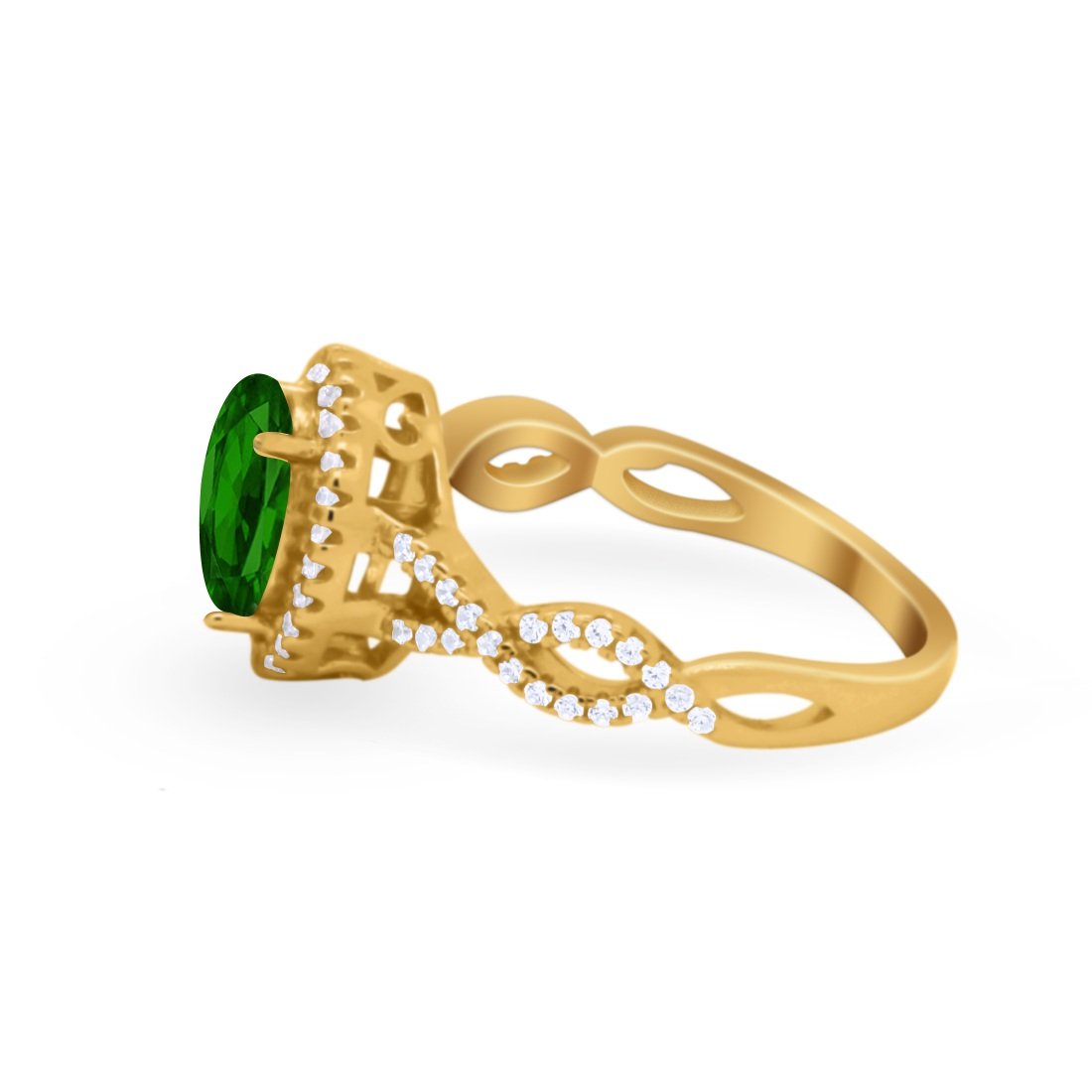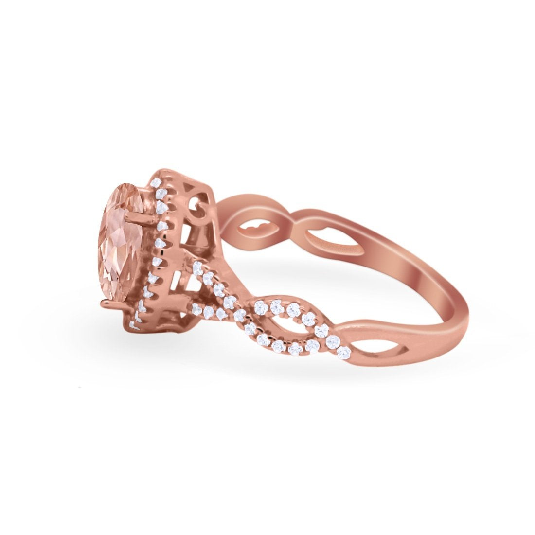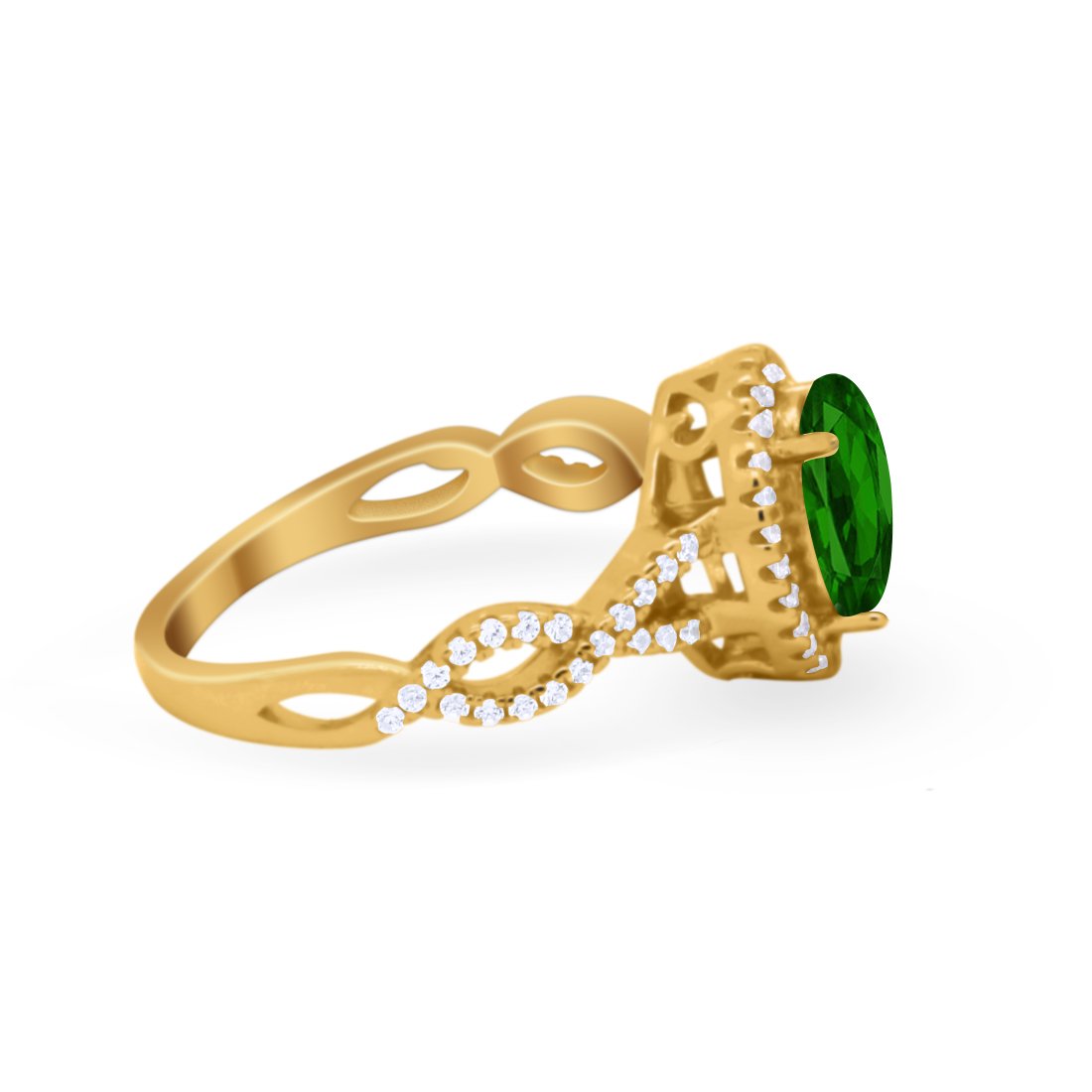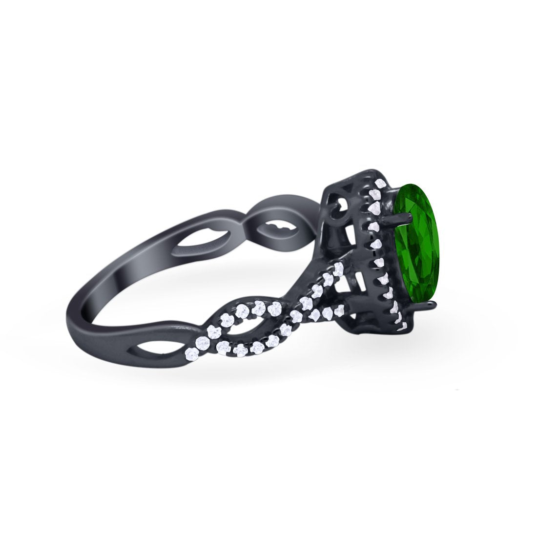 Art Deco Twisted Shank Wedding Ring Oval Round Cubic Zirconia 925 Sterling Silver