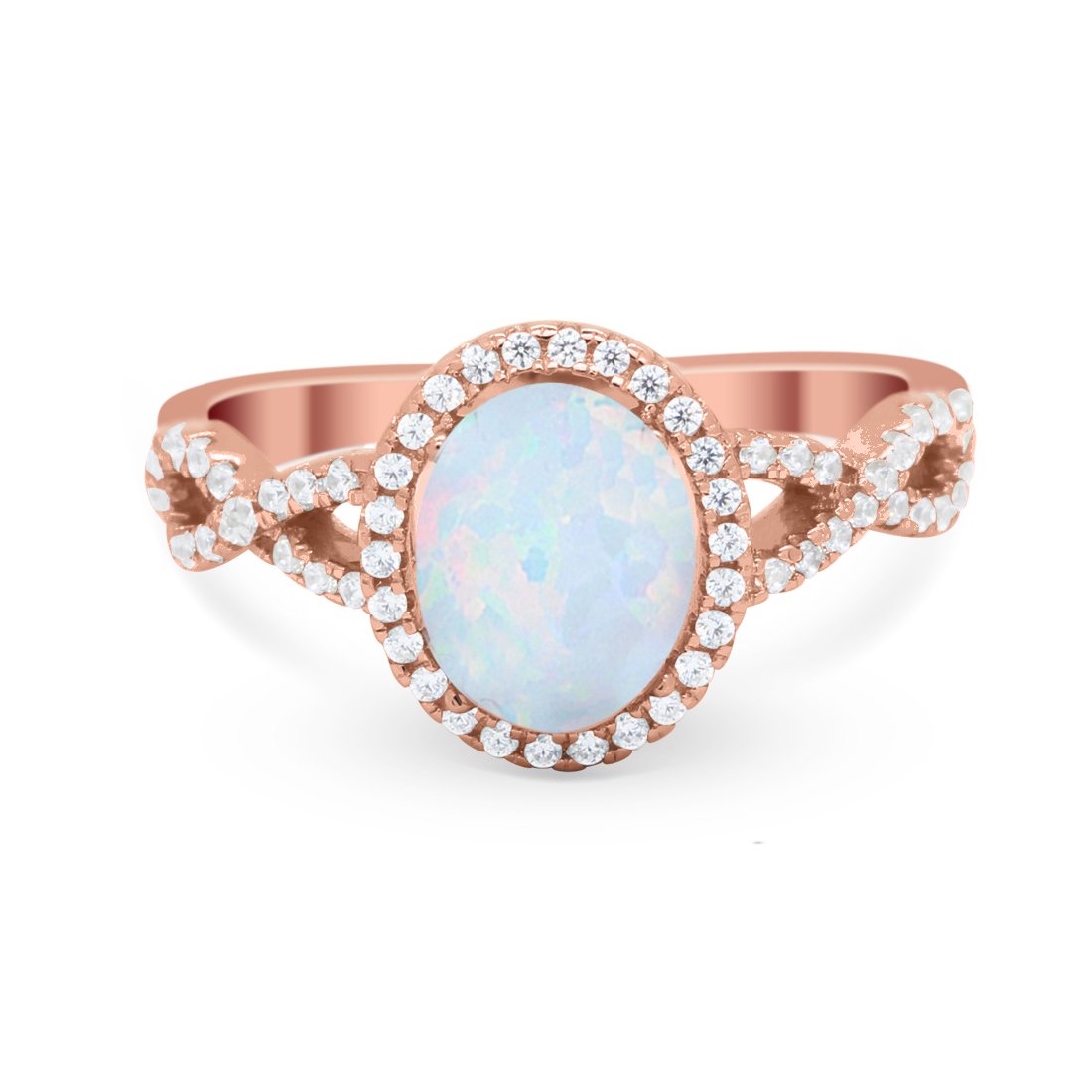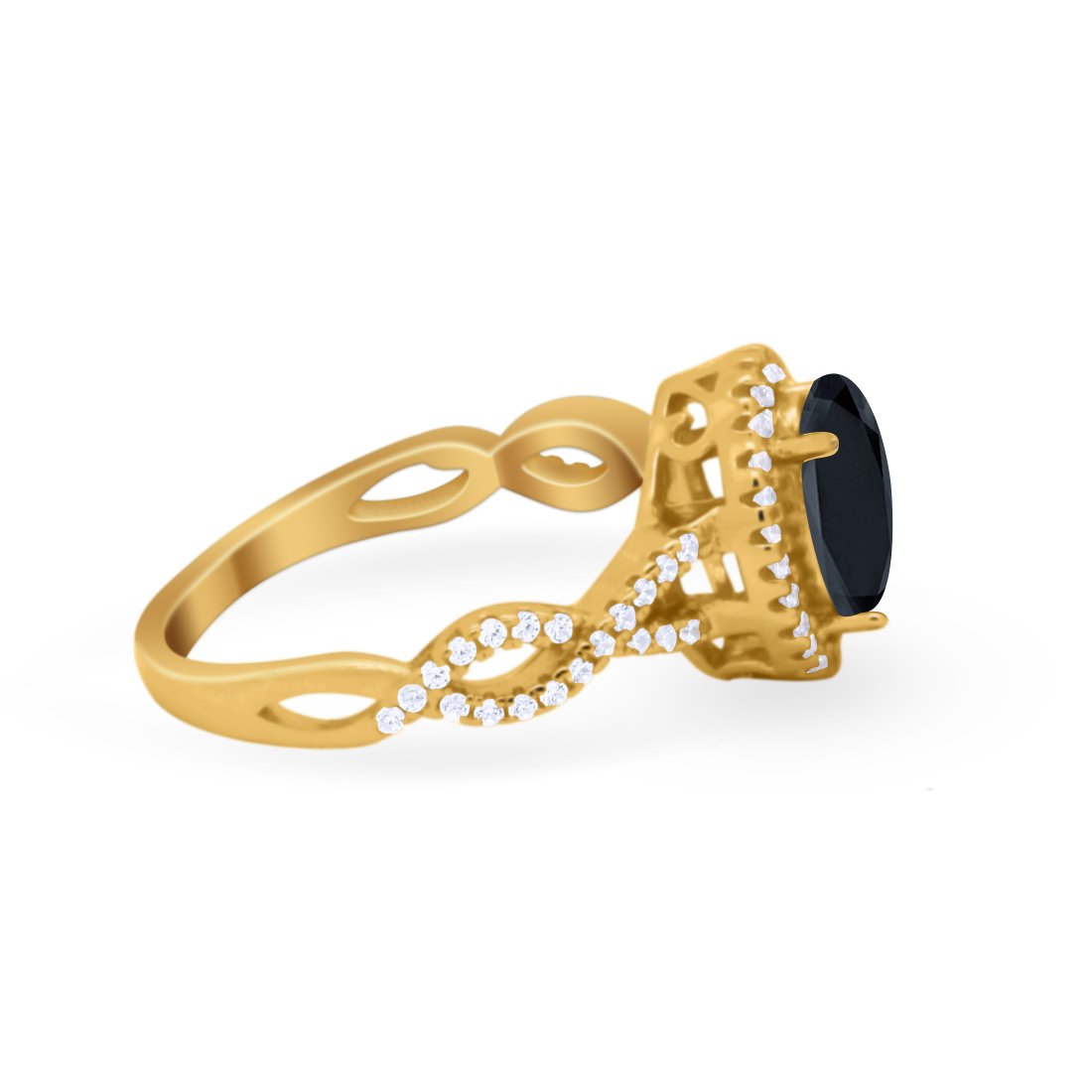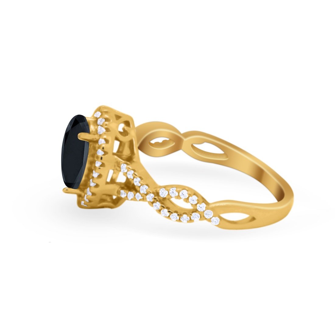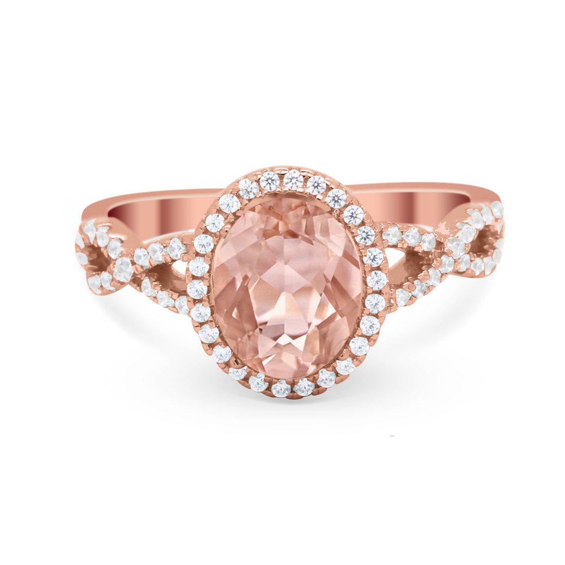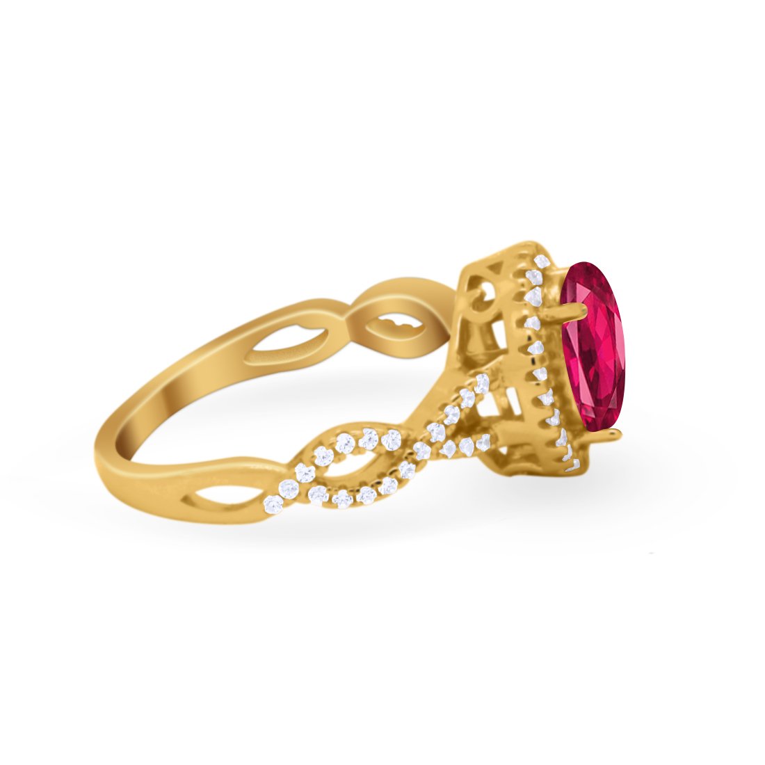 Art Deco Twisted Shank Wedding Ring Oval Round Cubic Zirconia 925 Sterling Silver