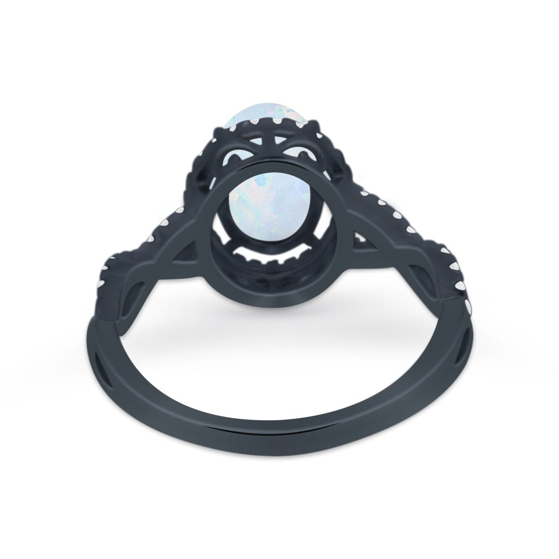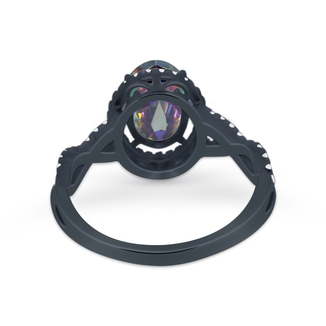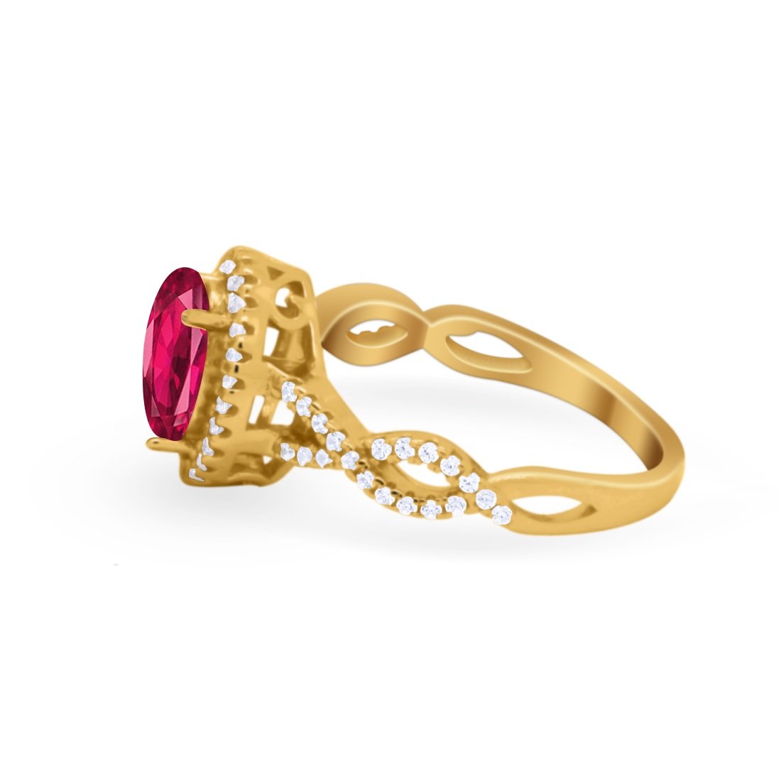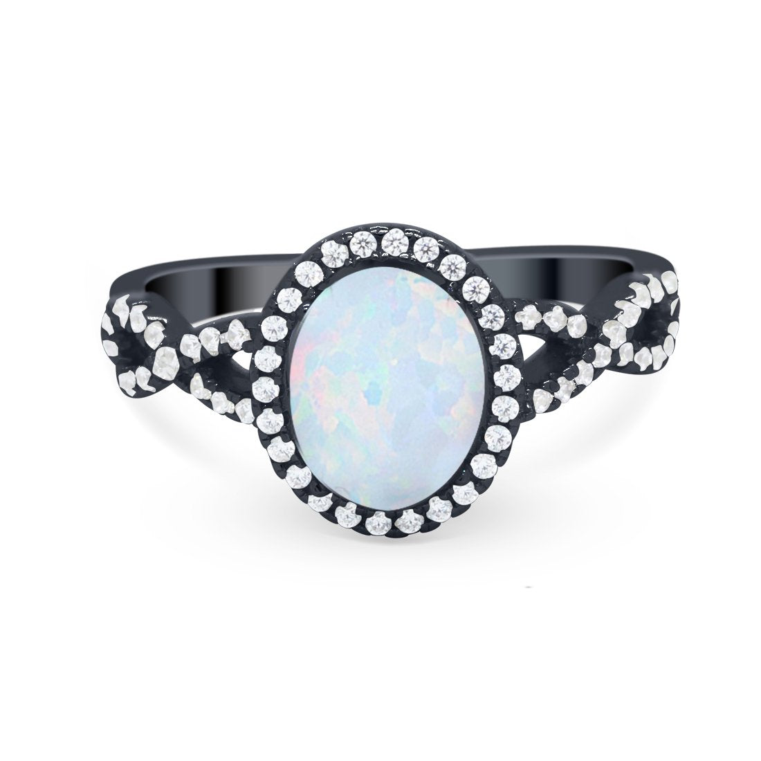 Art Deco Twisted Shank Wedding Ring Oval Round Cubic Zirconia 925 Sterling Silver
