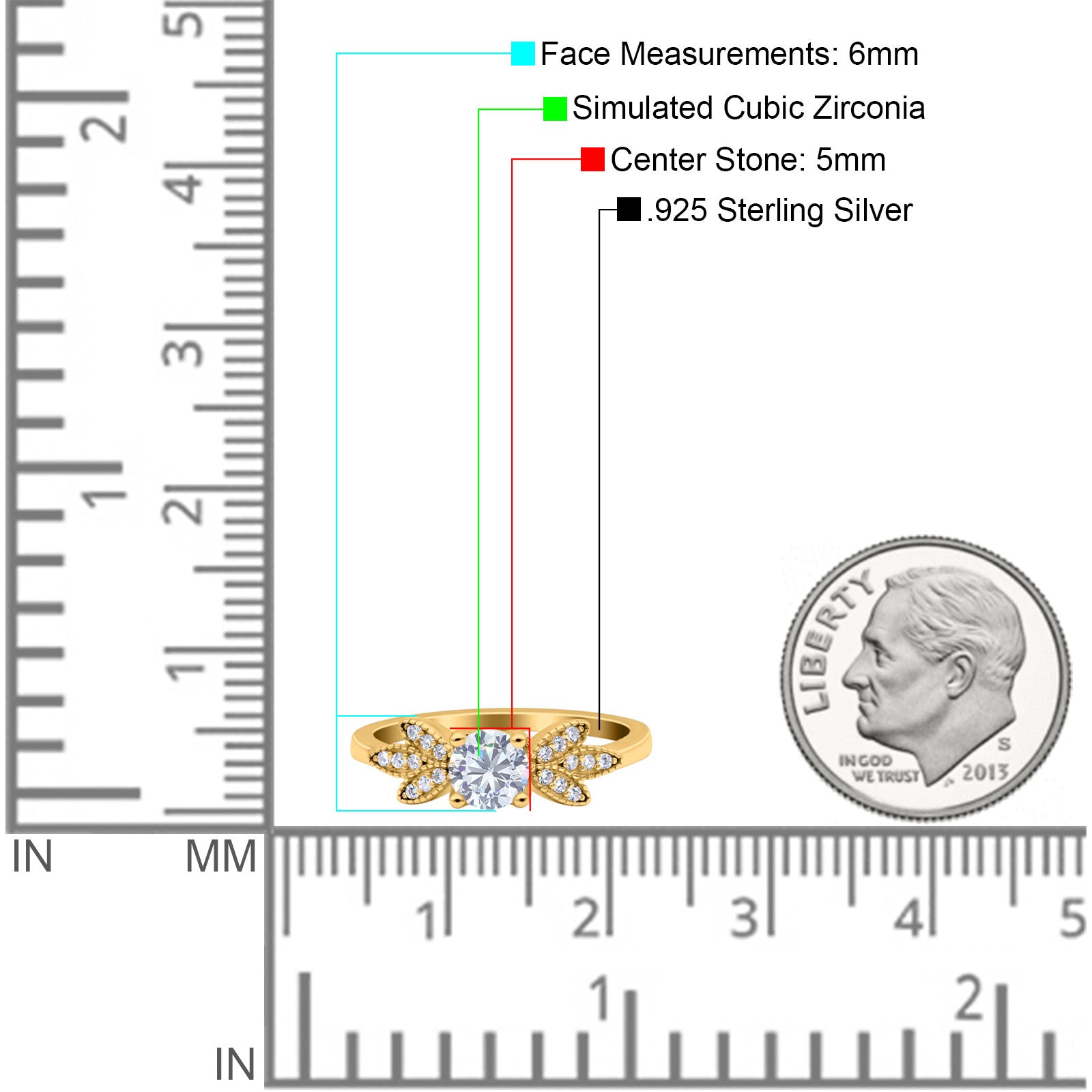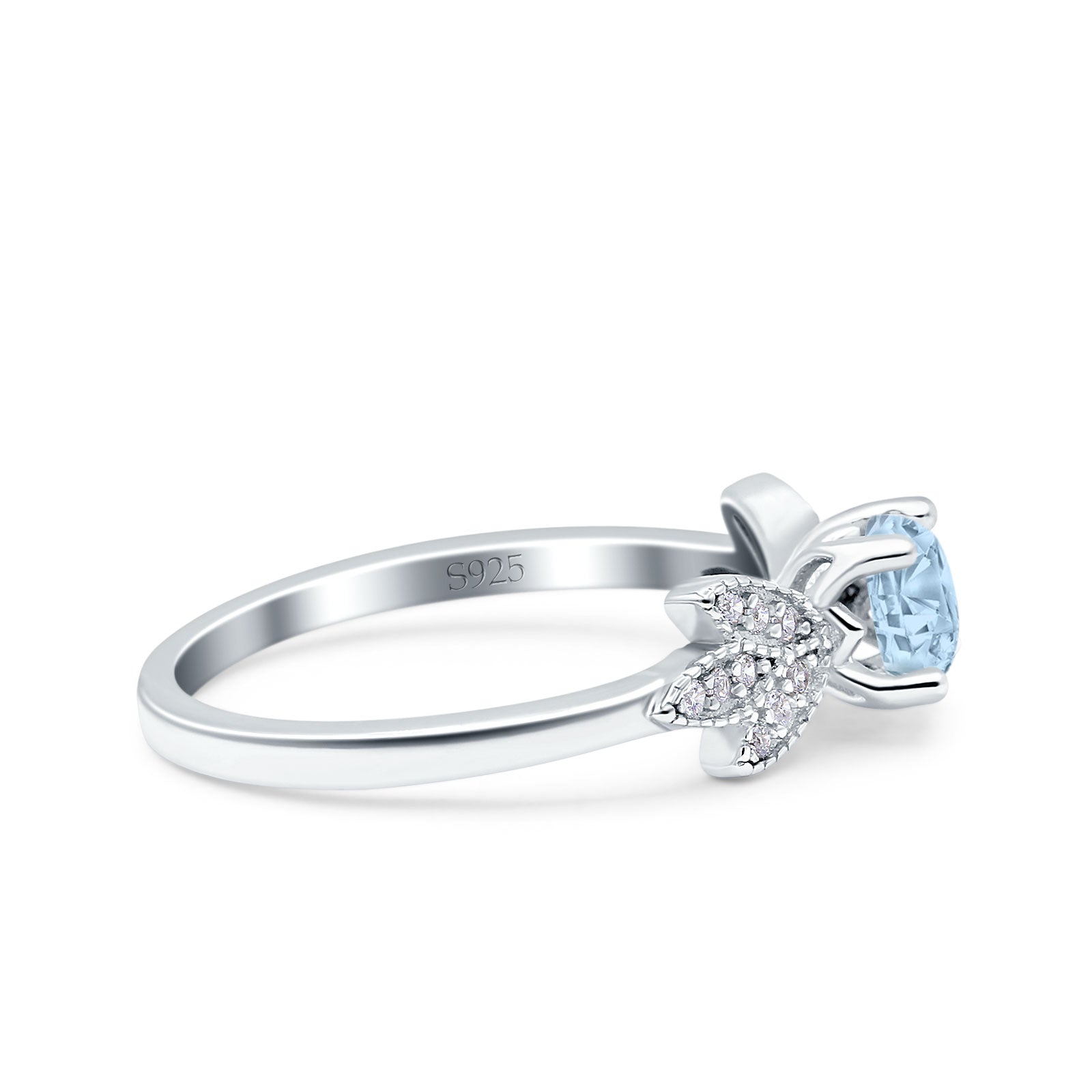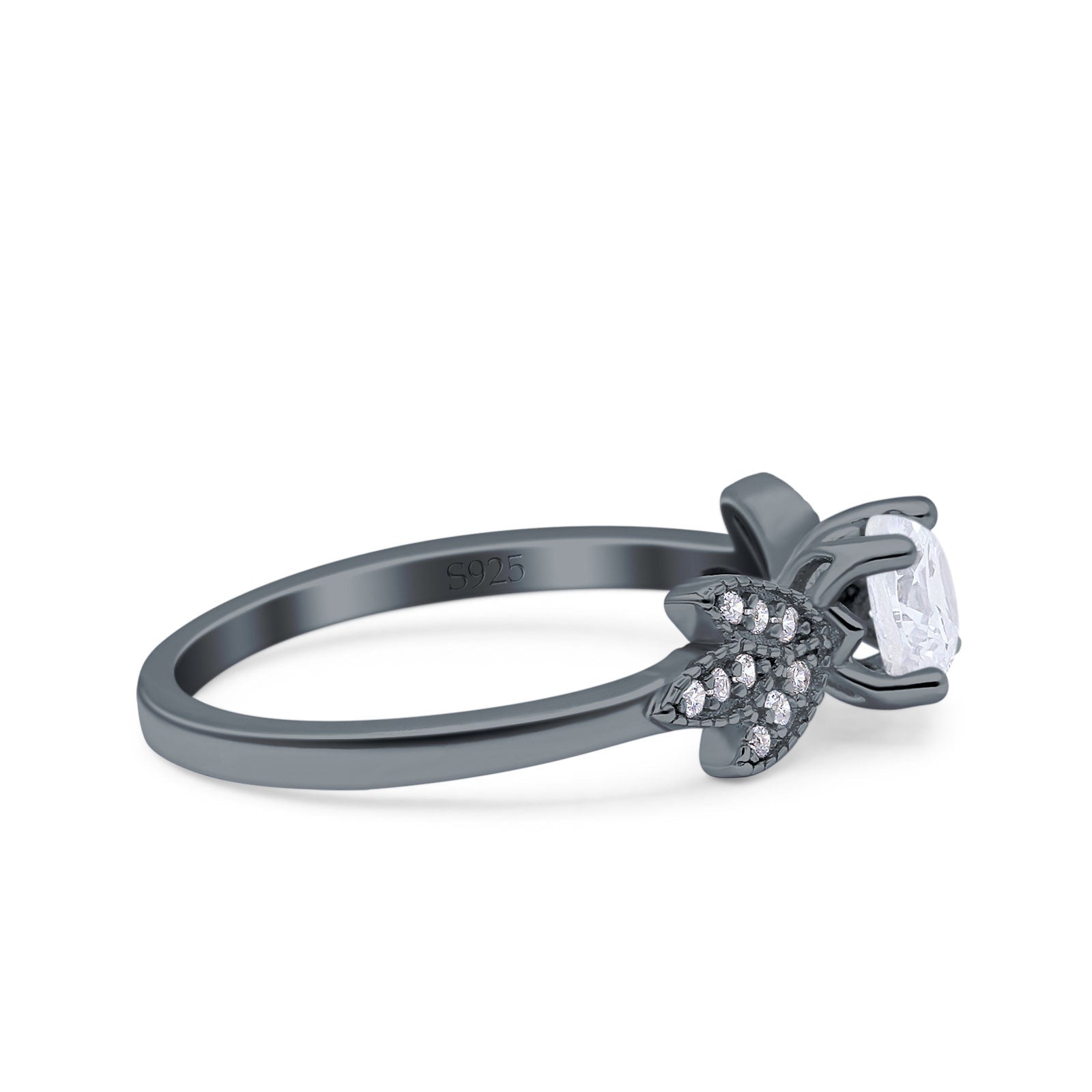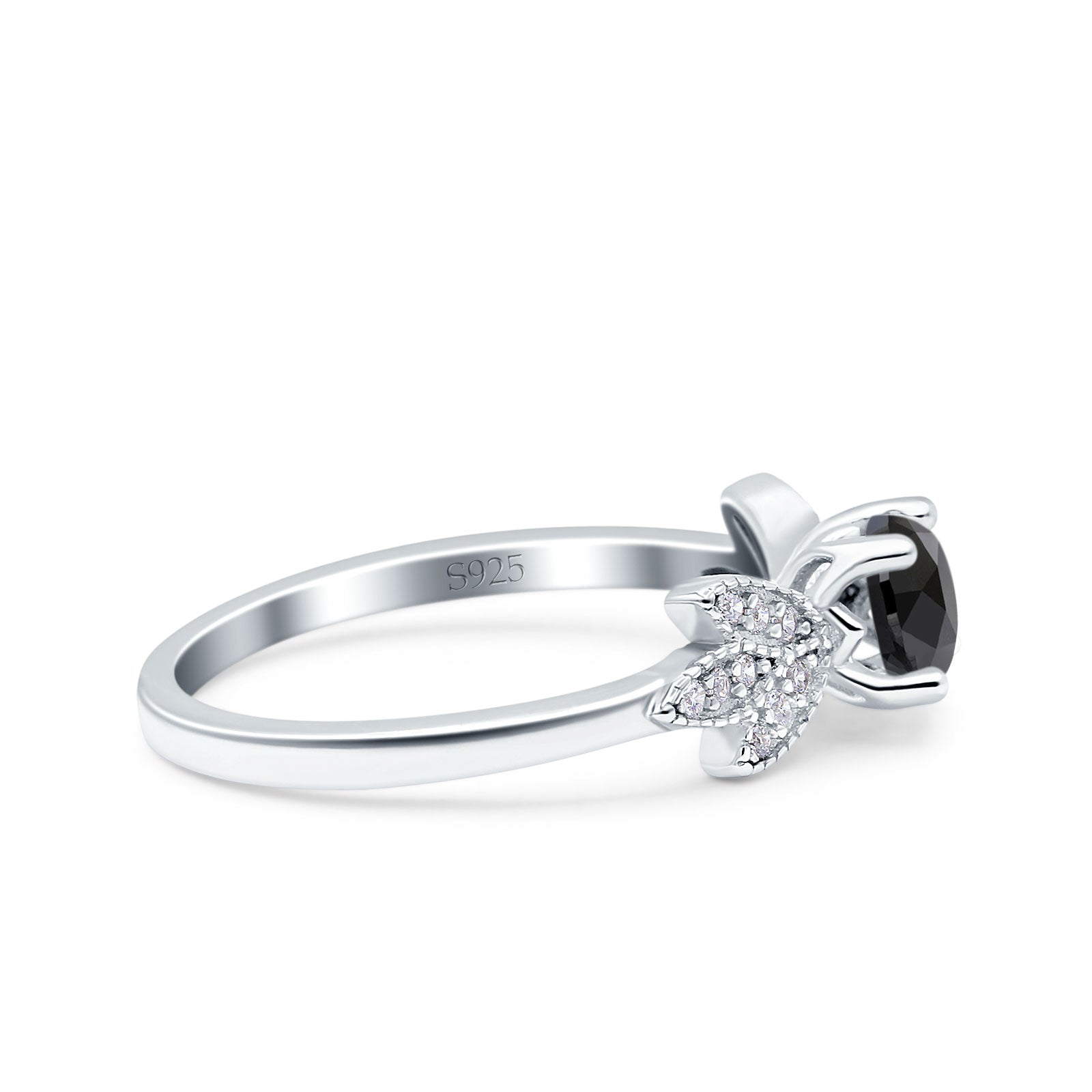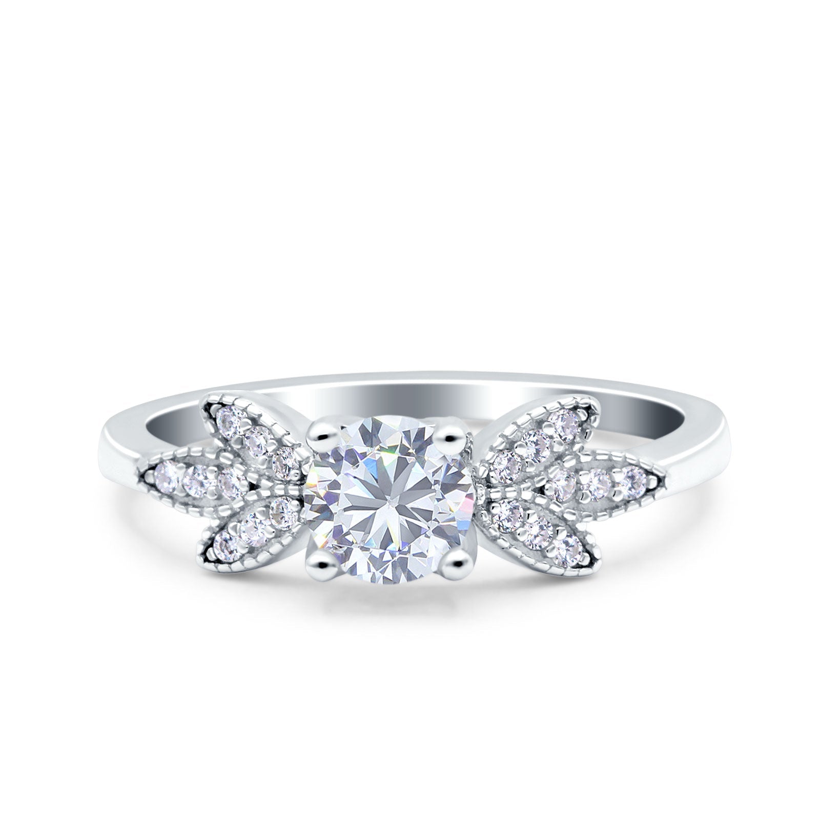 Art Deco Wedding Bridal Ring Leaf Dainty Round Simulated Cubic Zirconia 925 Sterling Silver