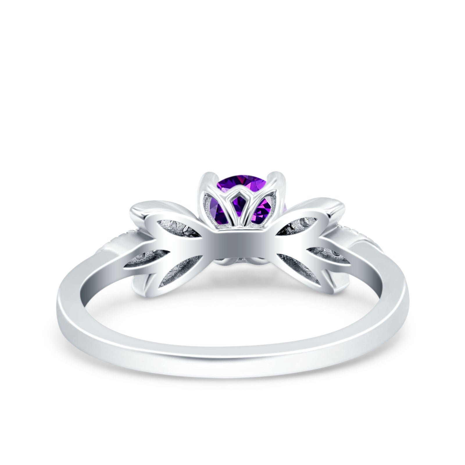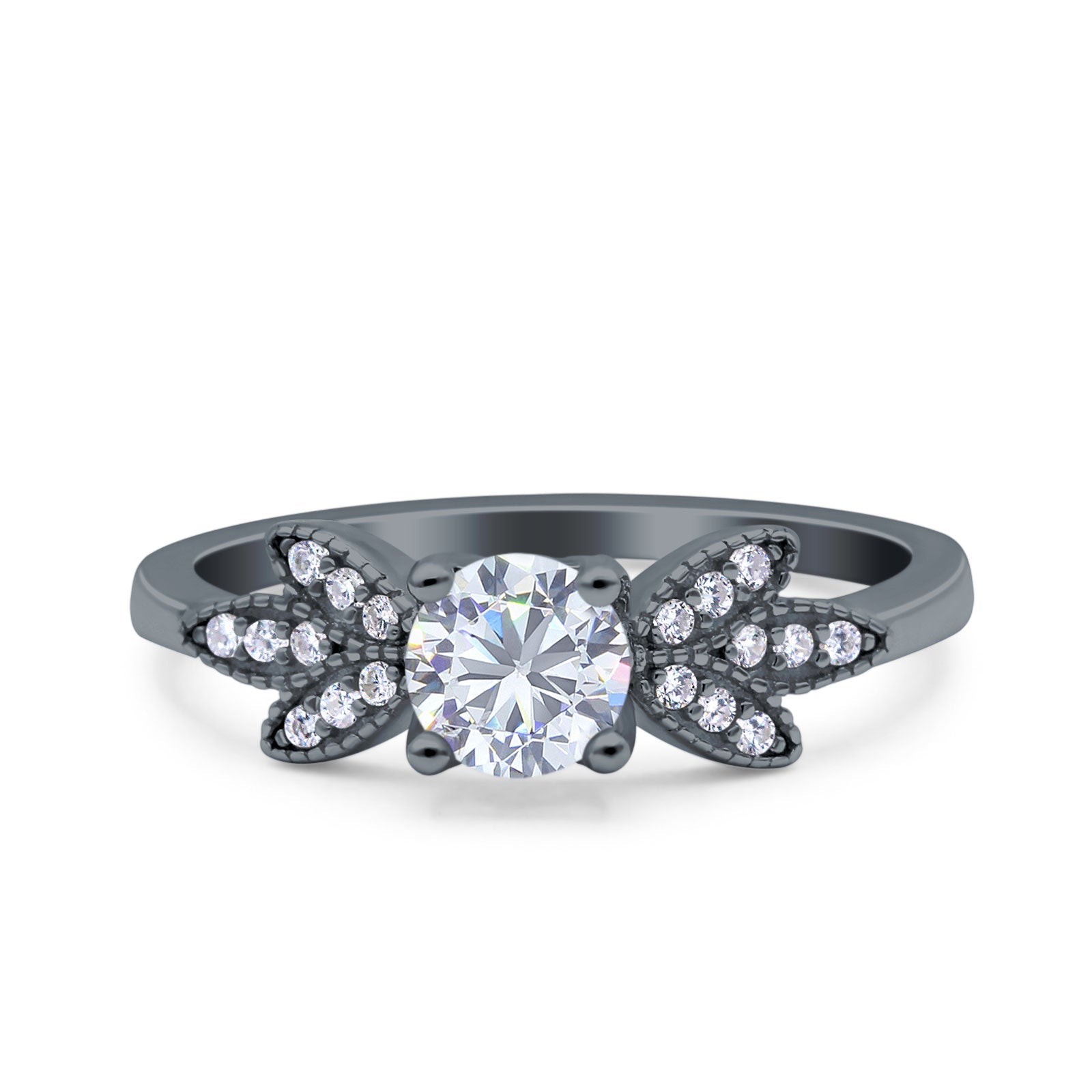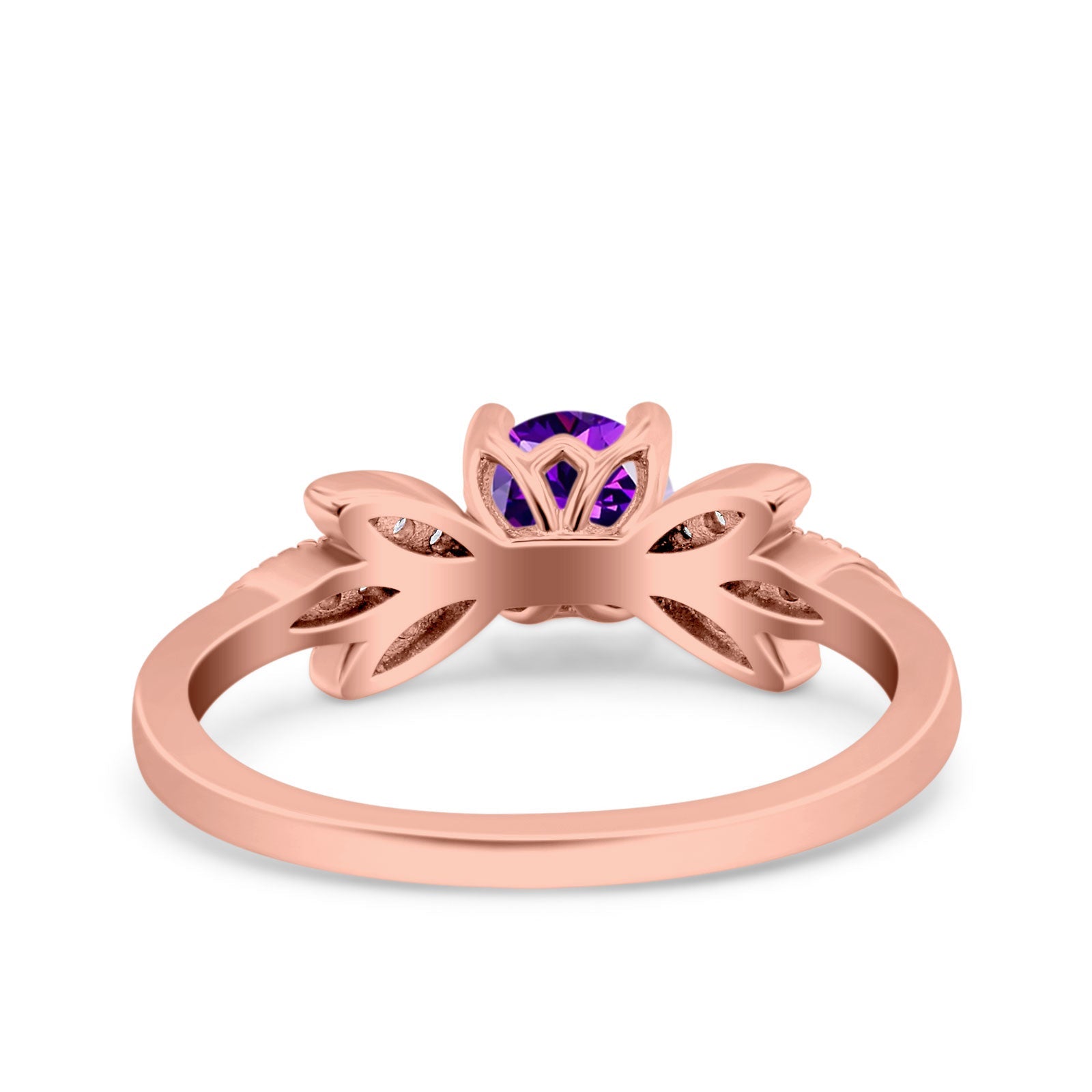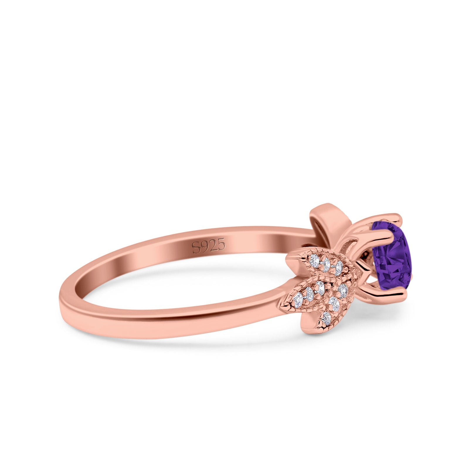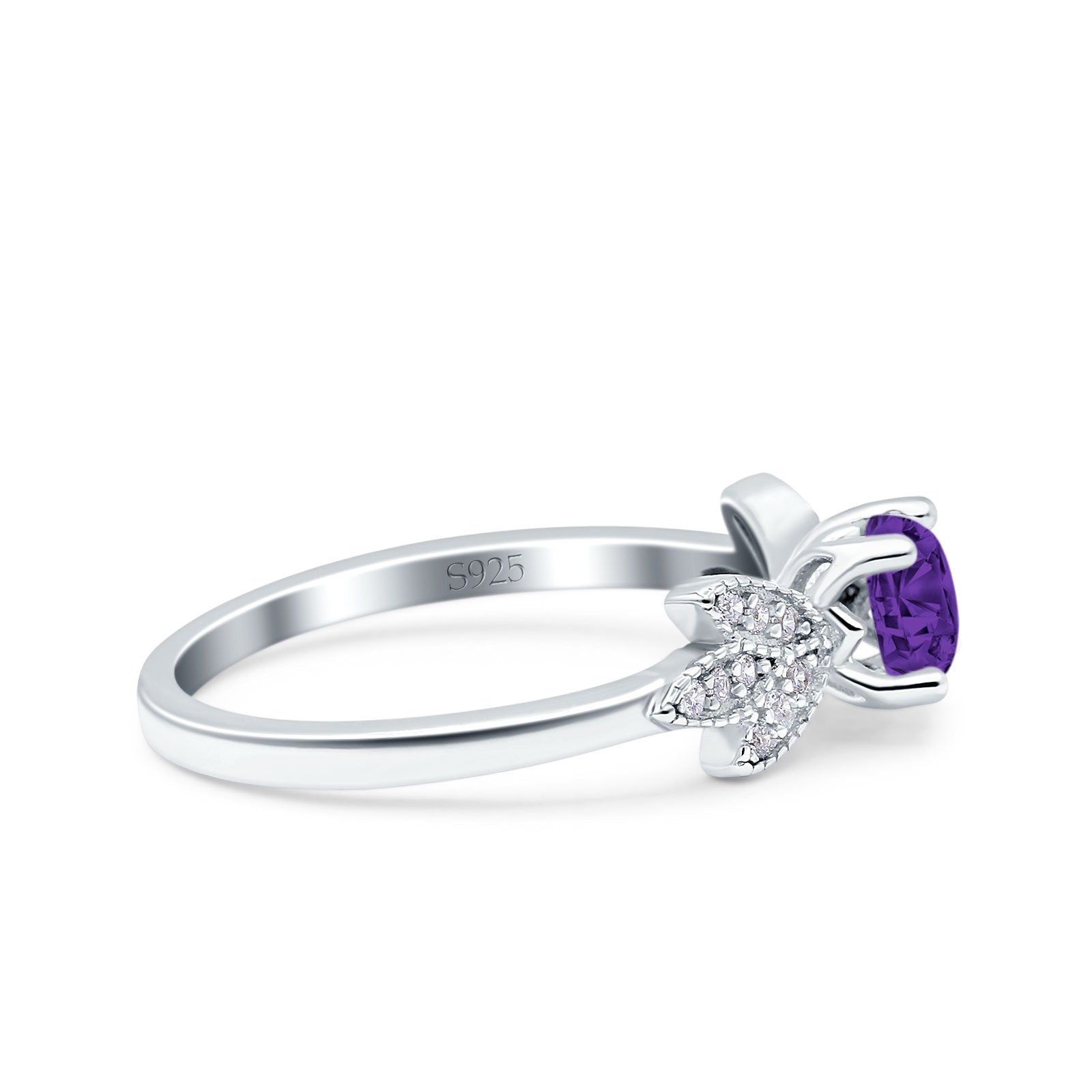 Art Deco Wedding Bridal Ring Leaf Dainty Round Simulated Cubic Zirconia 925 Sterling Silver