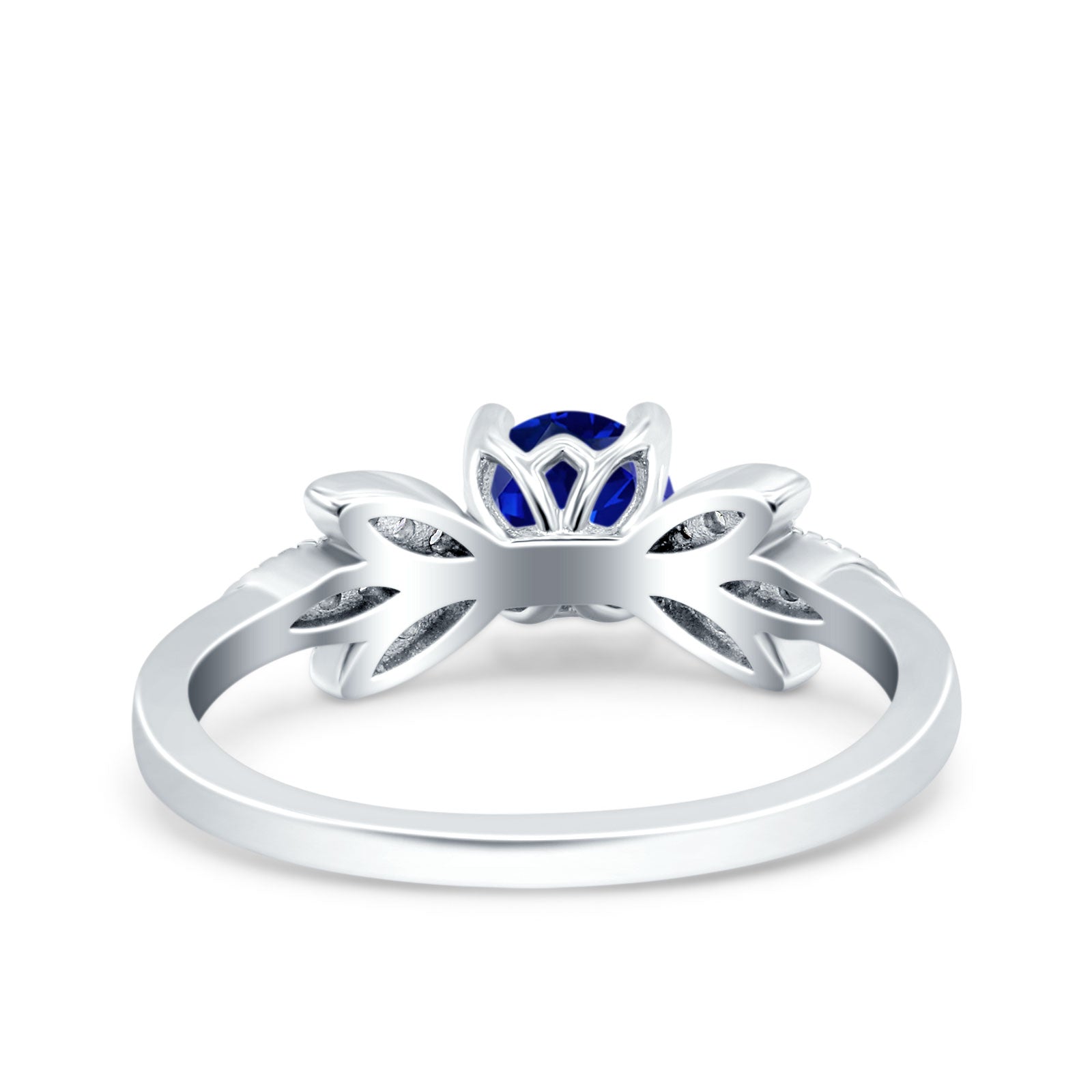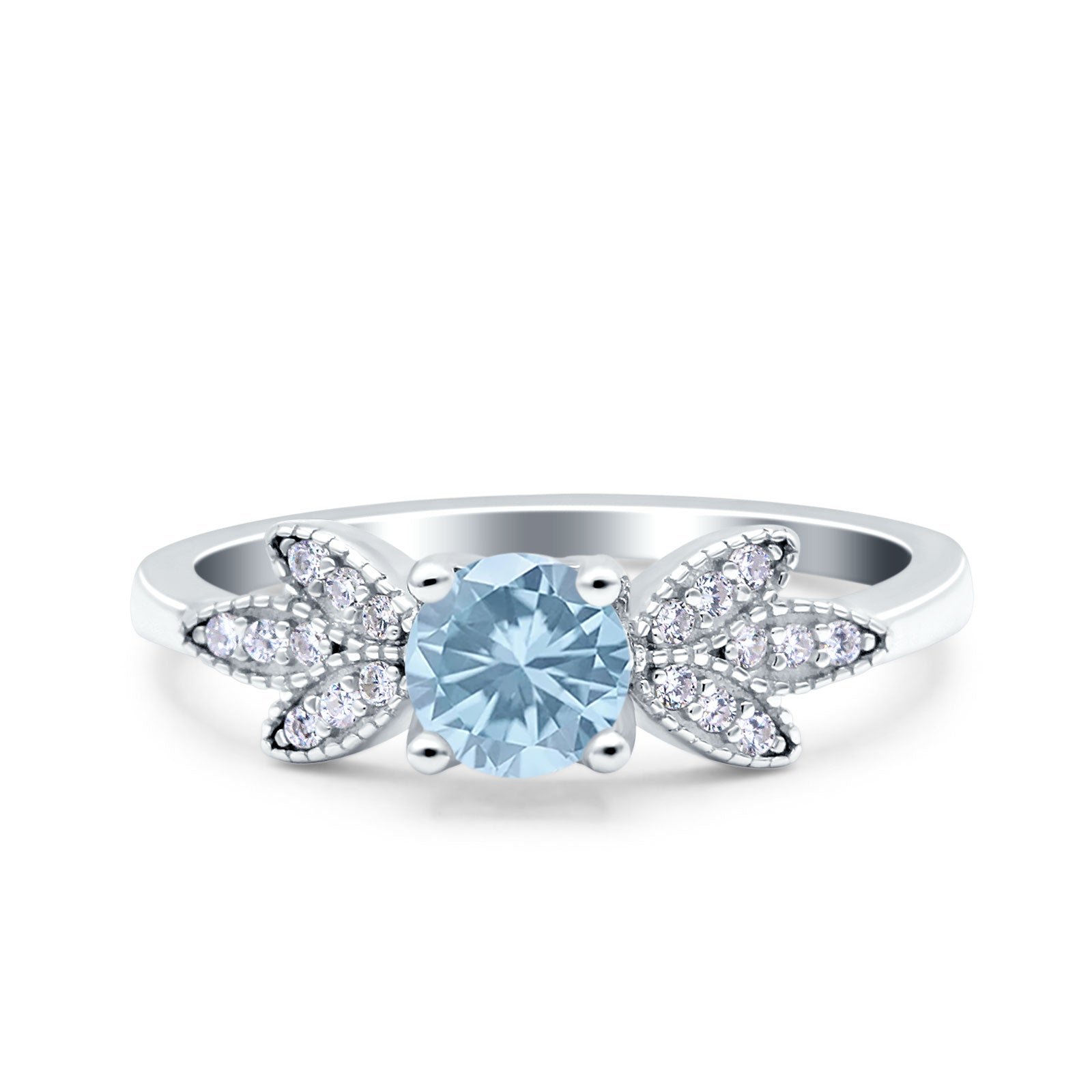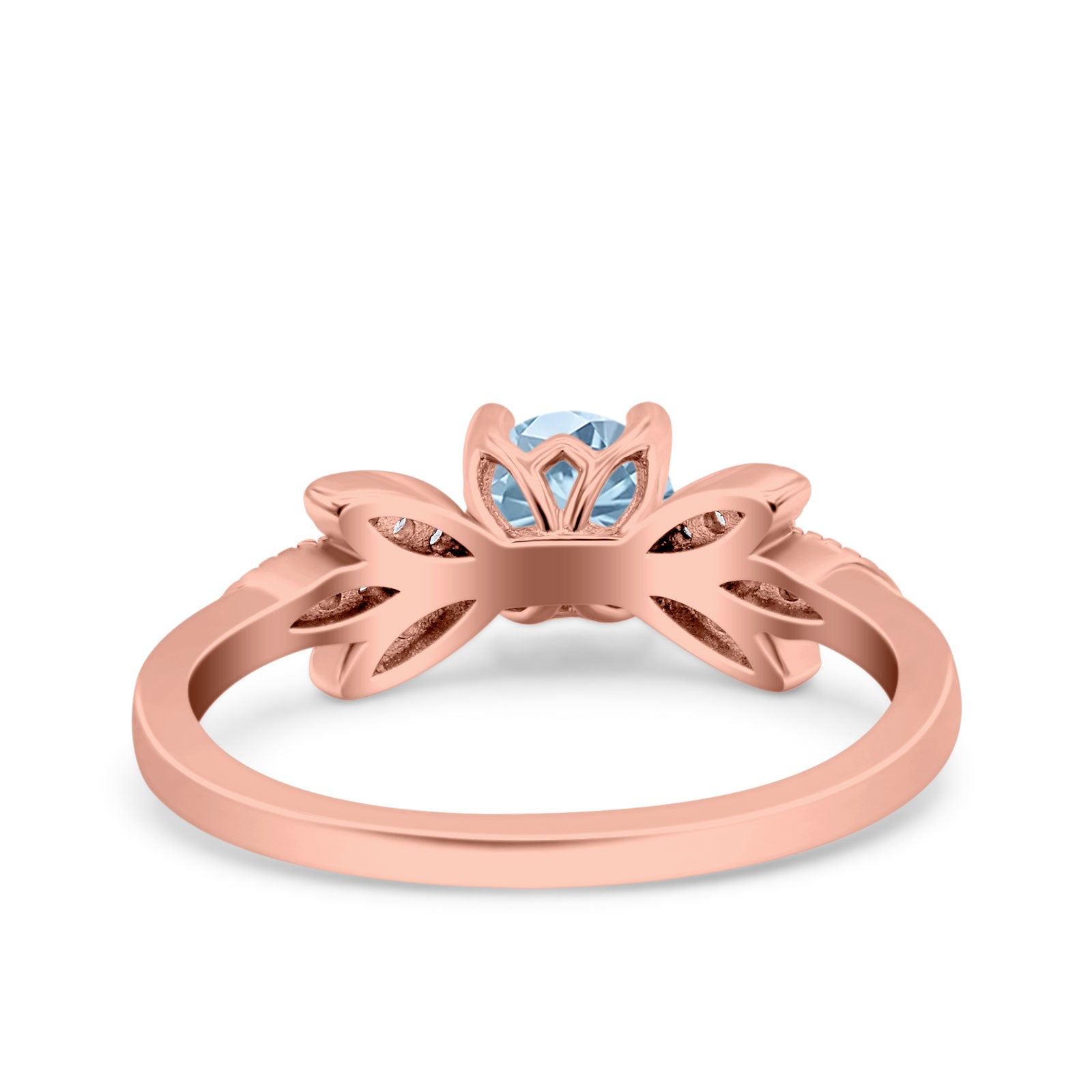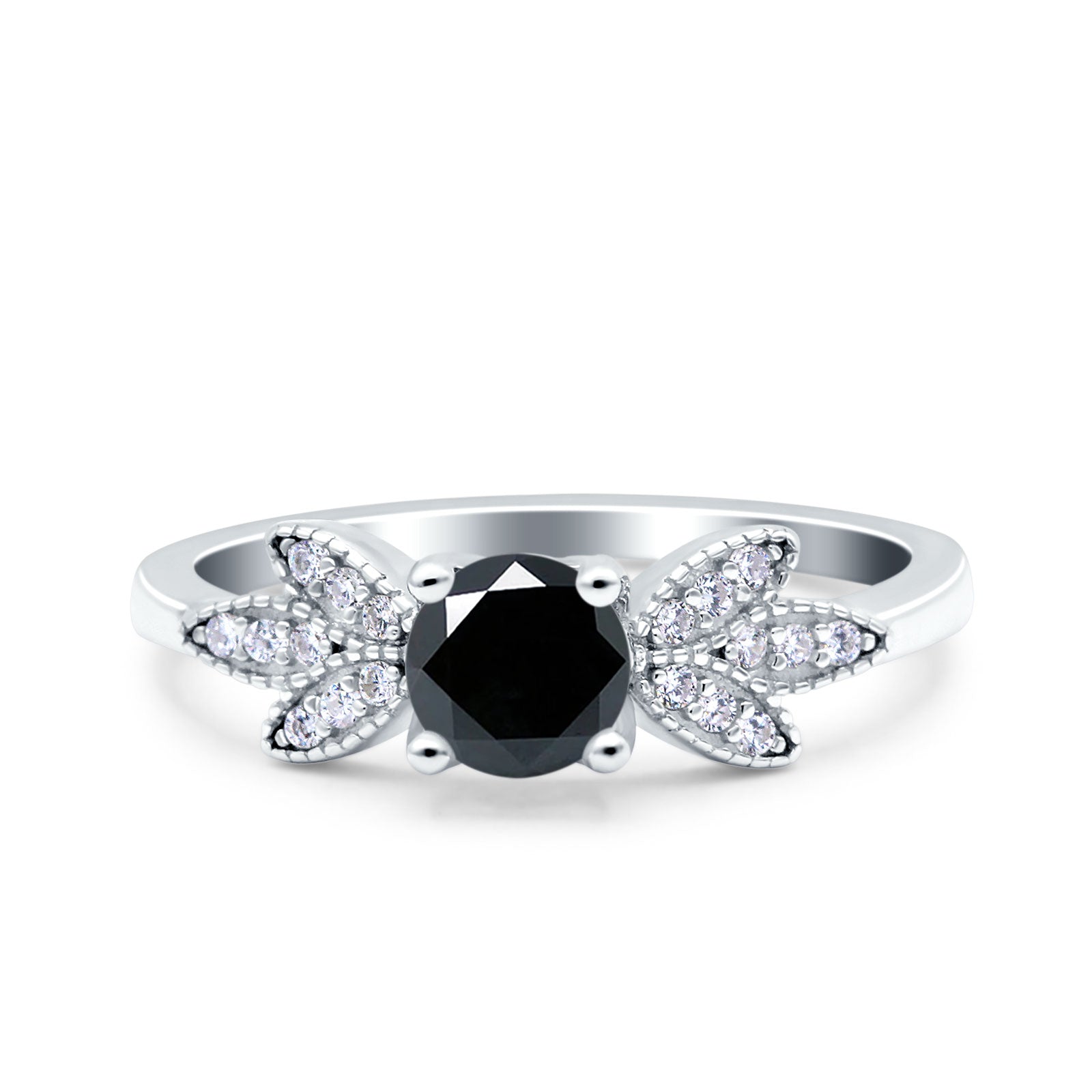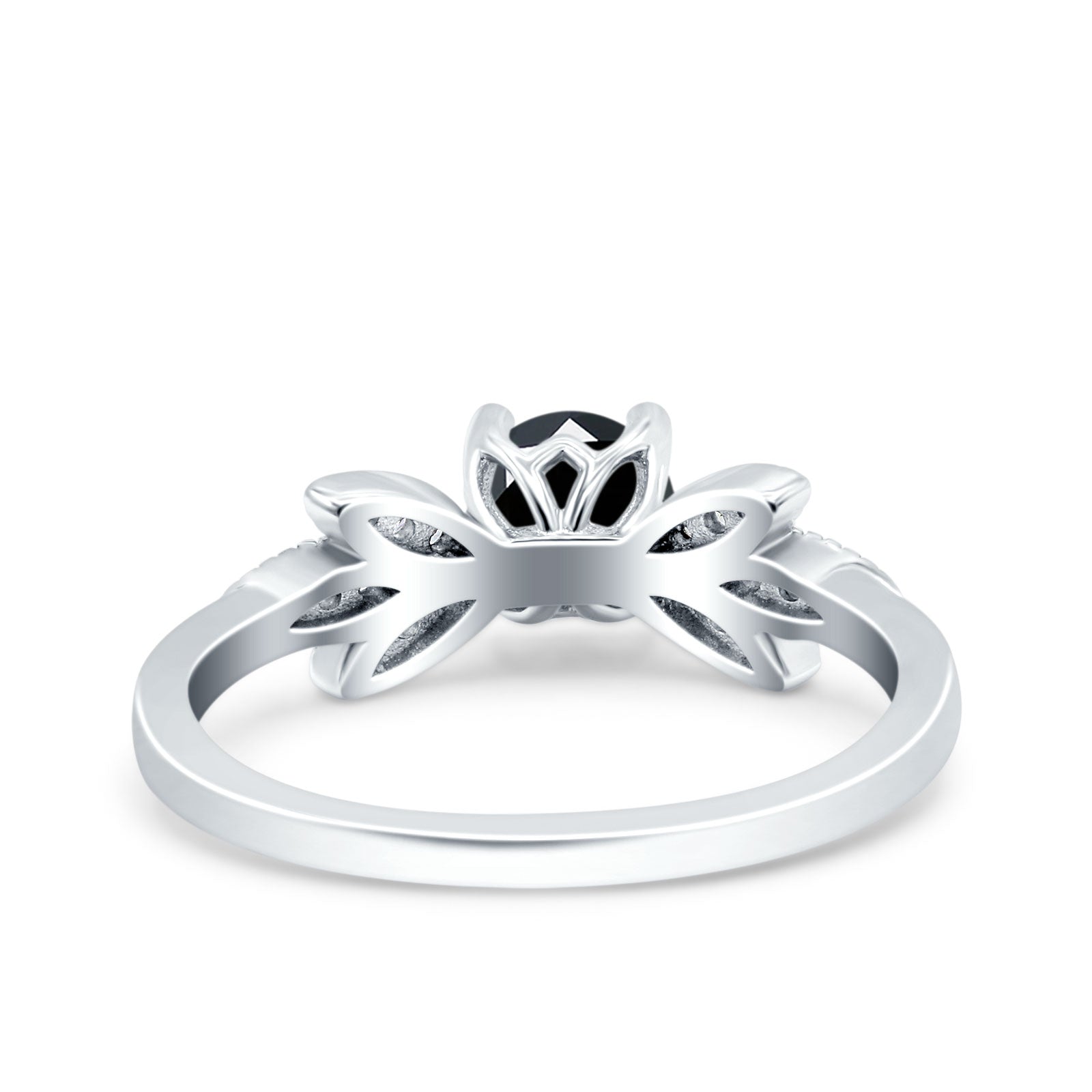 Art Deco Wedding Bridal Ring Leaf Dainty Round Simulated Cubic Zirconia 925 Sterling Silver