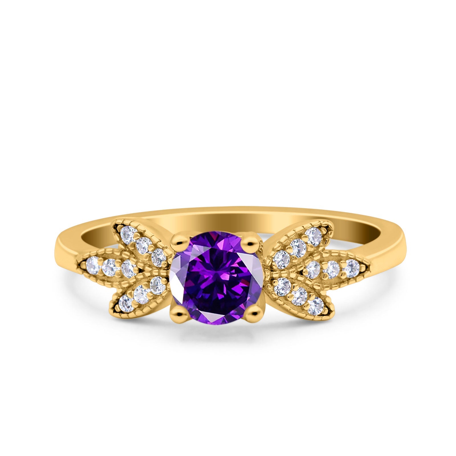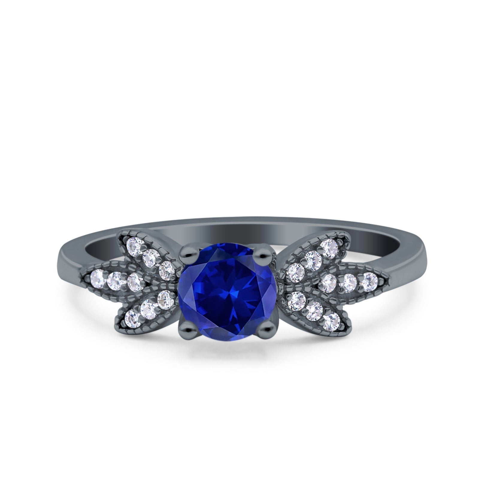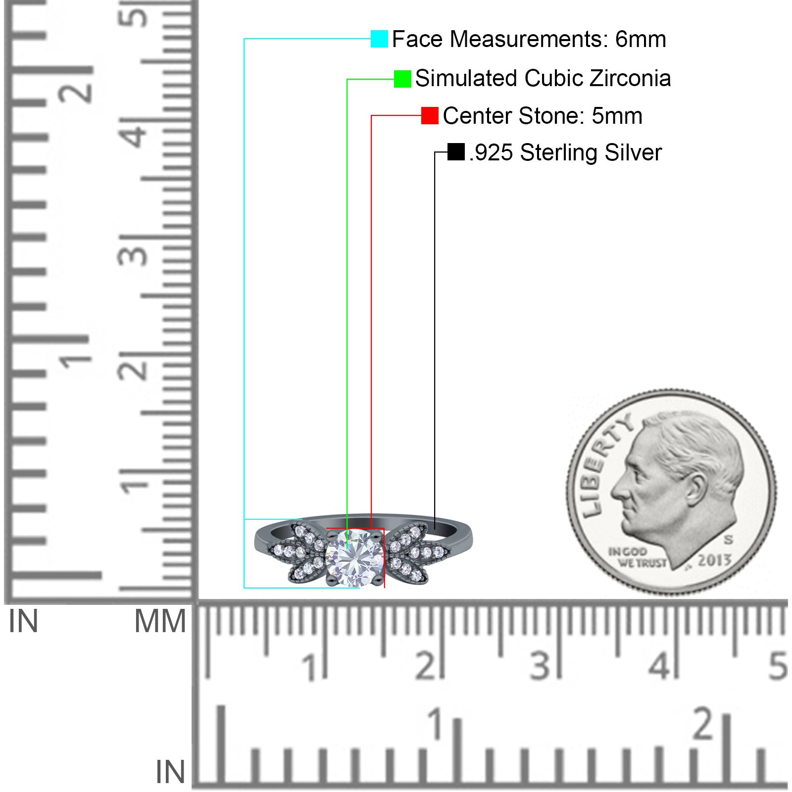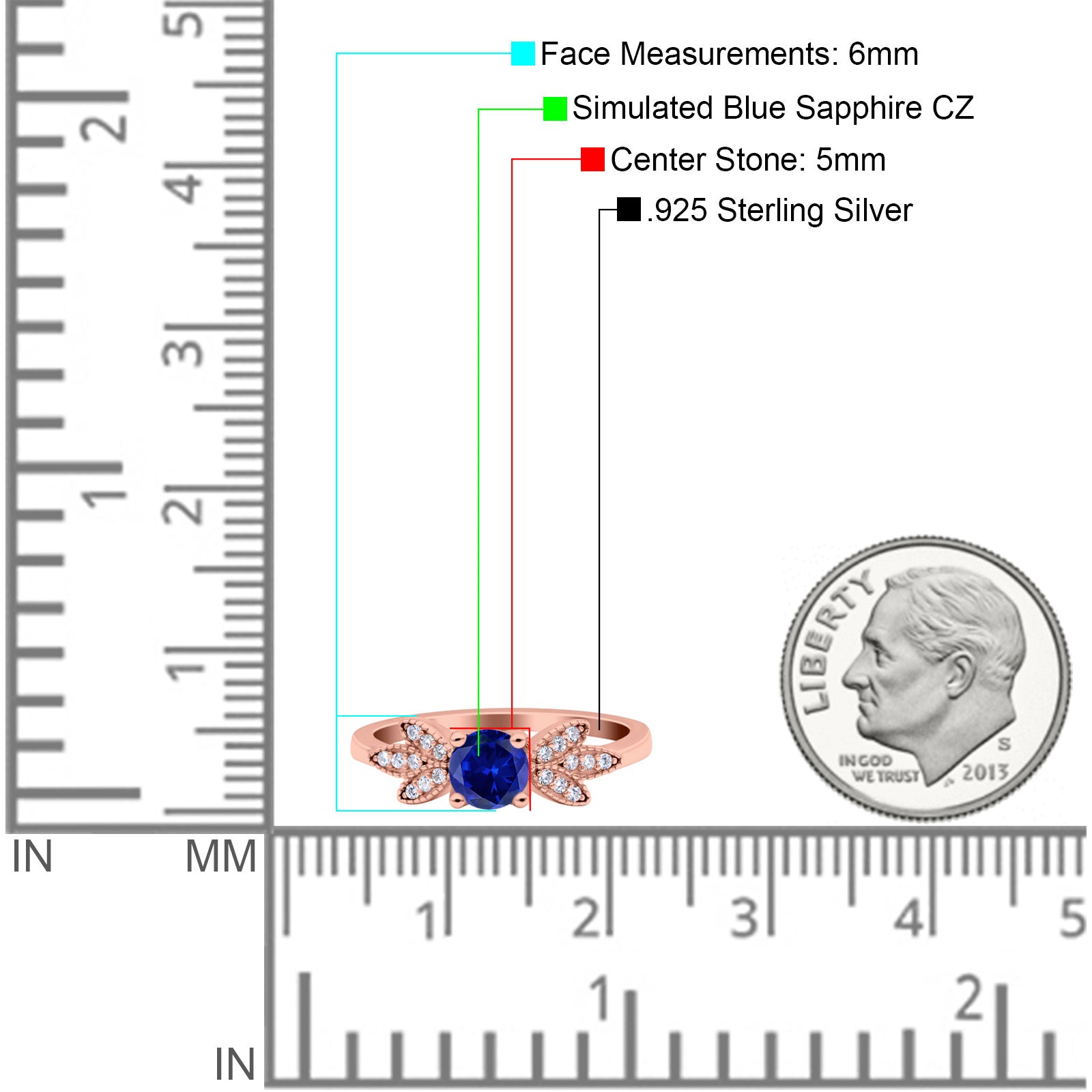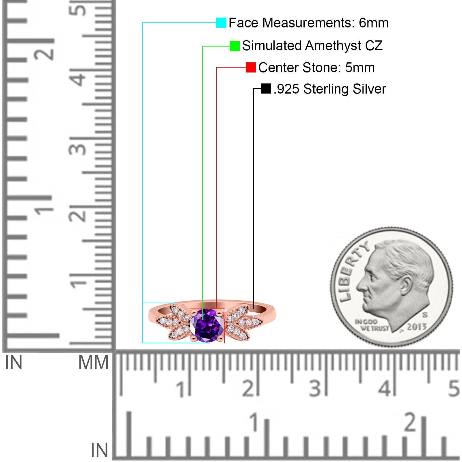 Art Deco Wedding Bridal Ring Leaf Dainty Round Simulated Cubic Zirconia 925 Sterling Silver