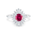 Art Deco Wedding Engagement Bridal Ring Baguette Round CZ 925 Sterling Silver