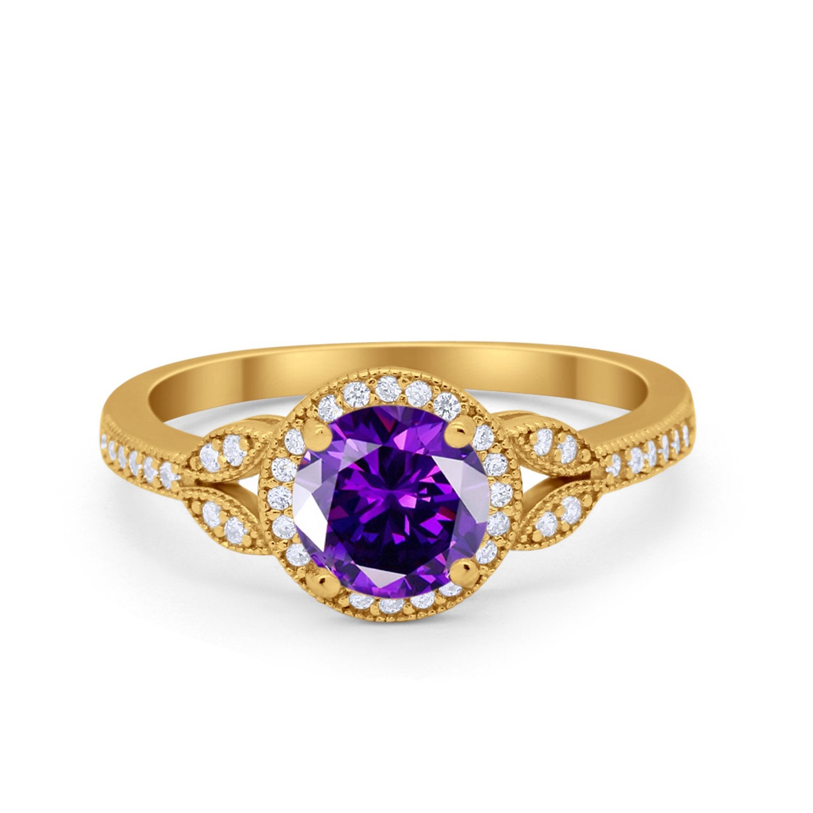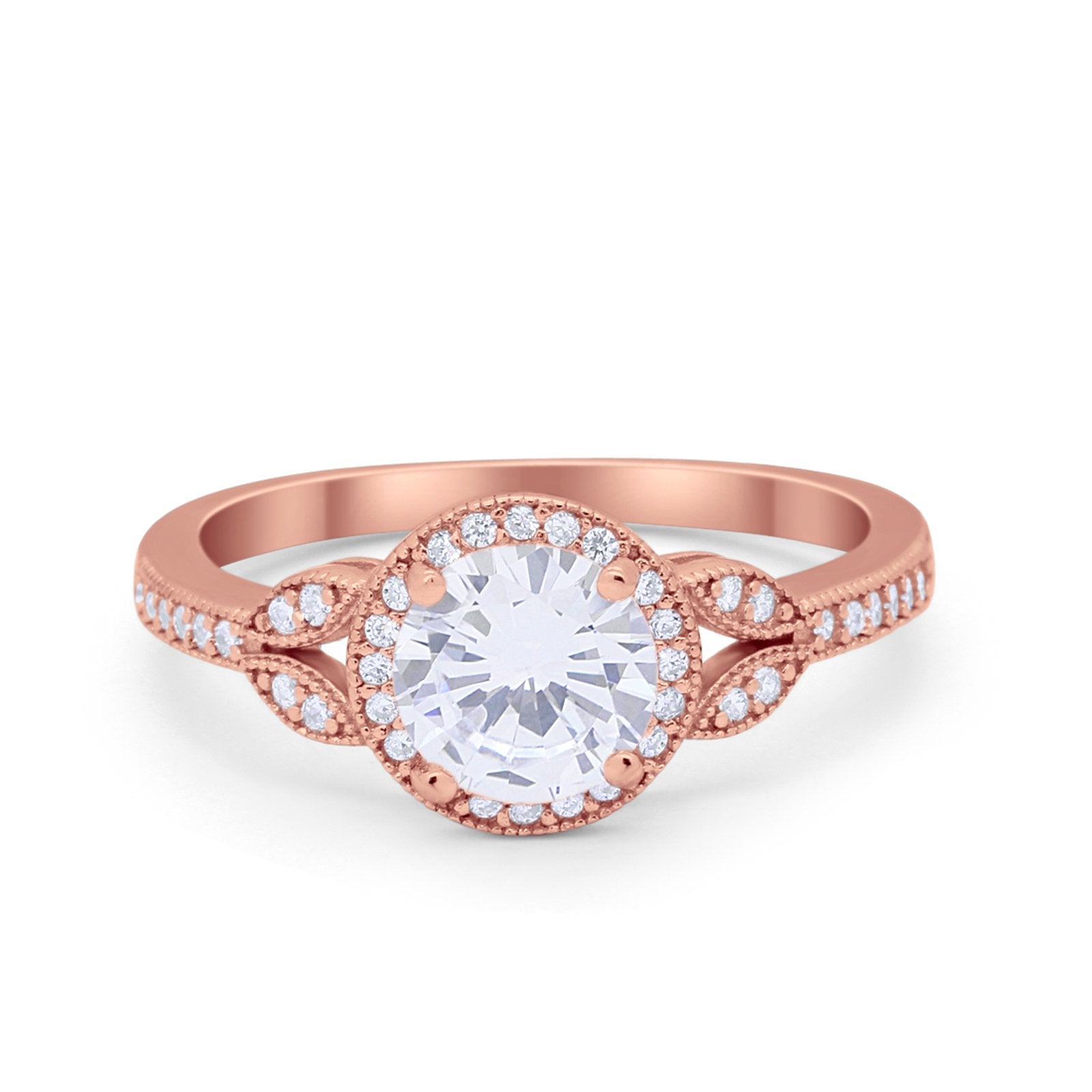 Art Deco Wedding Engagement Ring Halo Round Cubic Zirconia 925 Sterling Silver