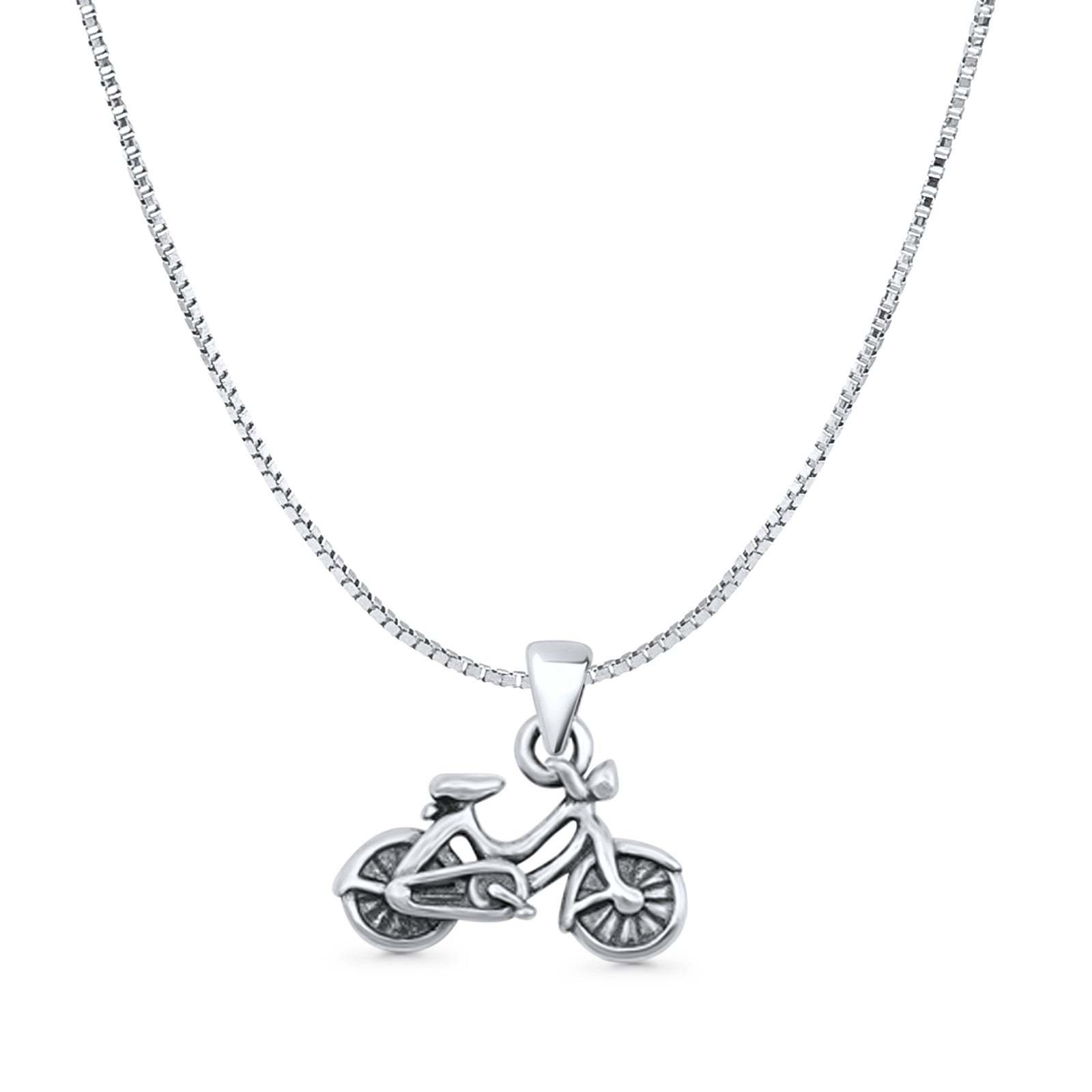 Bicycle Pendant Box Chain Necklace Oxidized 925 Sterling Silver