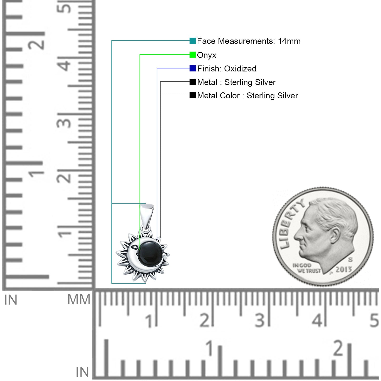Black Onyx Moon & Sun Pendant 925 Sterling Silver