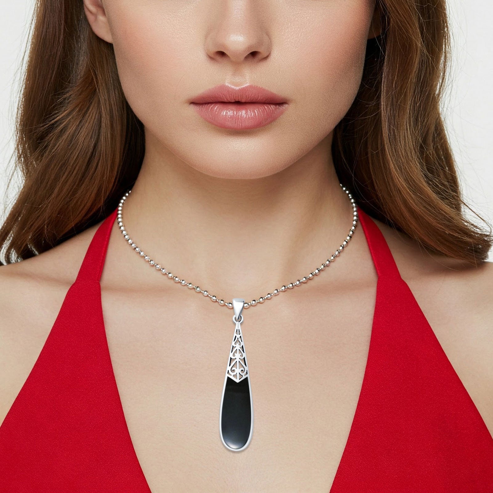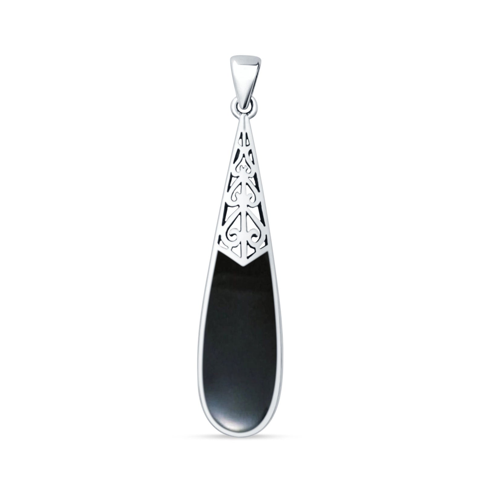 Style: Oxidized Black Onyx Pear Dangle Drop Pendant