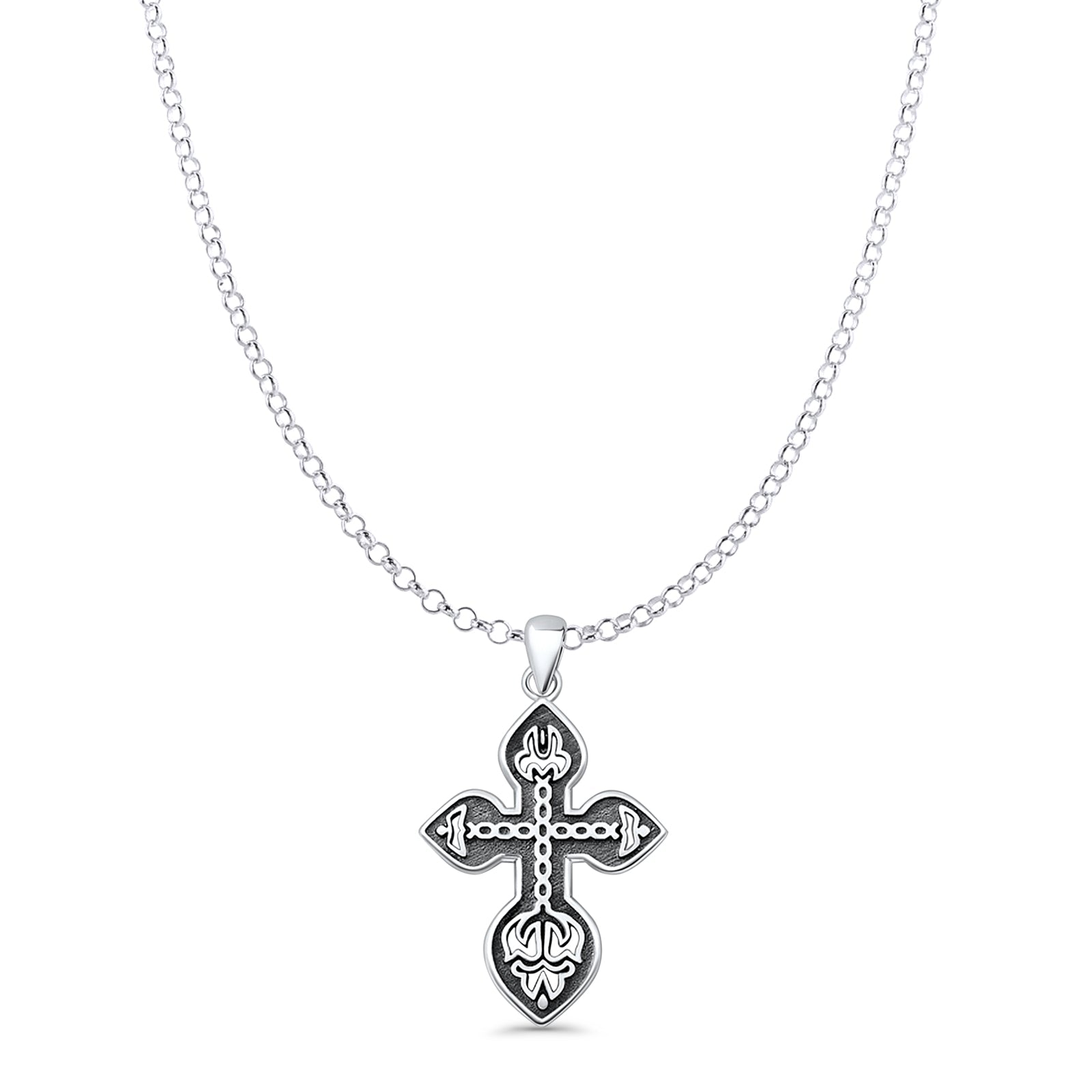 Cross Pendant Rolo Chain Necklace Oxidized 925 Sterling Silver