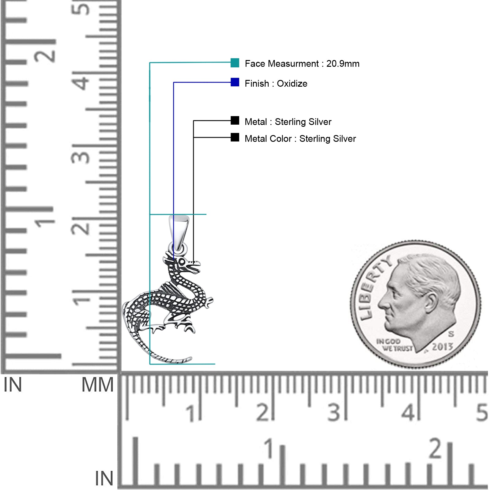 Dragon Charm Pendant Rolo Chain Necklace Oxidized 925 Sterling Silver