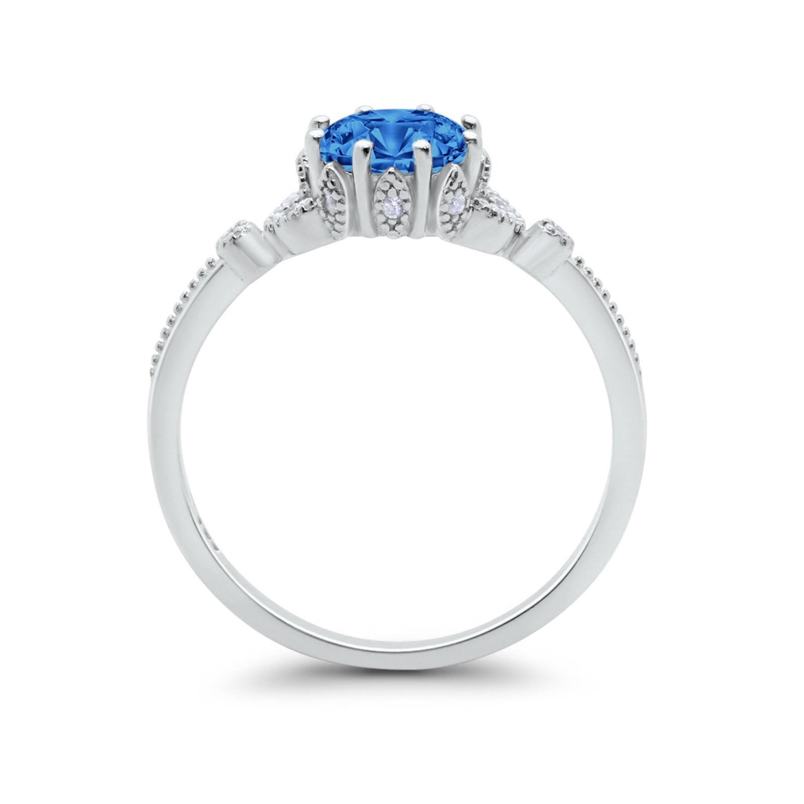 CZ & Blue Sapphire CZ Rose Tone Silver