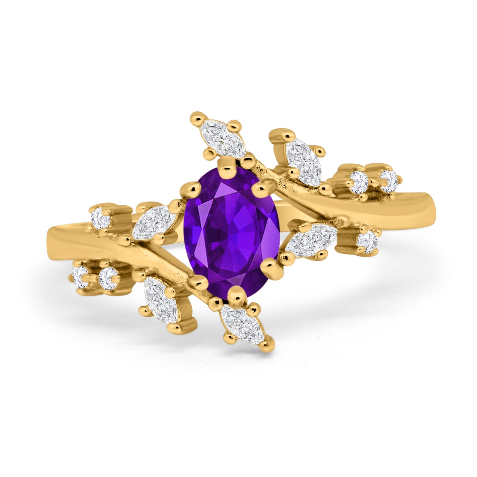 Floral Oval Natural Amethyst Leaf Art Deco Ring 925 Sterling Silver