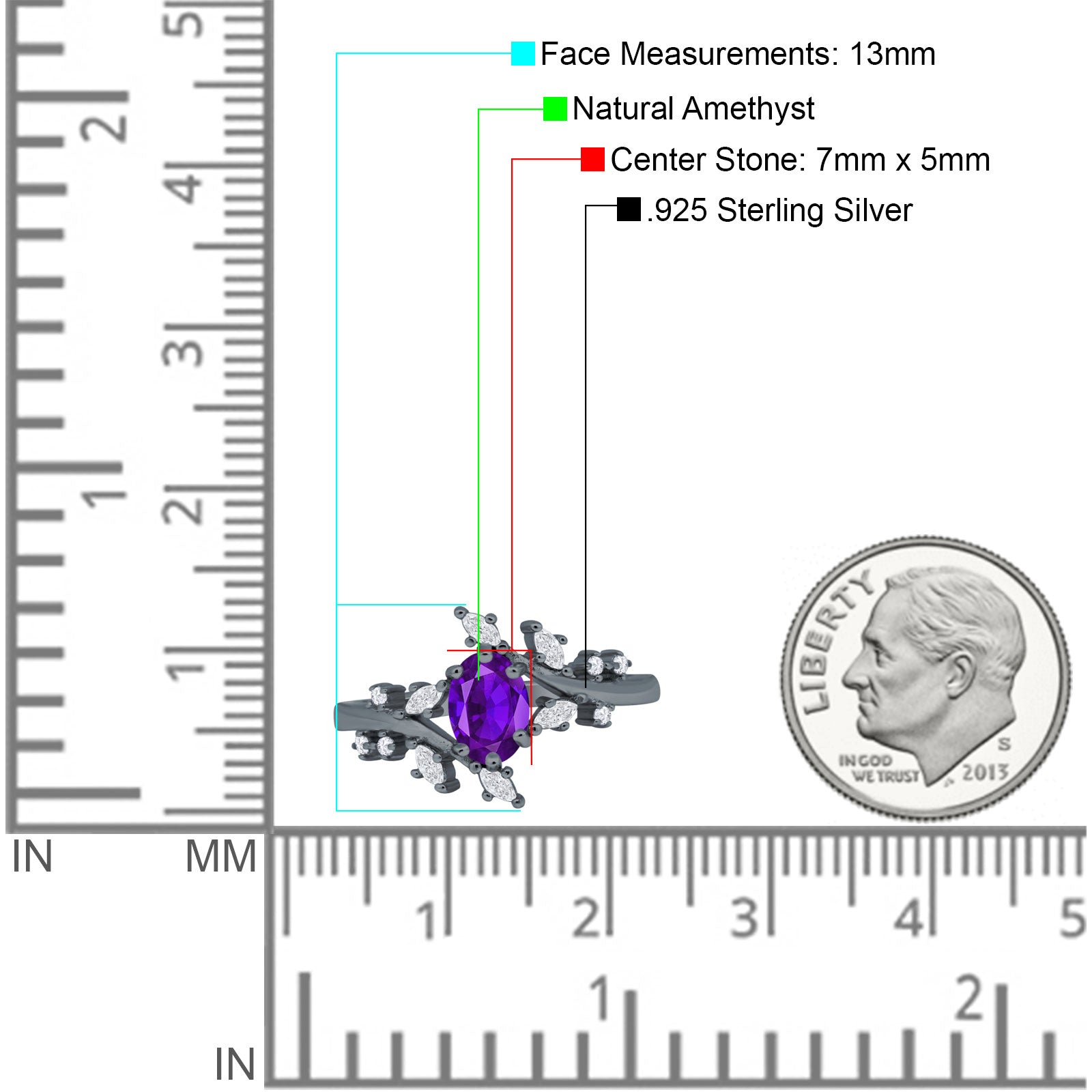 Metal Purity: 92.5% Sterling.