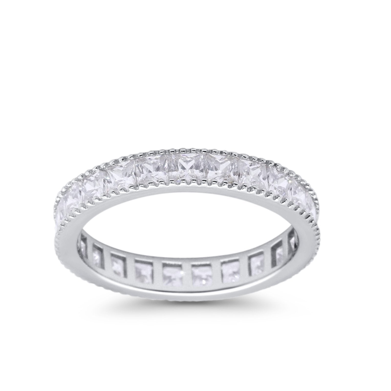 Full Eternity Wedding Band Ring Simulated CZ 925 Sterling Silver