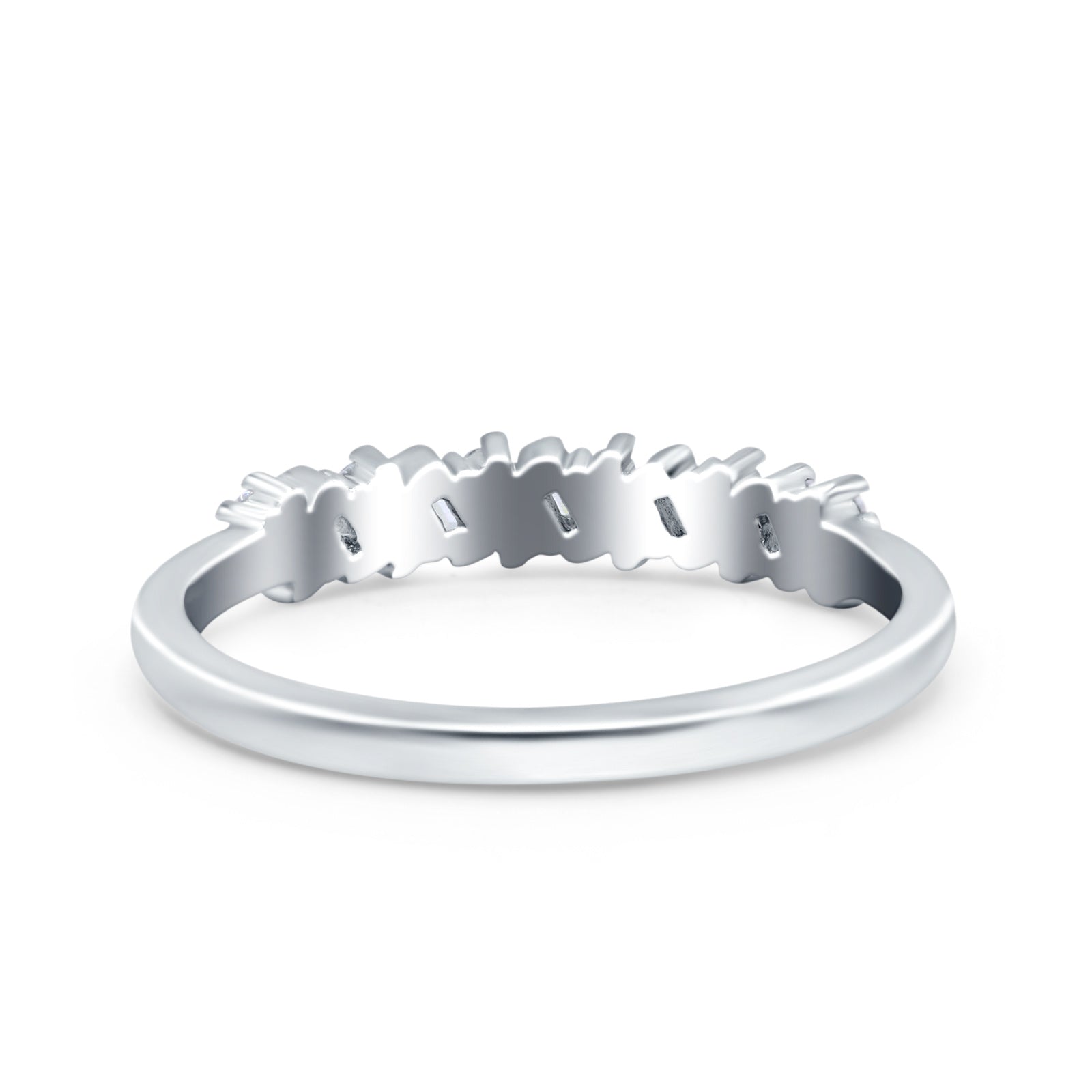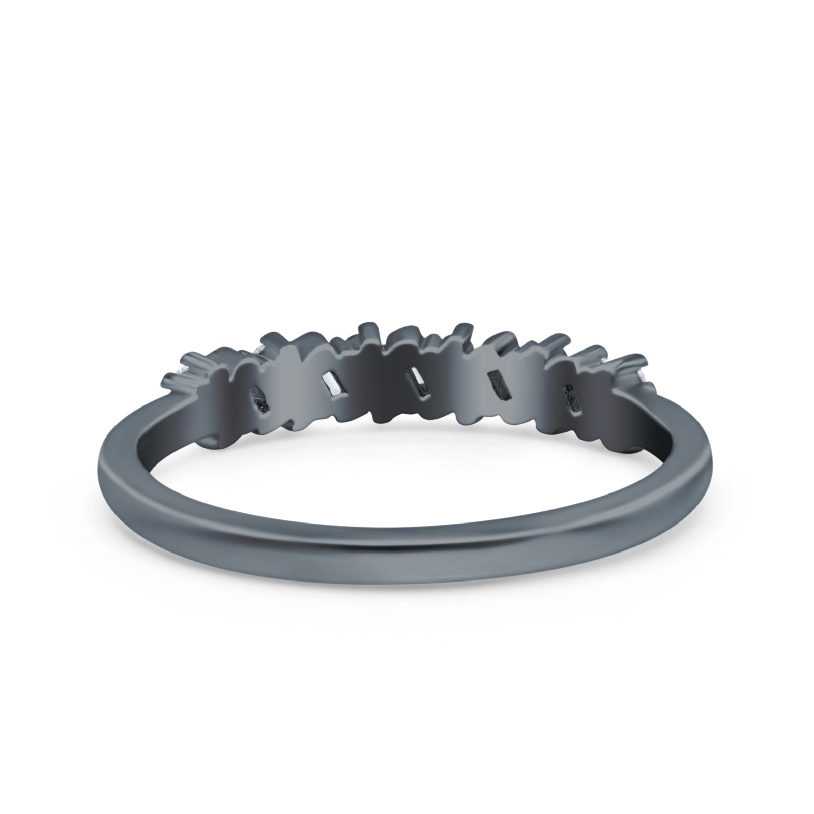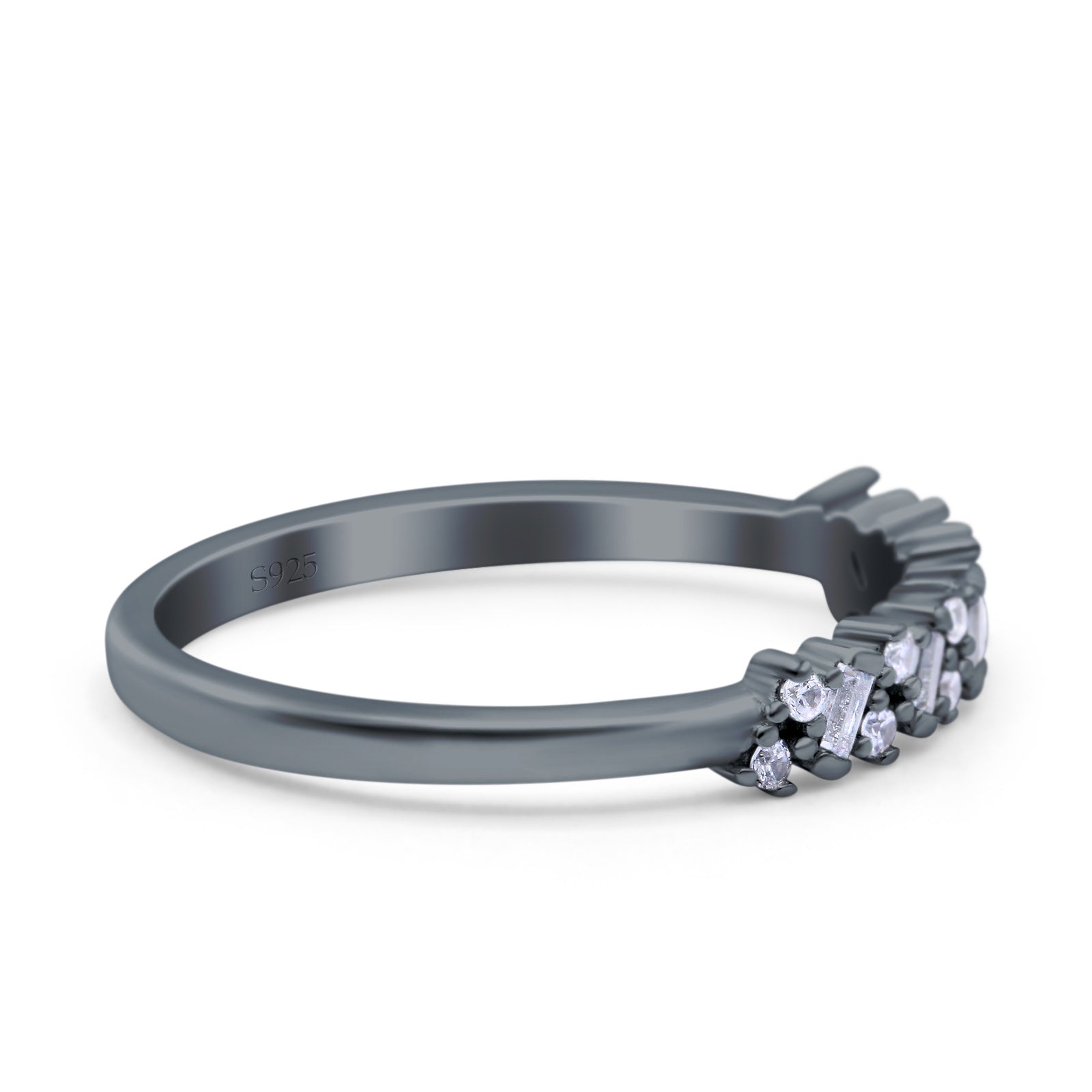 Half Eternity Buttere Shape Ring Wedding Engagement Band Round Pave Simulated Cubic Zirconia 925 Sterling Silver
