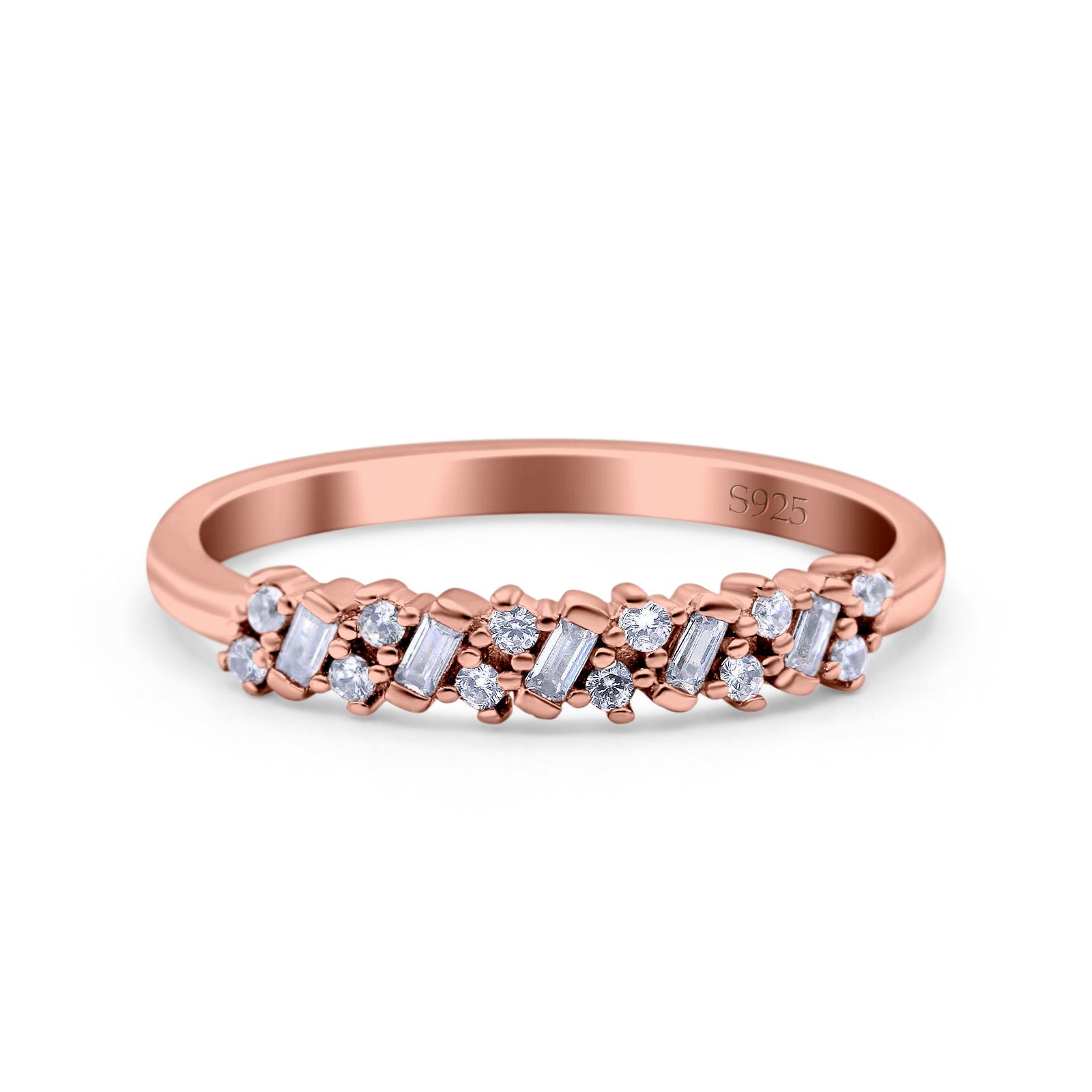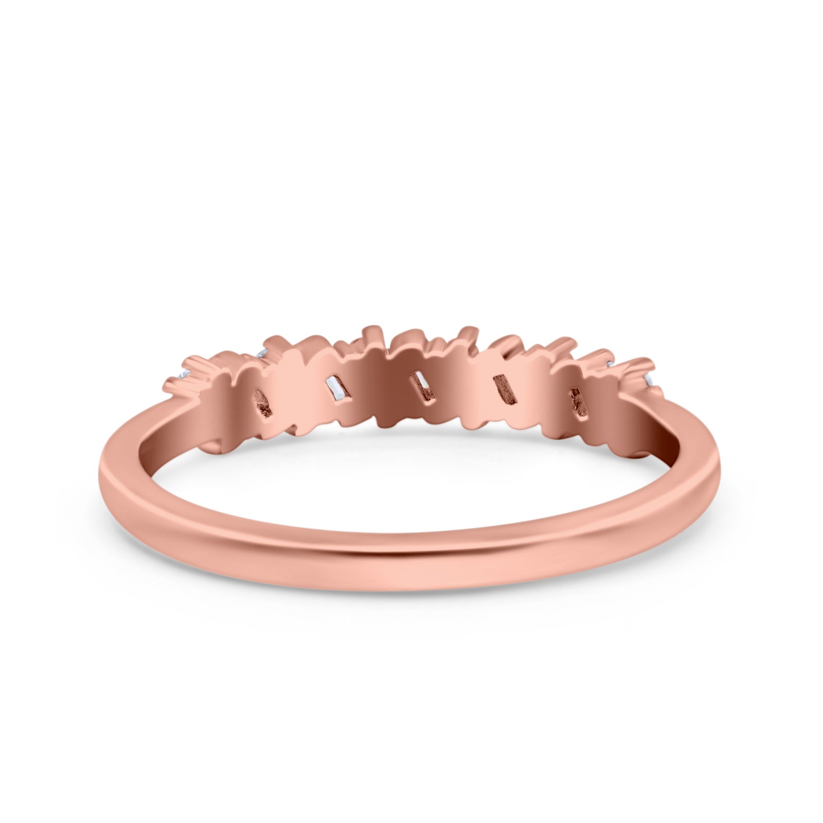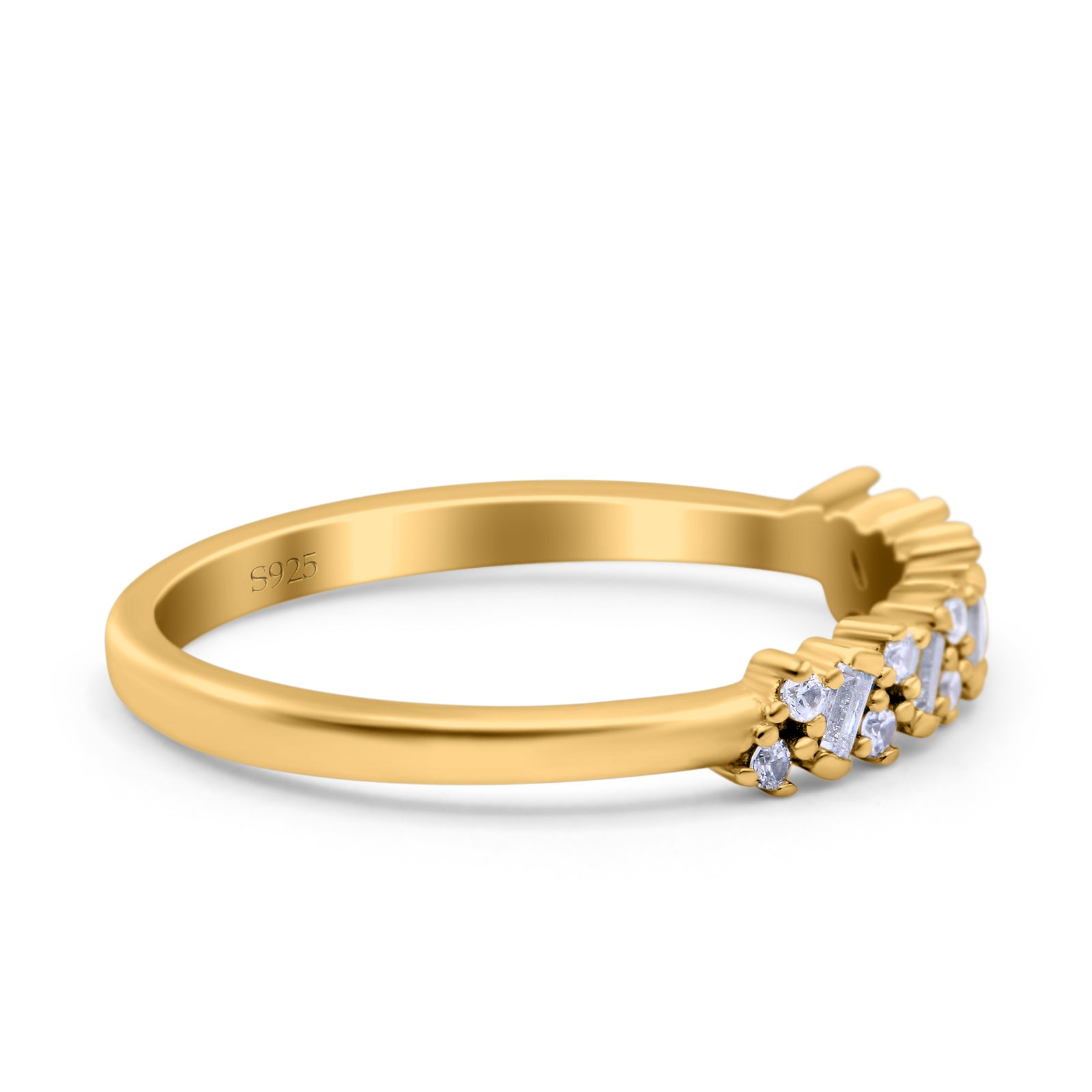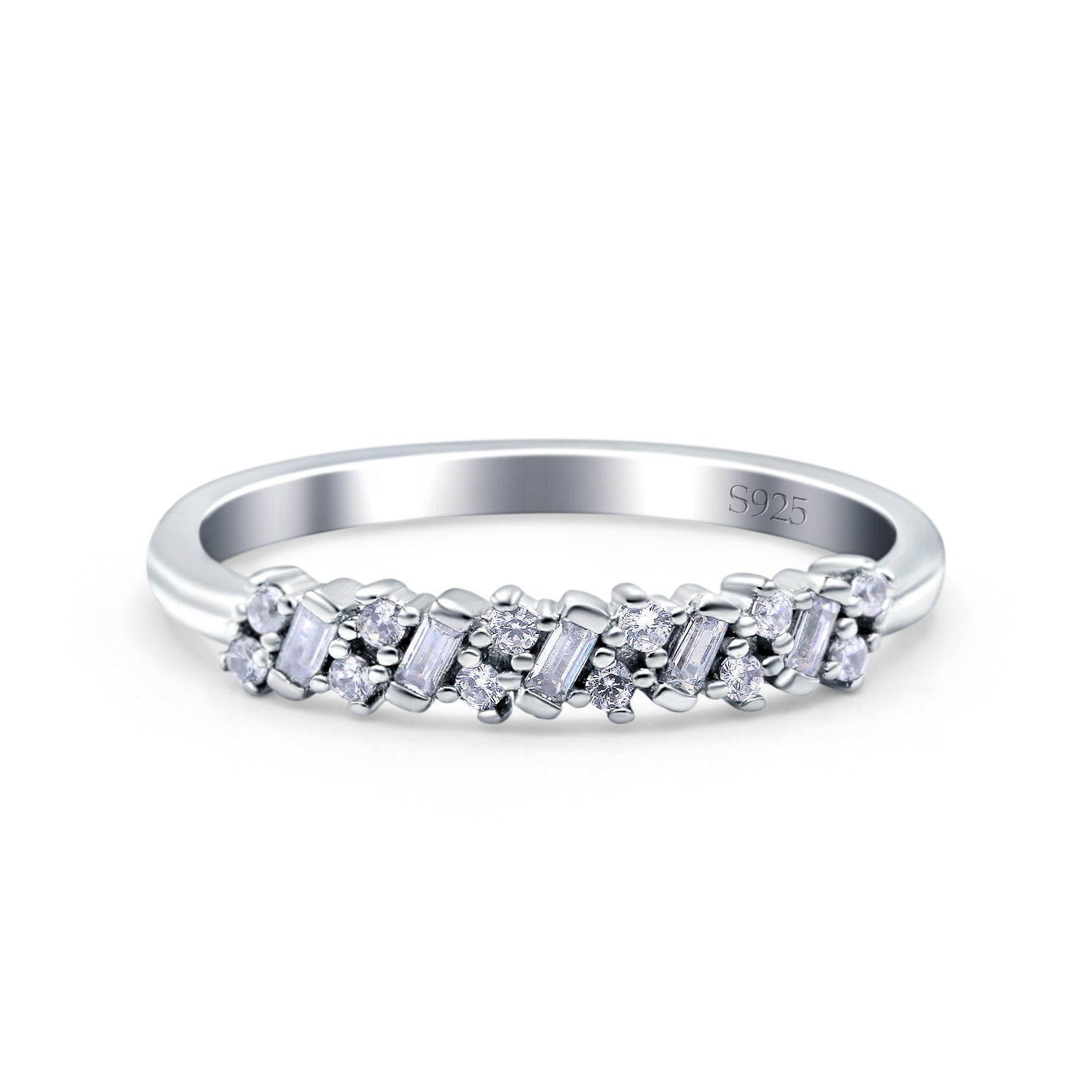 Half Eternity Buttere Shape Ring Wedding Engagement Band Round Pave Simulated Cubic Zirconia 925 Sterling Silver