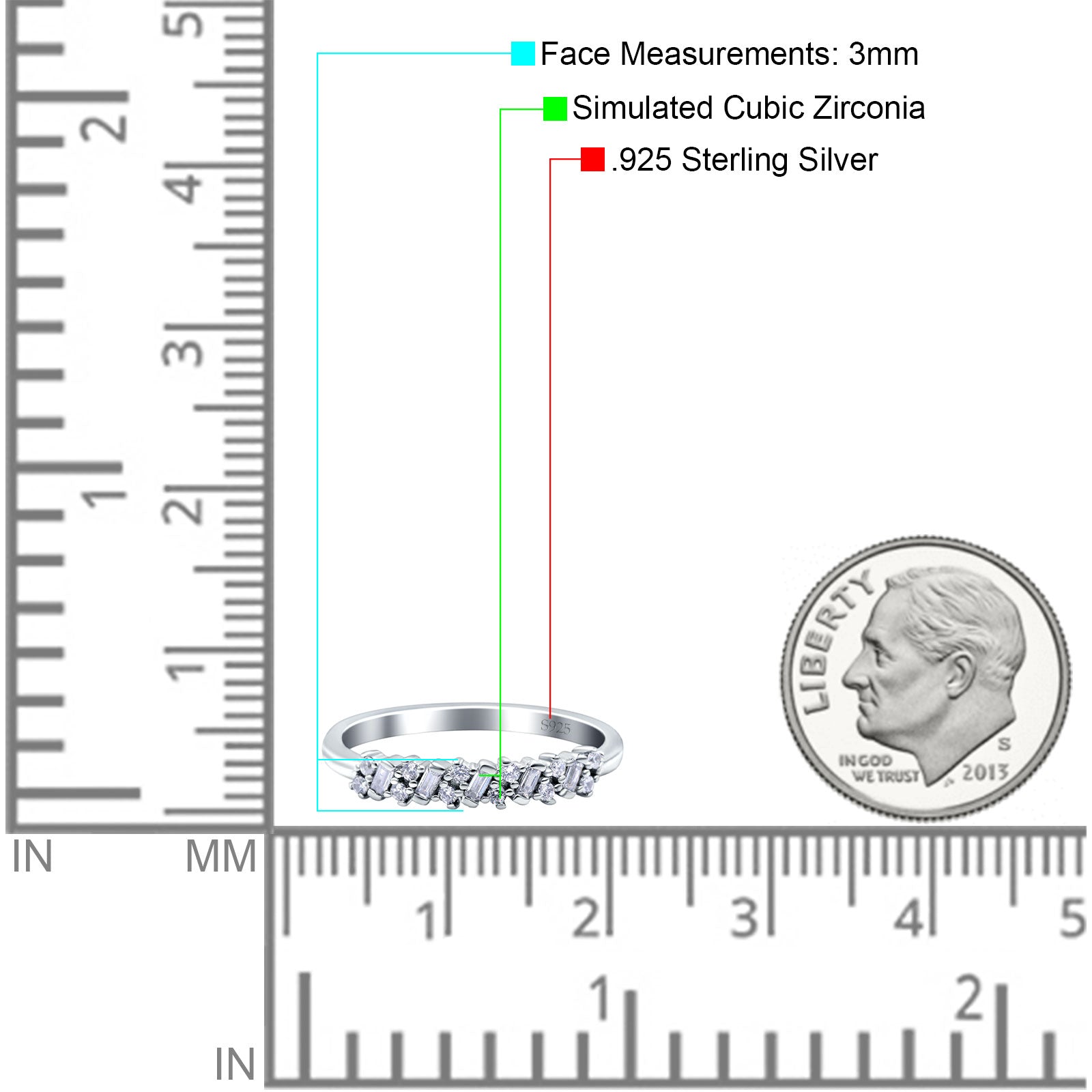 Minimalist 2.5mm Full Eternity Band CZ & Ruby CZ 925 Sterling Silver