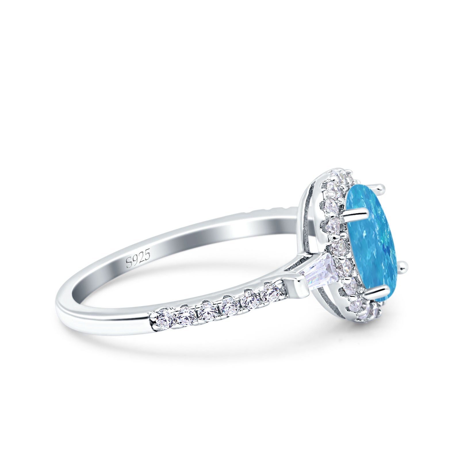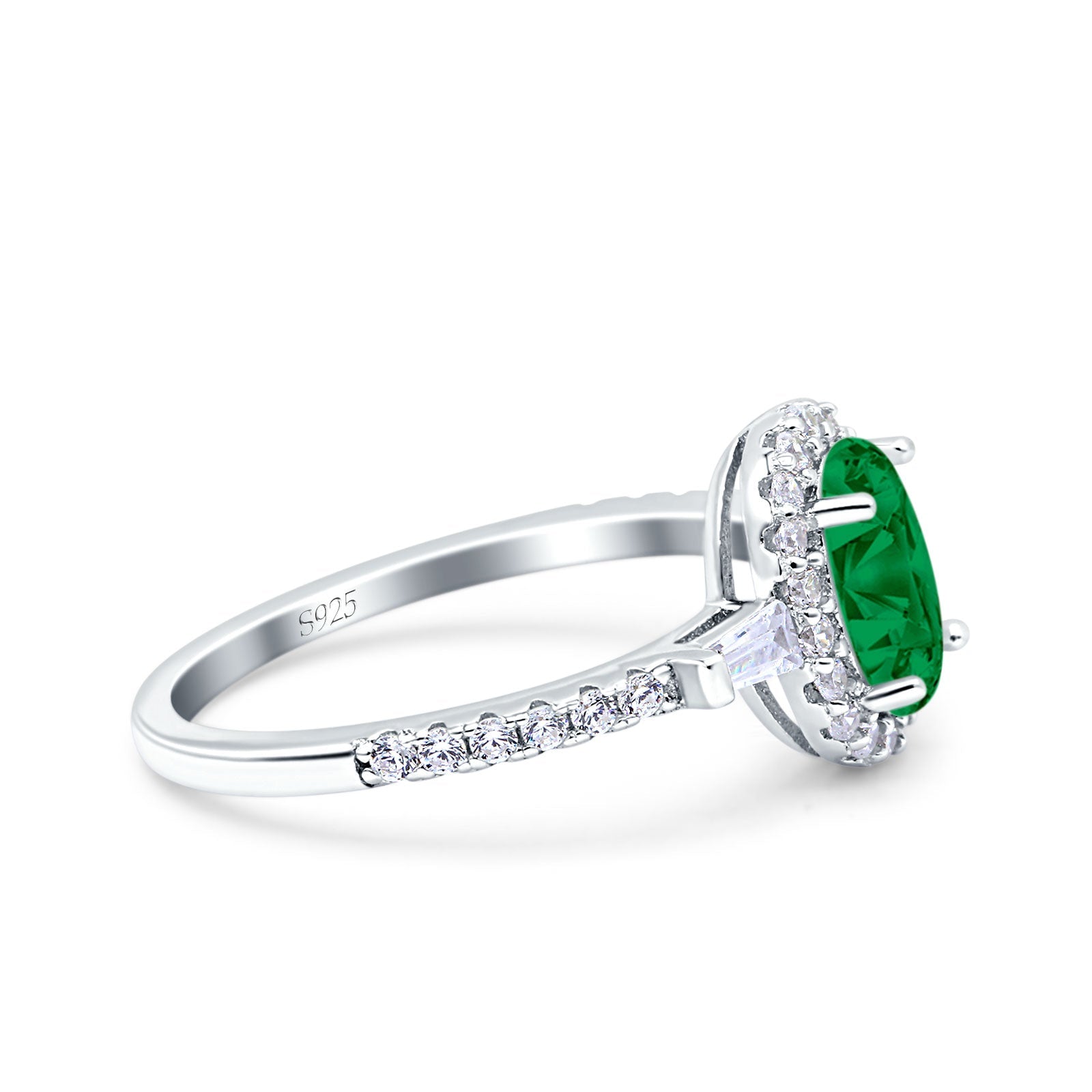 Halo Oval Art Deco Wedding Engagement Ring Simulated Cubic Zirconia 925 Sterling Silver