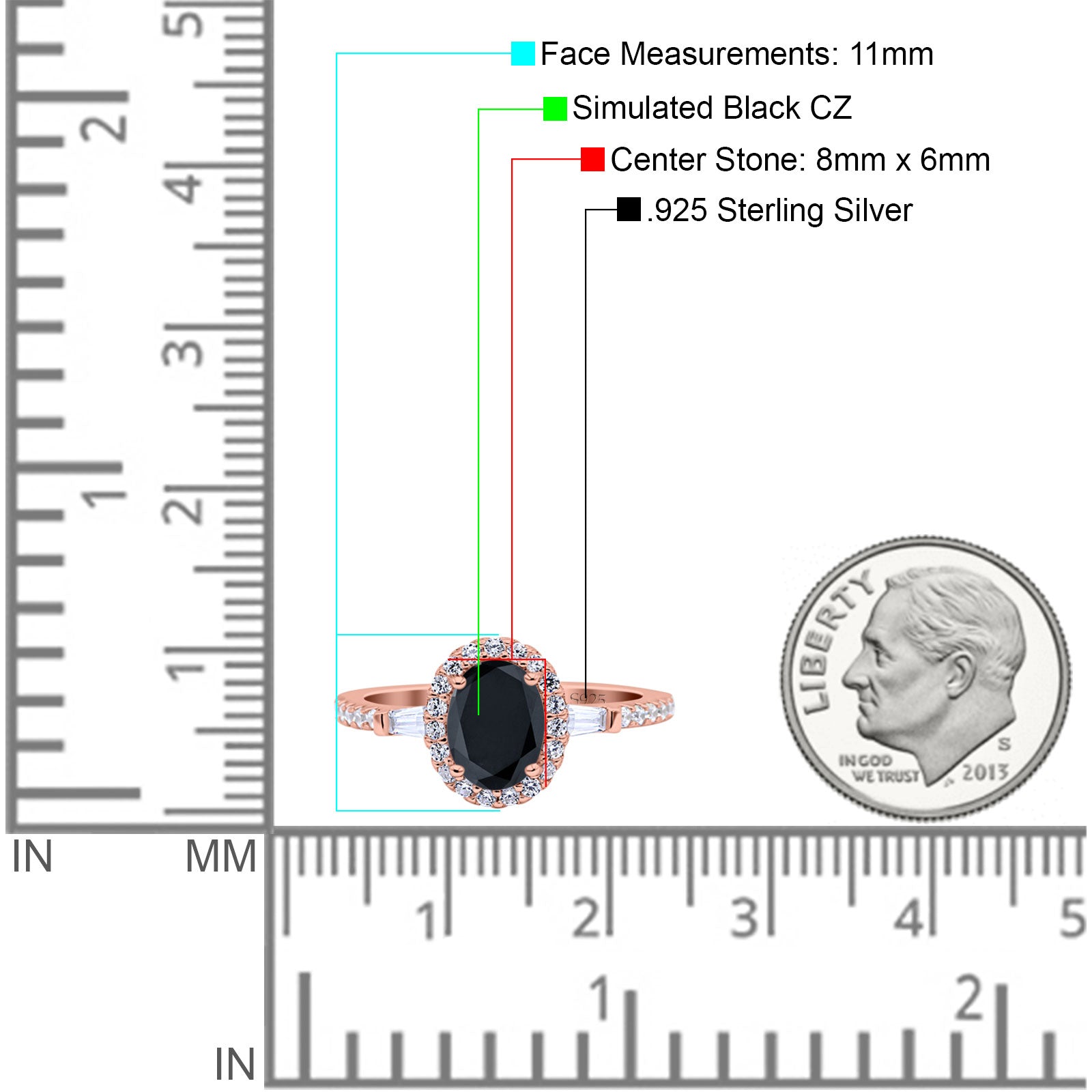 Rose Tone, Simulated Black CZ