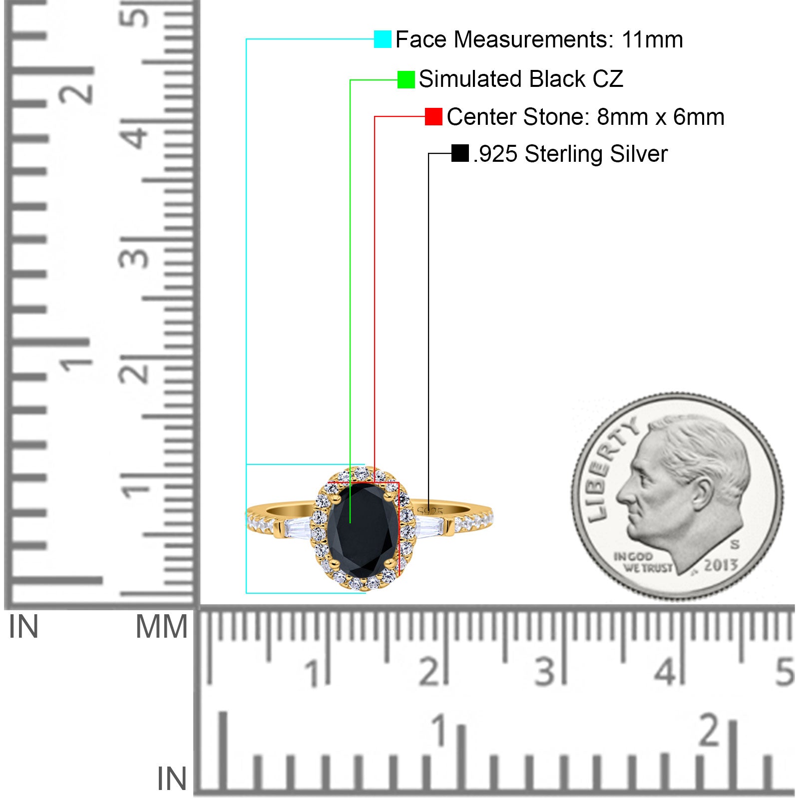 Yellow Tone, Simulated Black CZ