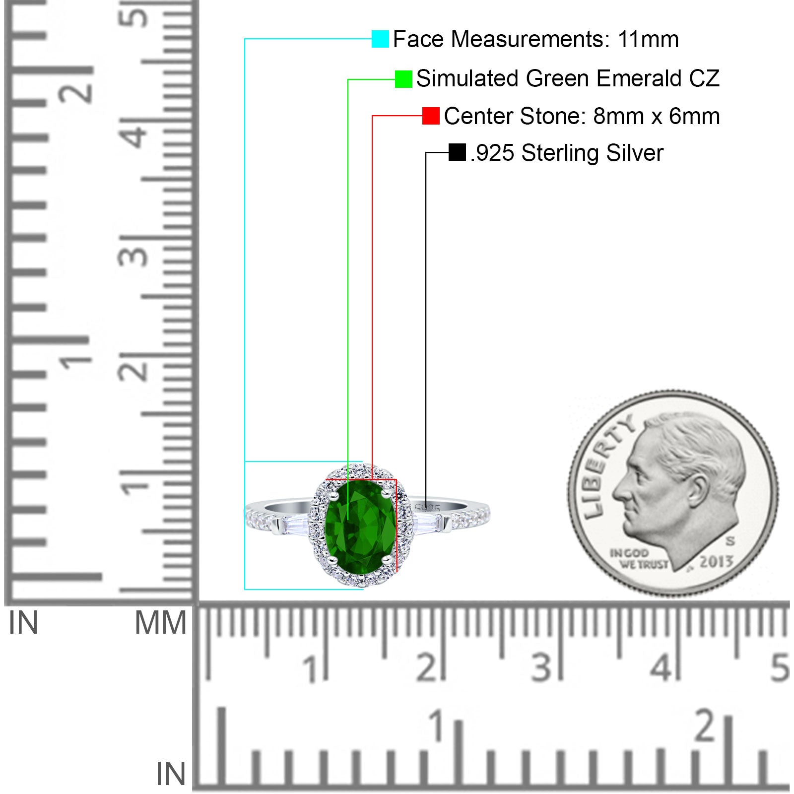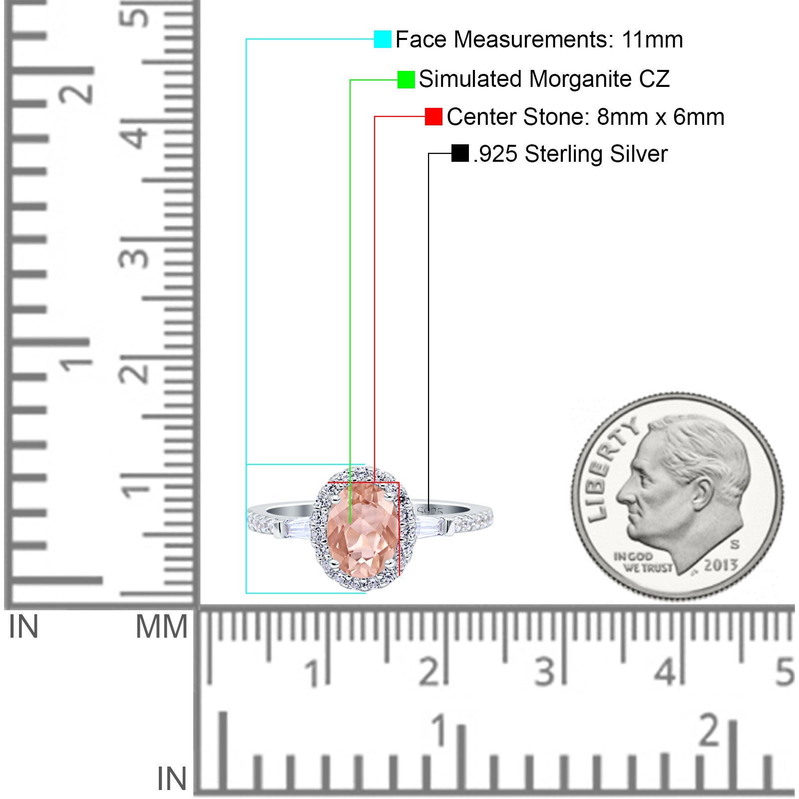 Center Stone Measurements: 8mmX6mm