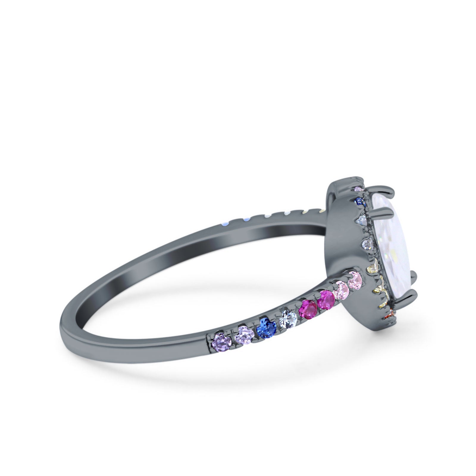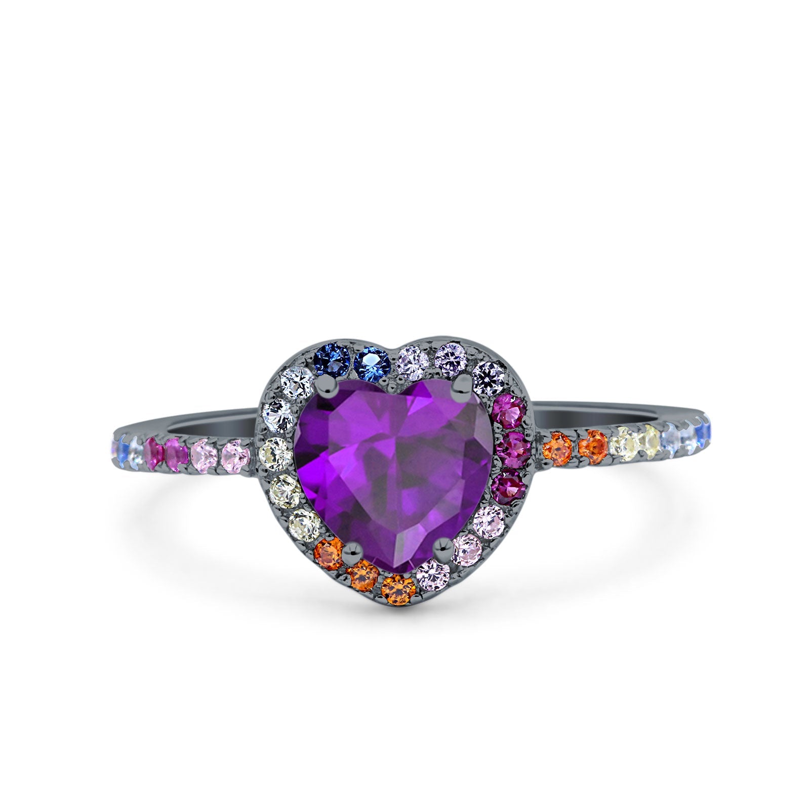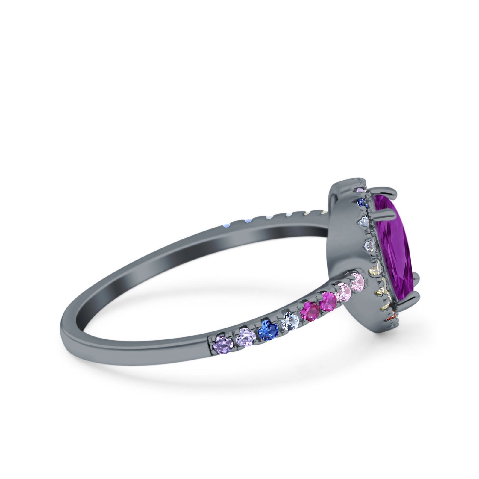 CZ & Ruby CZ Black Tone Silver