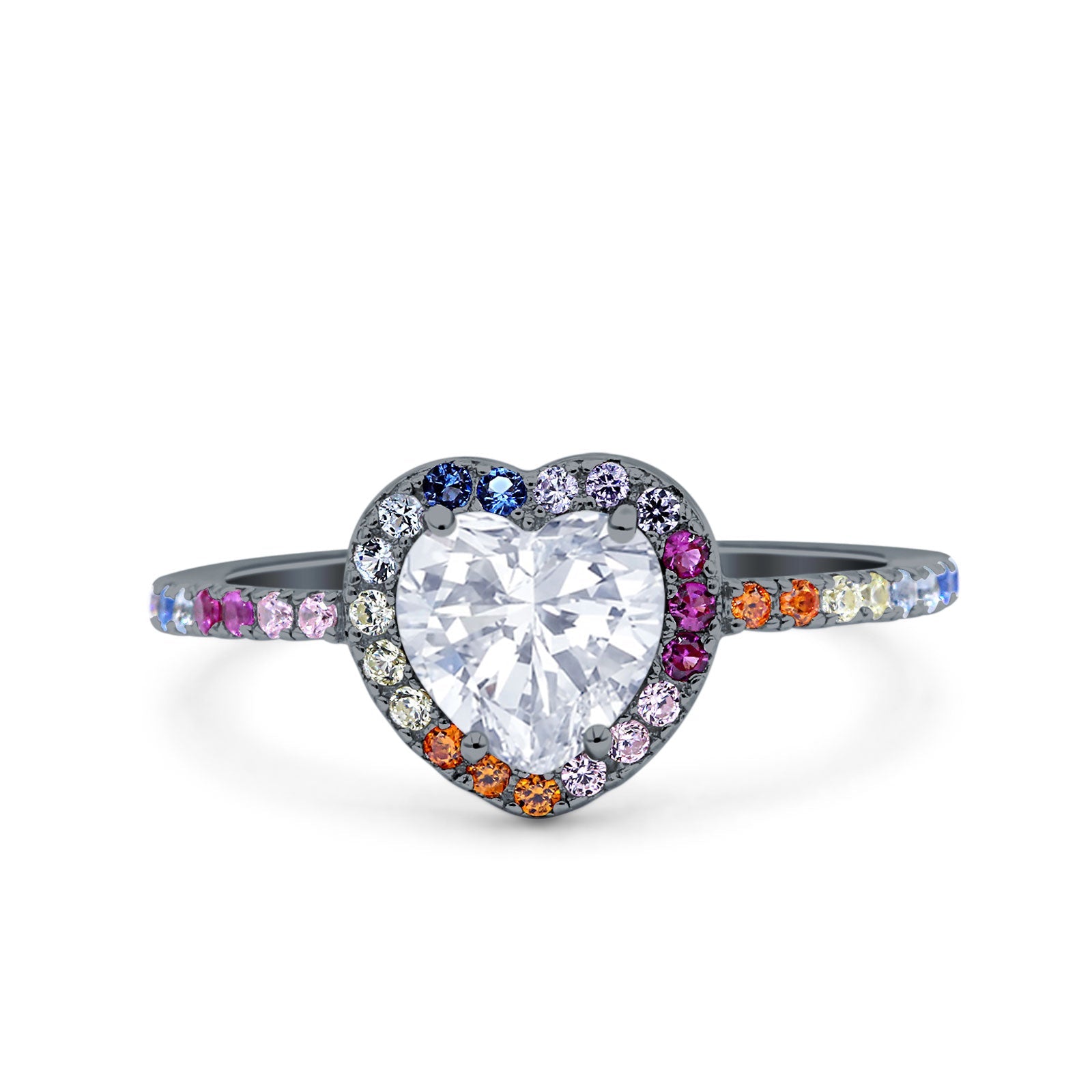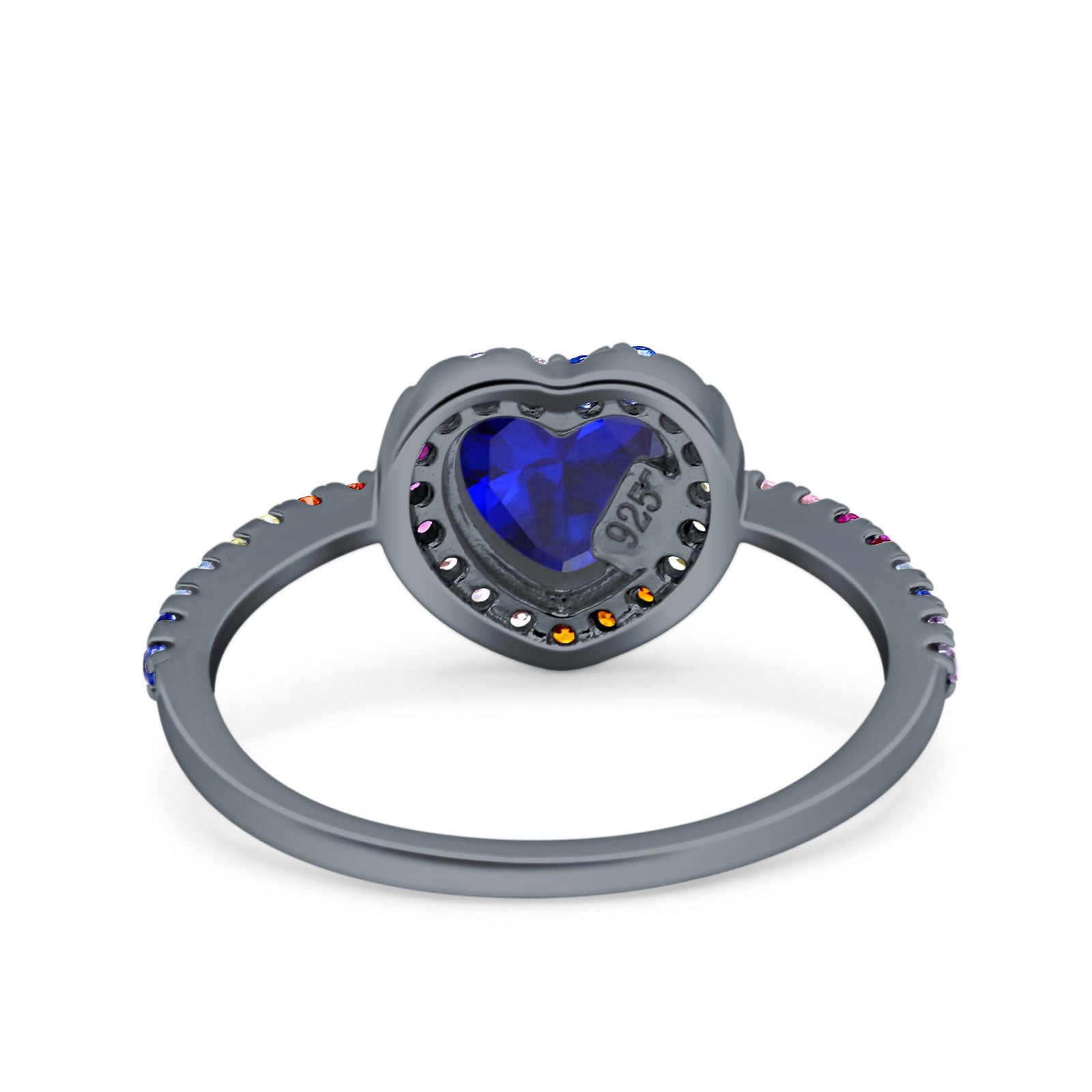 CZ & Blue Sapphire CZ Black Tone Silver
